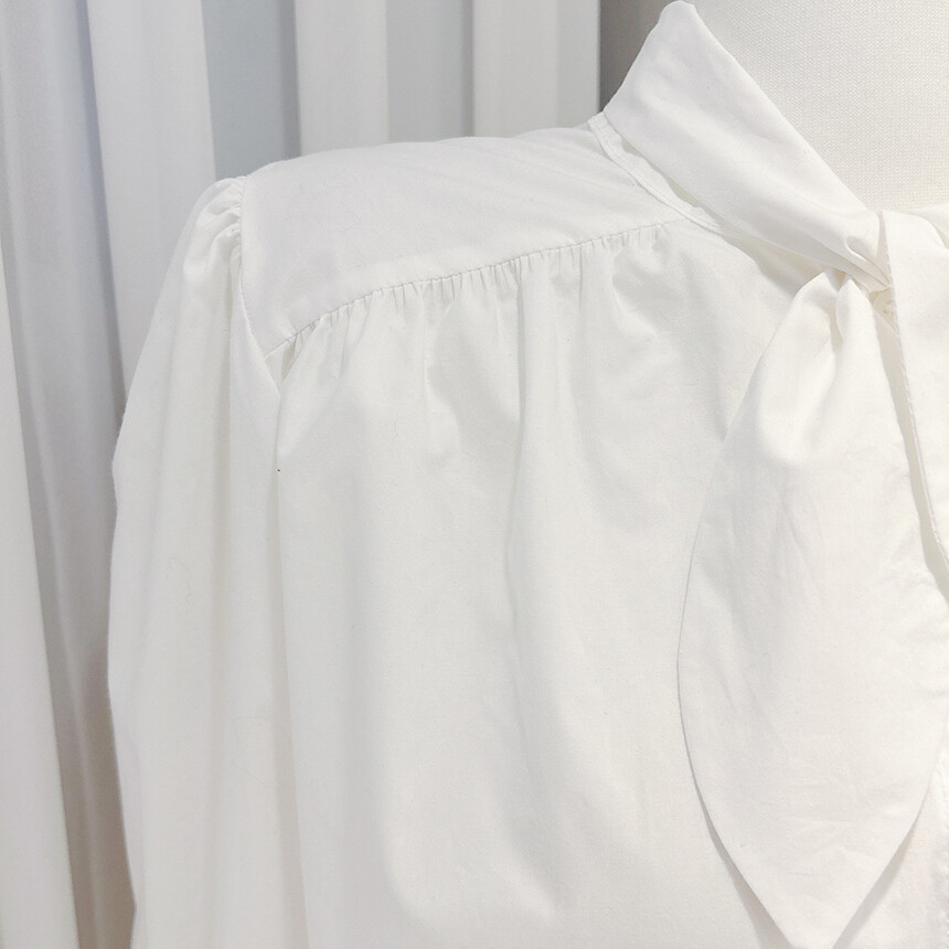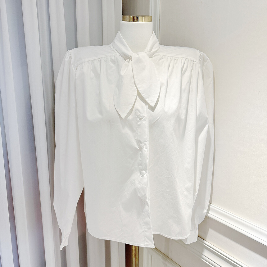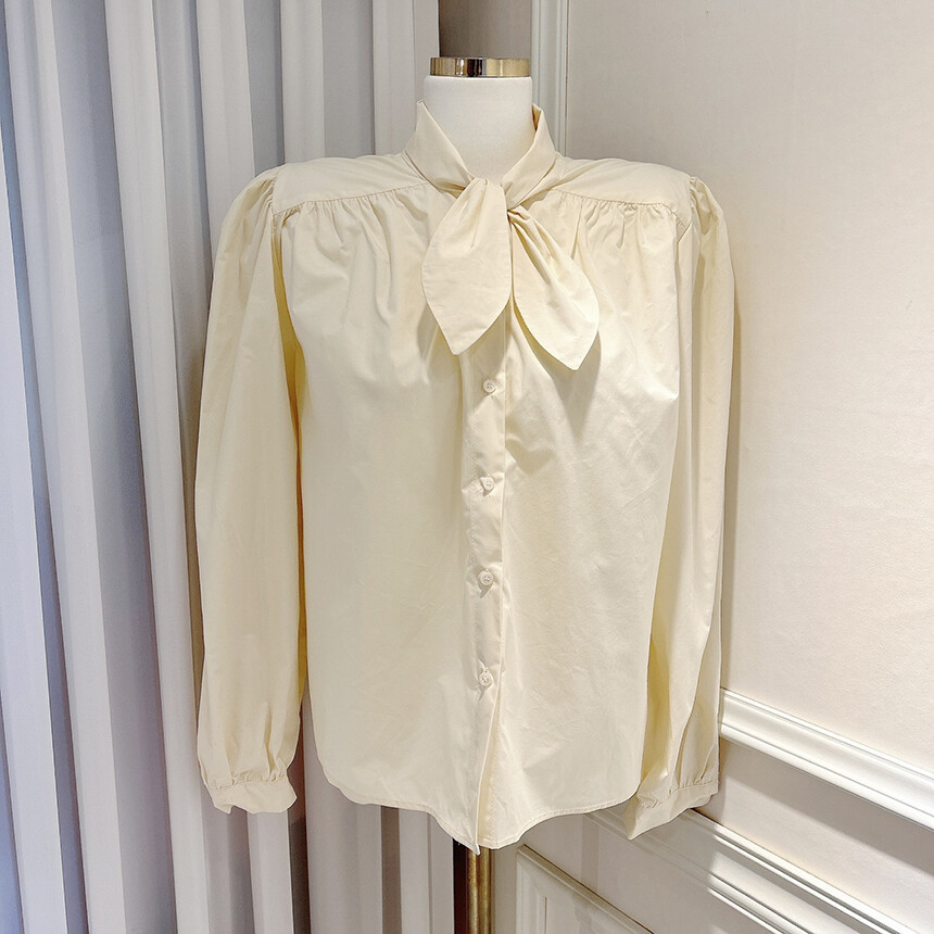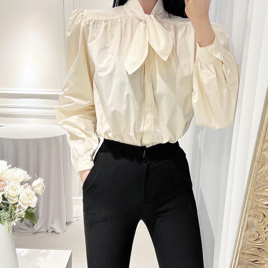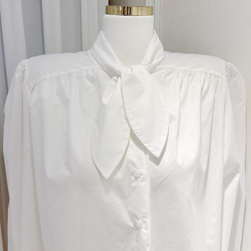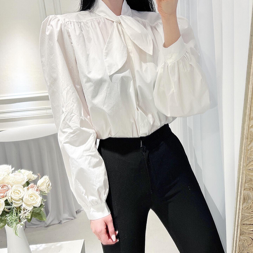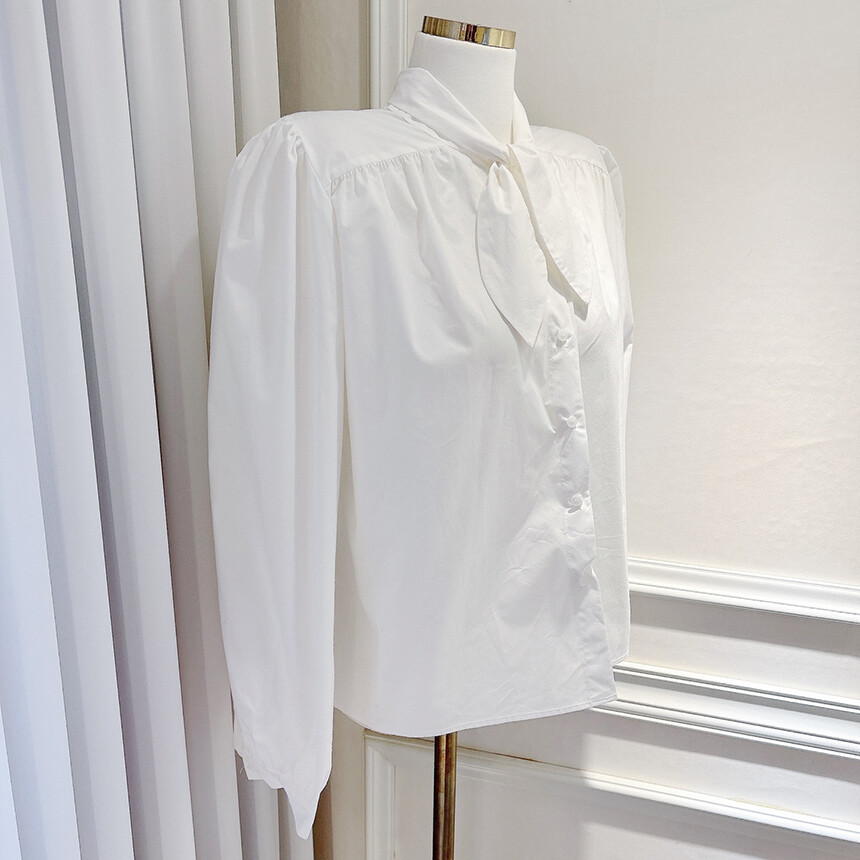 [SALE 원가이하 세일] 러블리 넥 타이 퍼프 소매 루즈핏 코튼 블라우스
