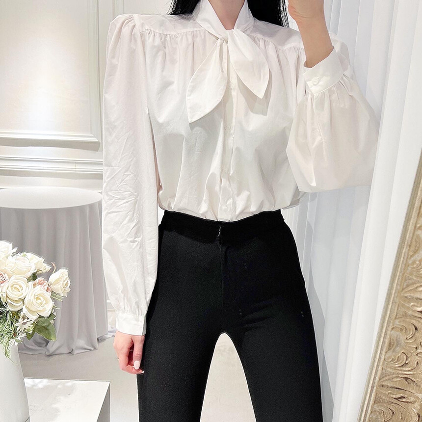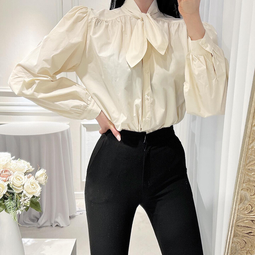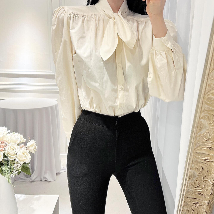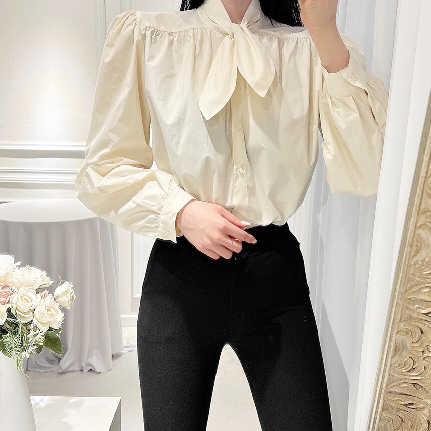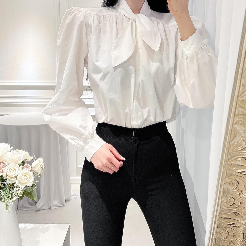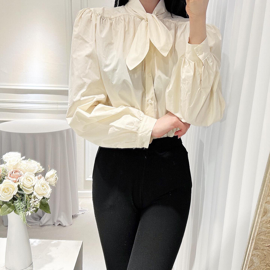 [SALE 원가이하 세일] 러블리 넥 타이 퍼프 소매 루즈핏 코튼 블라우스