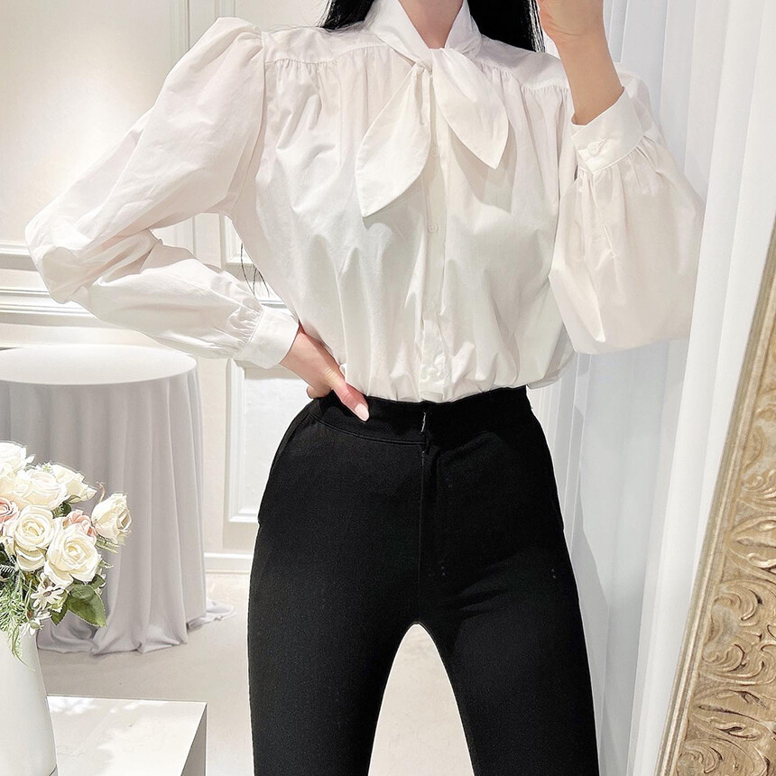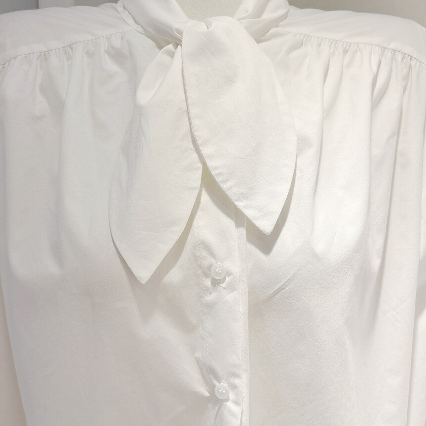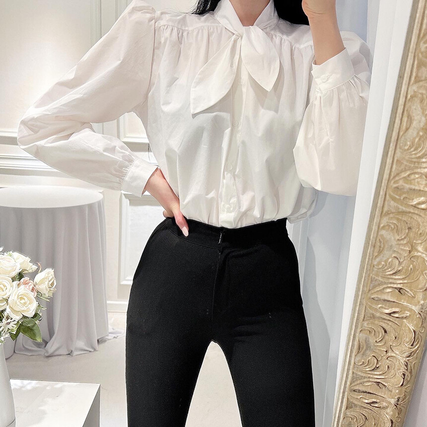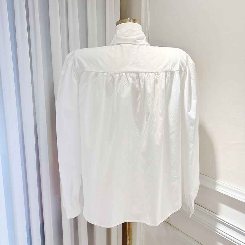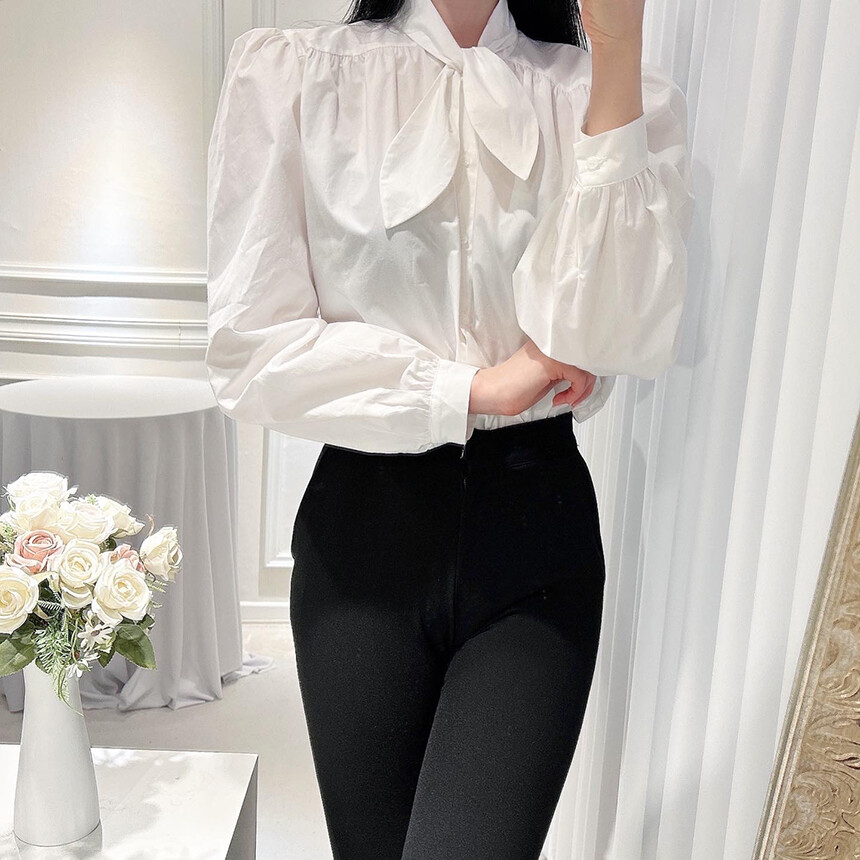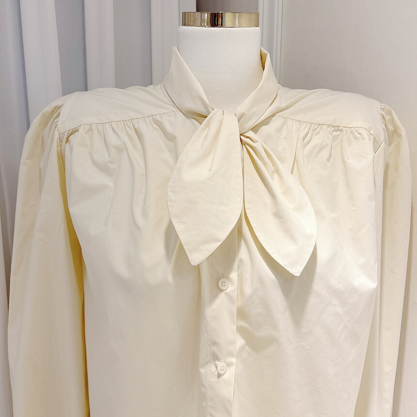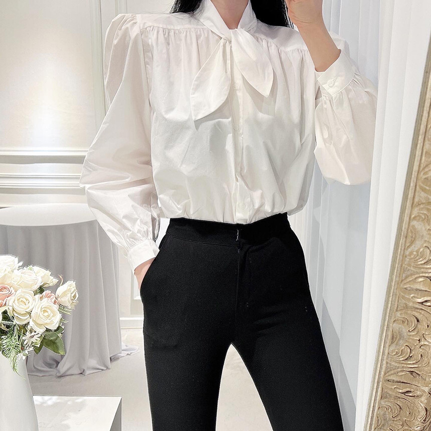 [SALE 원가이하 세일] 러블리 넥 타이 퍼프 소매 루즈핏 코튼 블라우스