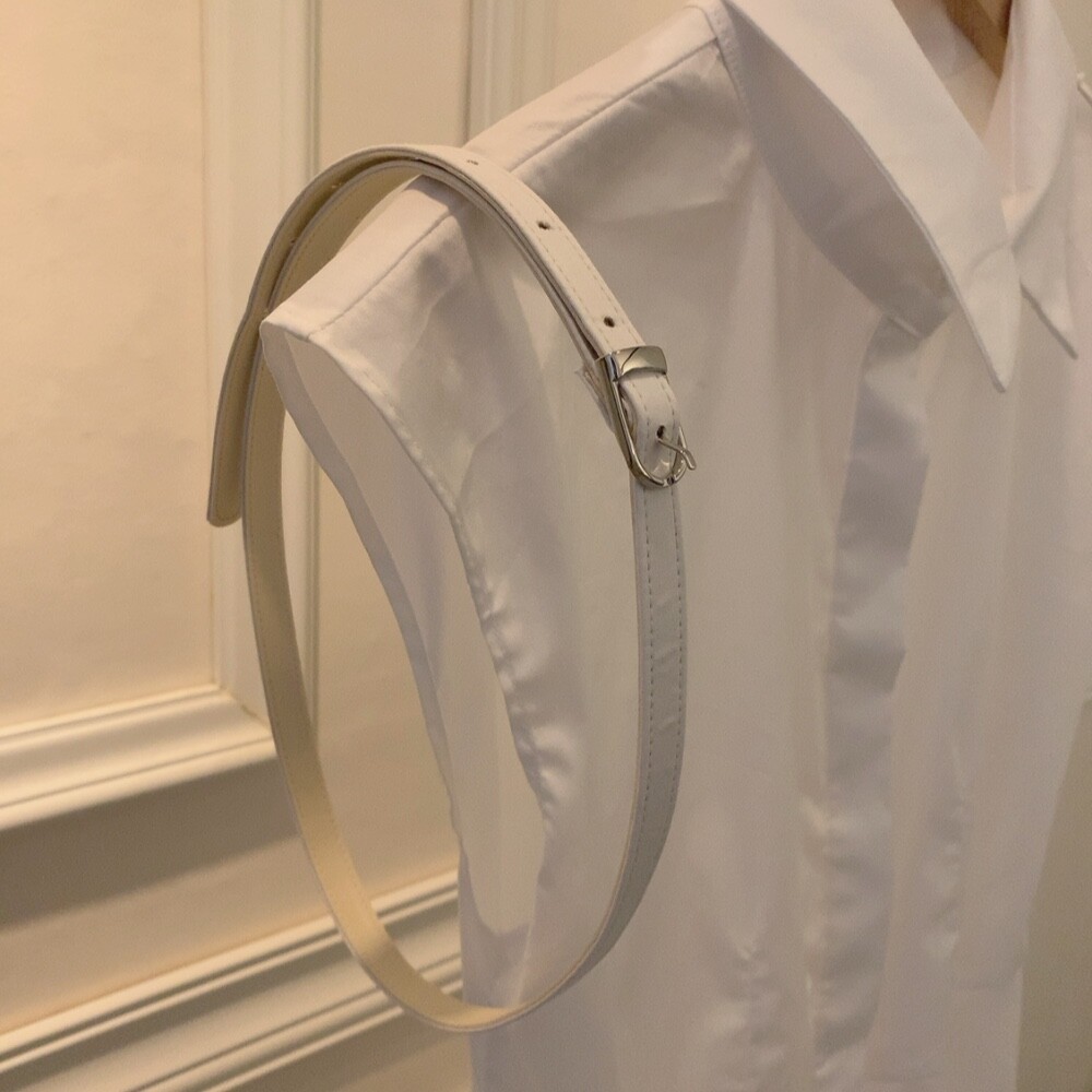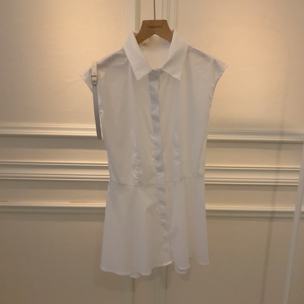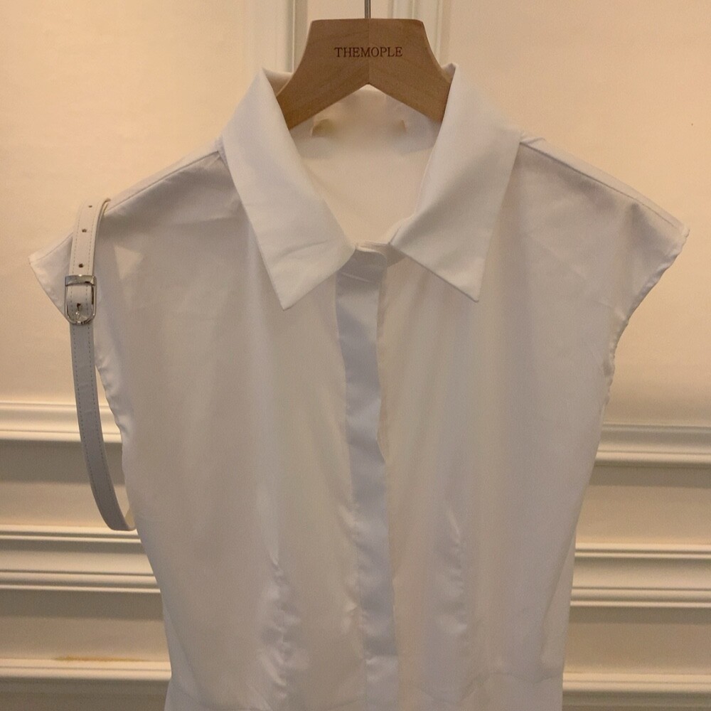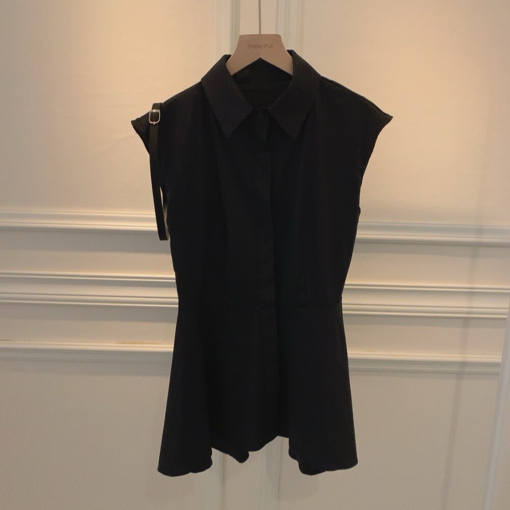 셔츠 카라 민소매 나시 벨트세트 플레어 블라우스 (하객룩 데이트룩 페미닌룩)