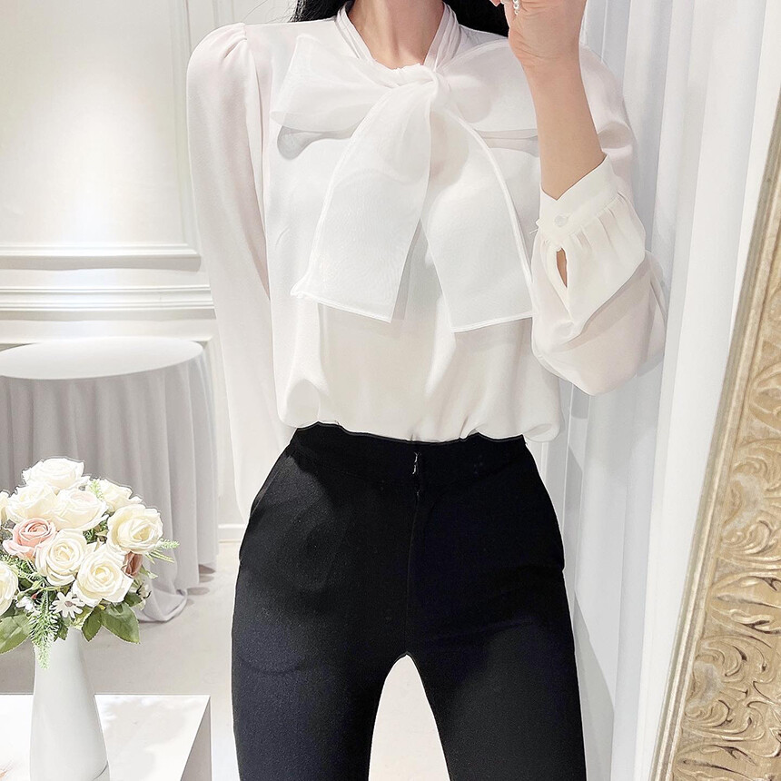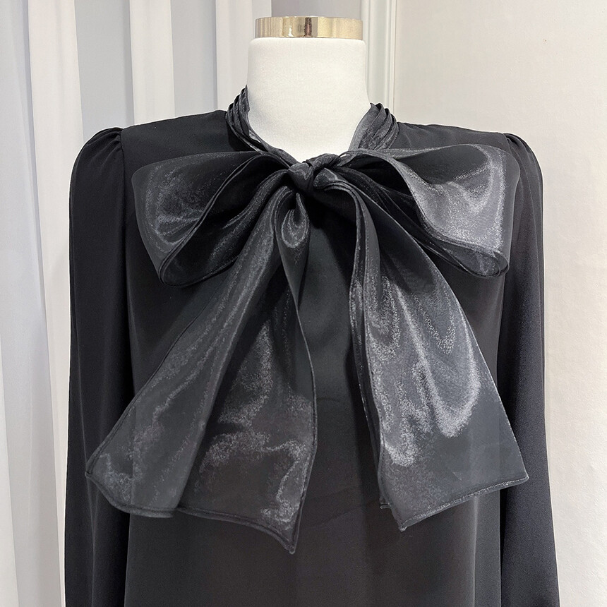 넥 주름 노방 스카프 타이 리본 블라우스 (하객룩 연말룩 파티룩)