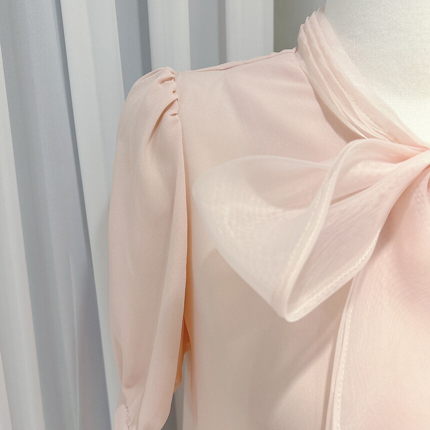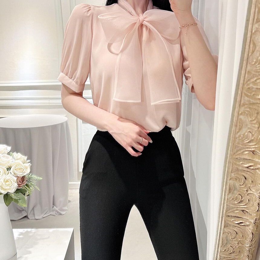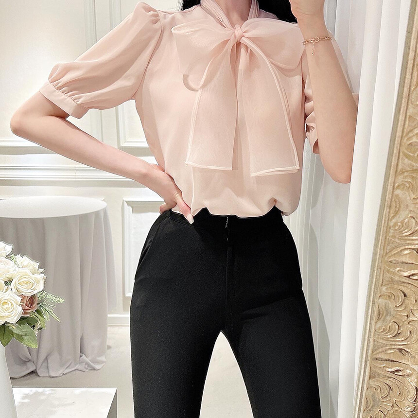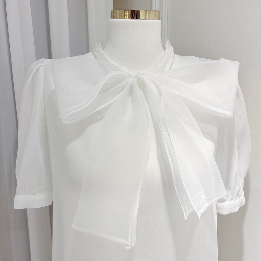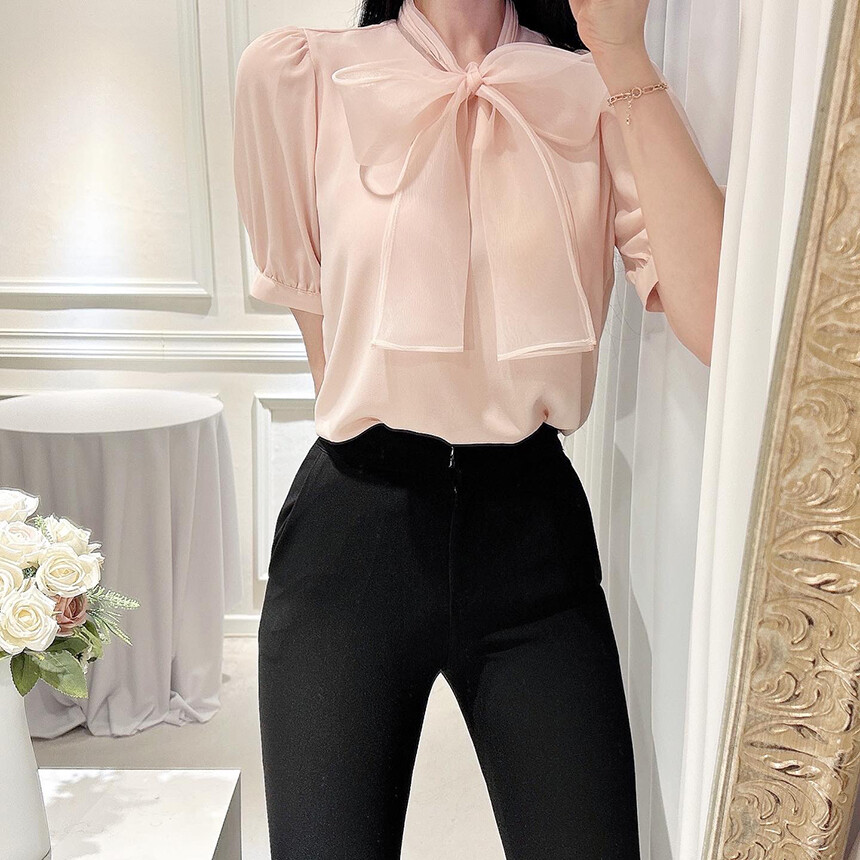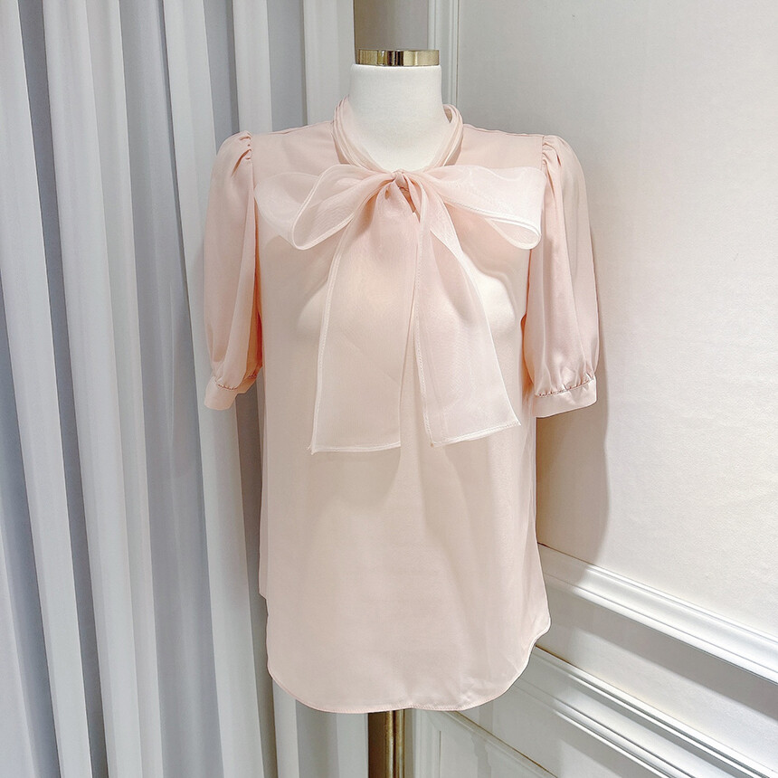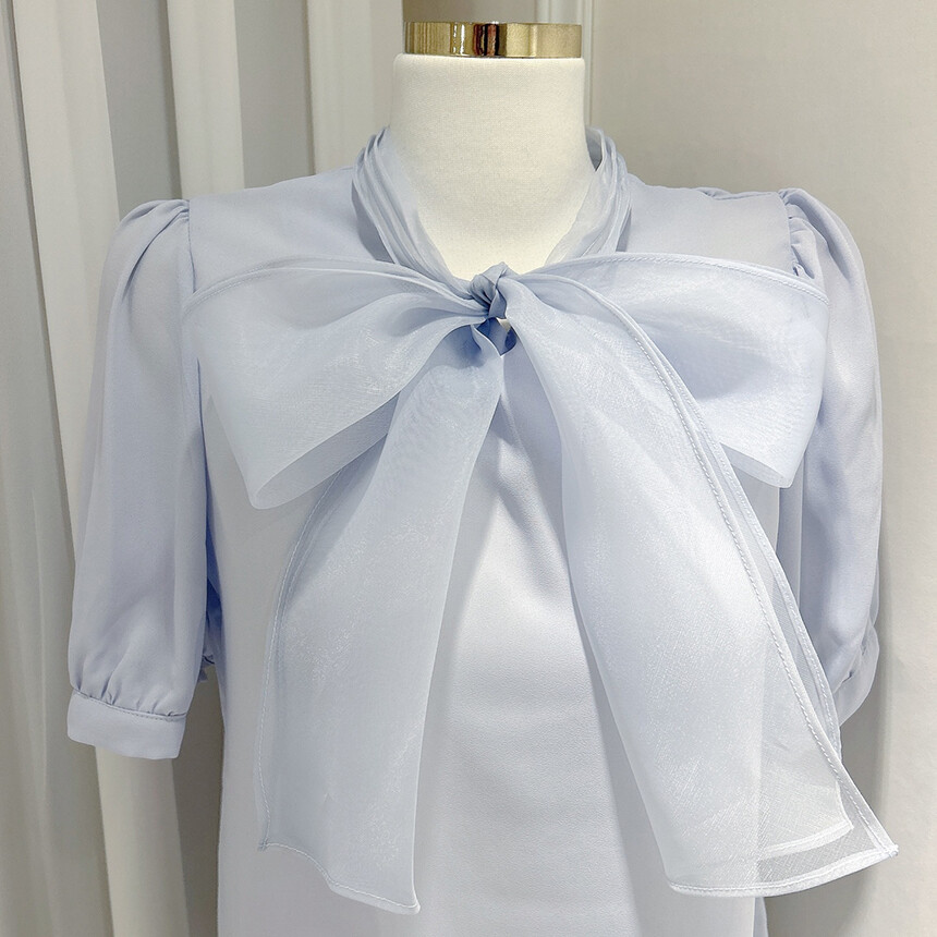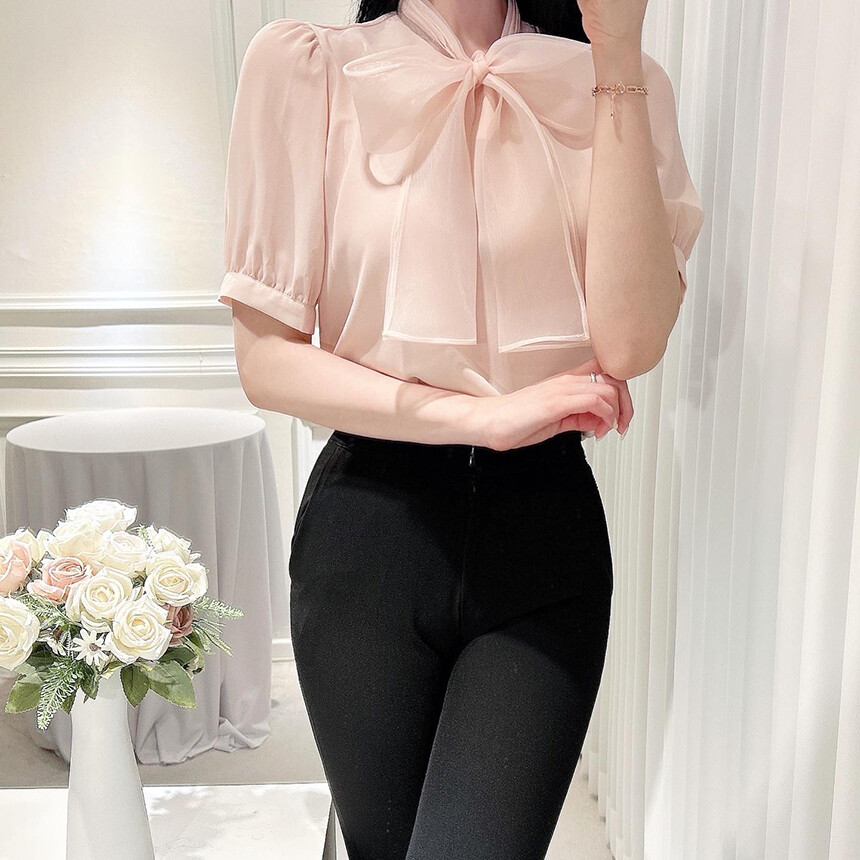 반팔 넥 주름 노방 스카프 타이 리본 블라우스 (하객룩 데이트룩 오피스룩)