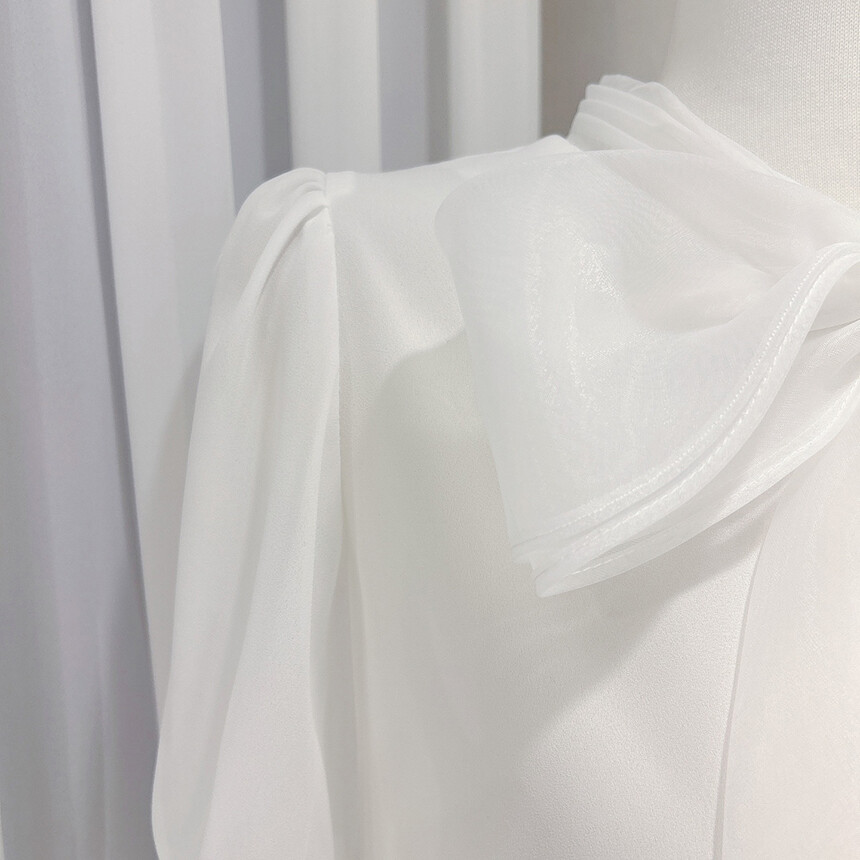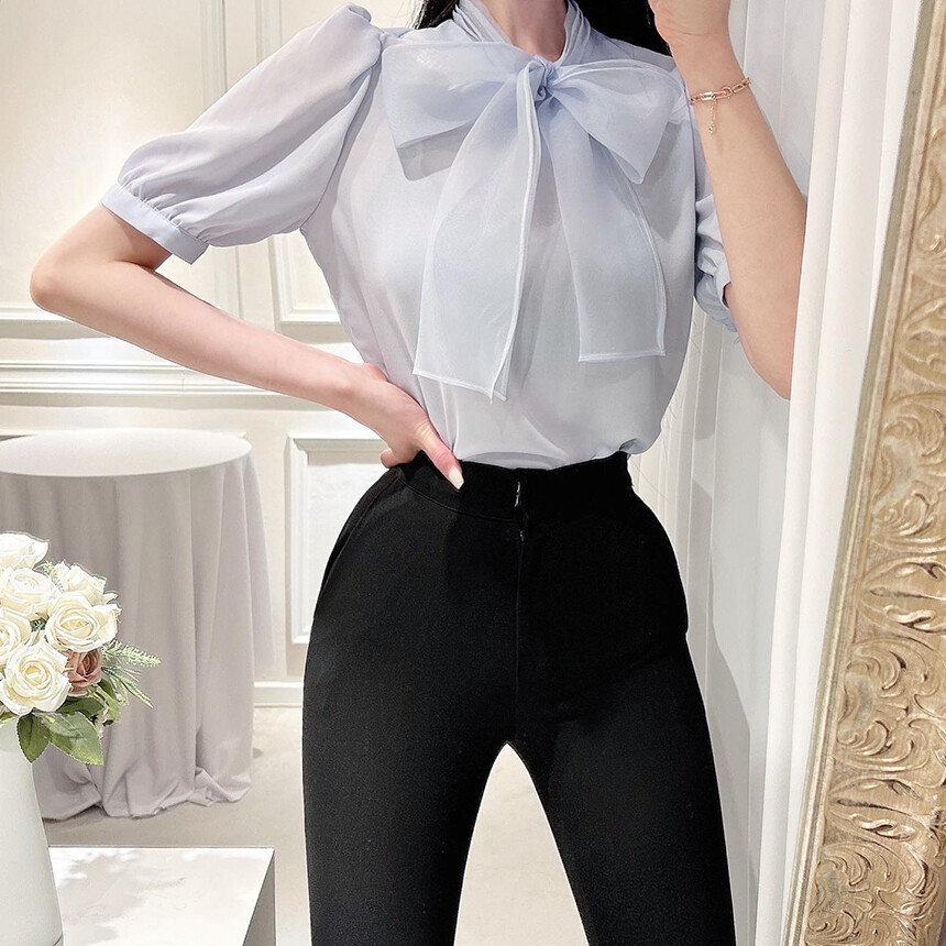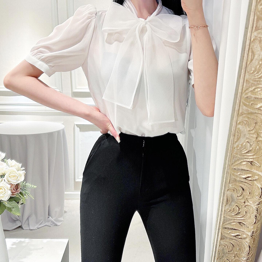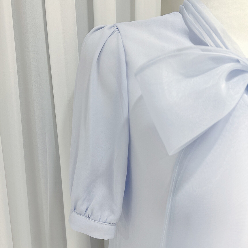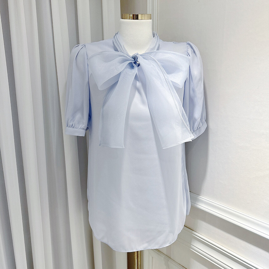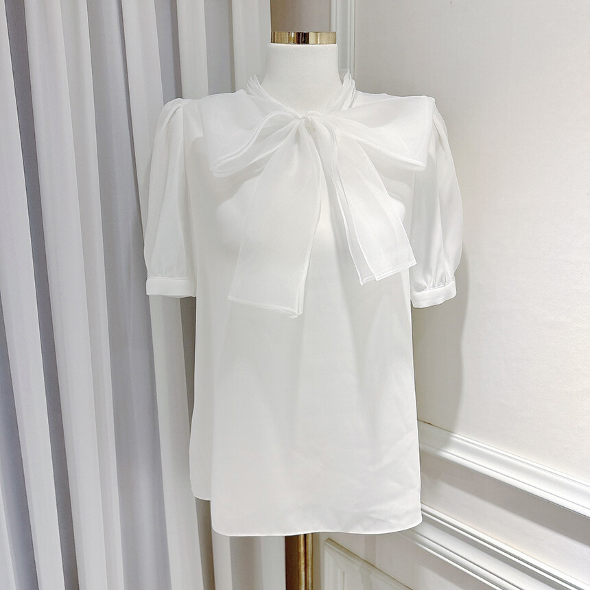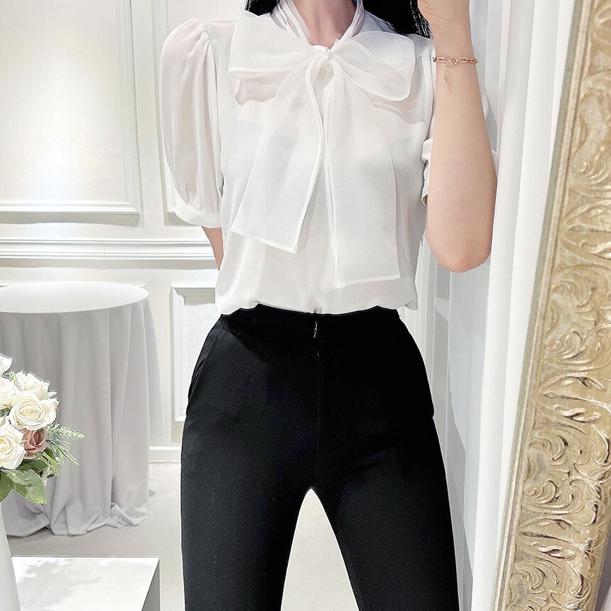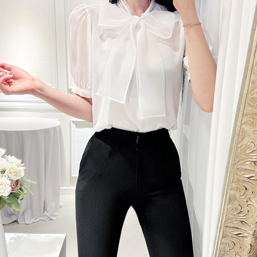 반팔 넥 주름 노방 스카프 타이 리본 블라우스 (하객룩 데이트룩 오피스룩)