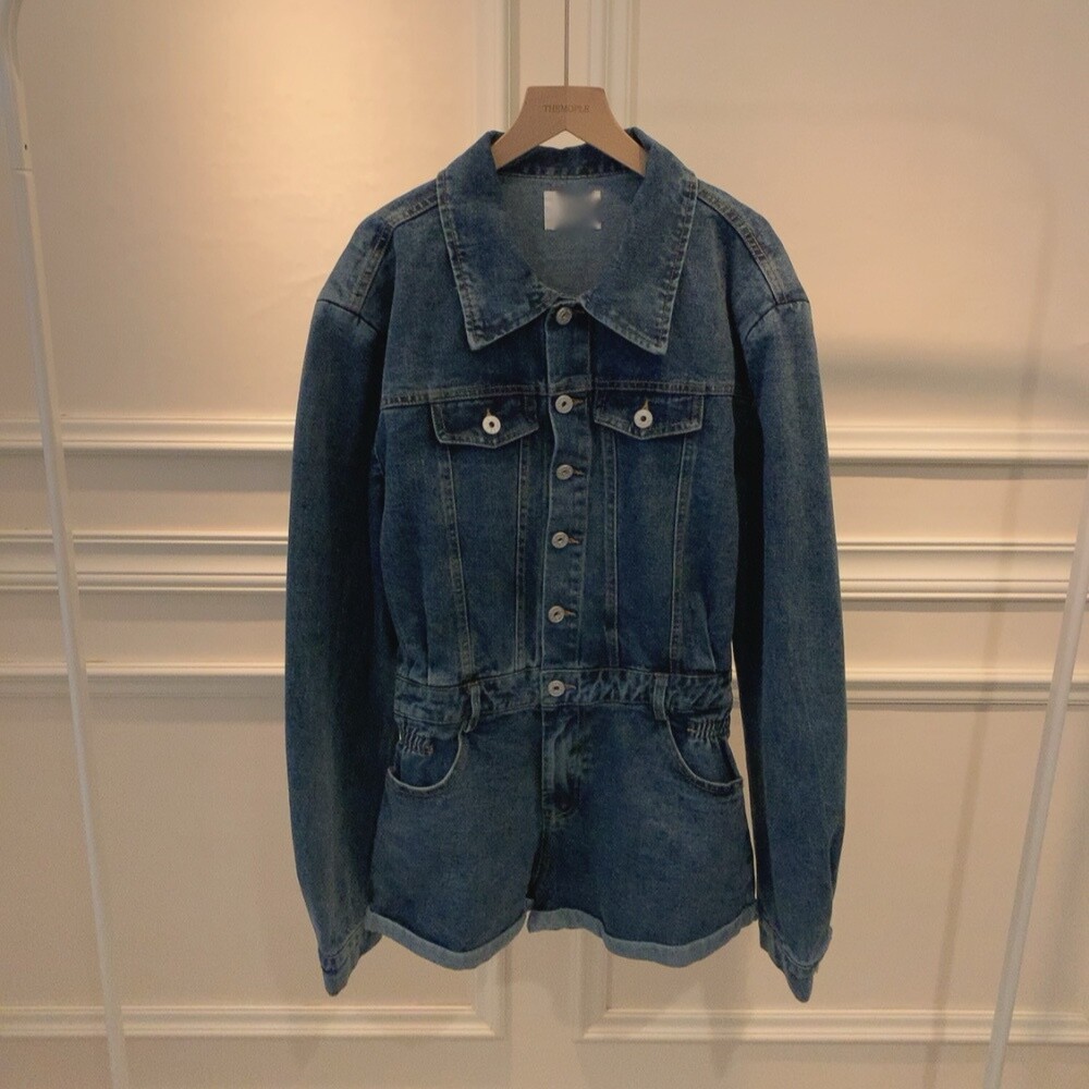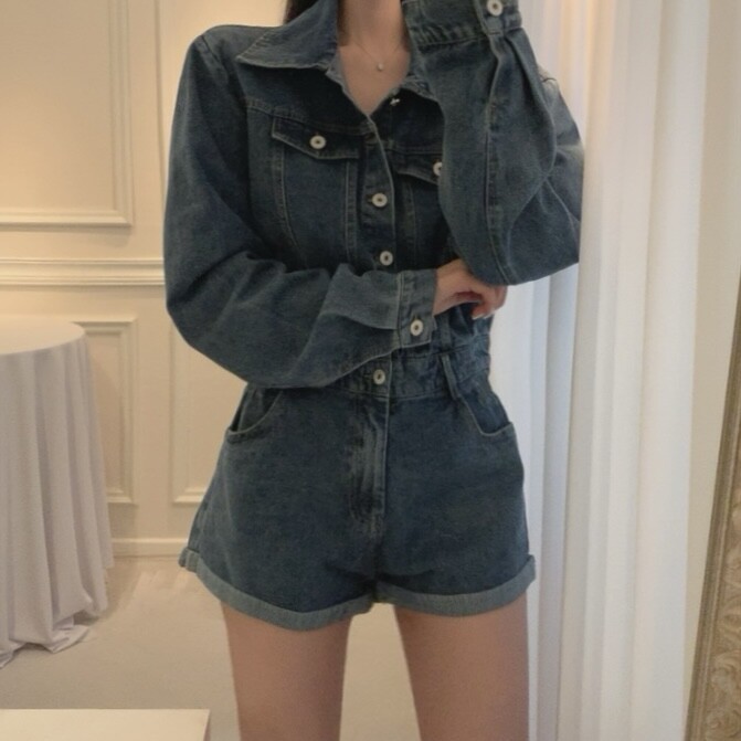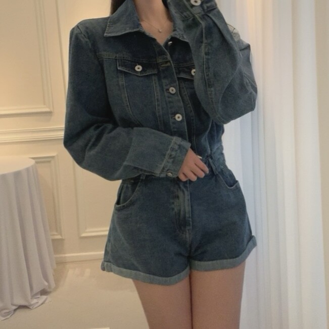 긴팔 루즈핏 데님 셔츠에 숏 반바지가 합쳐진듯한
