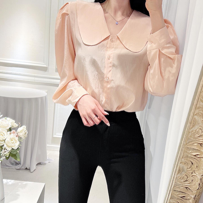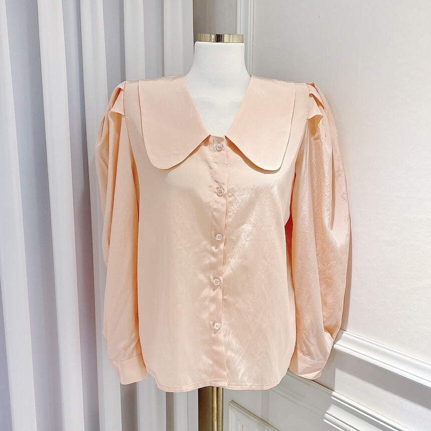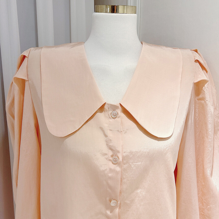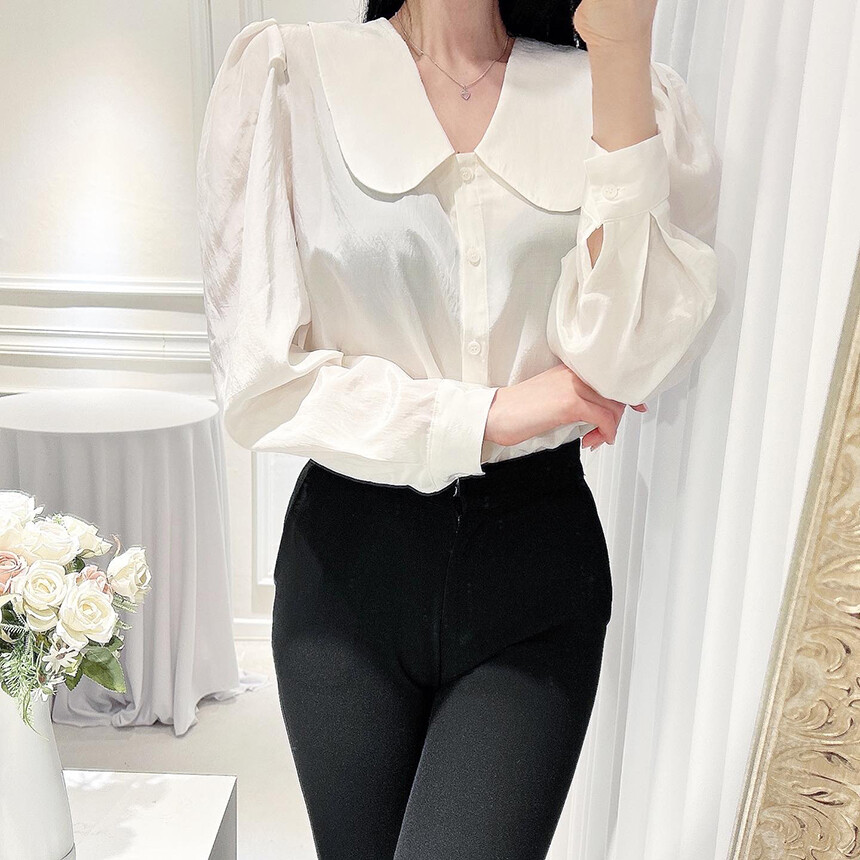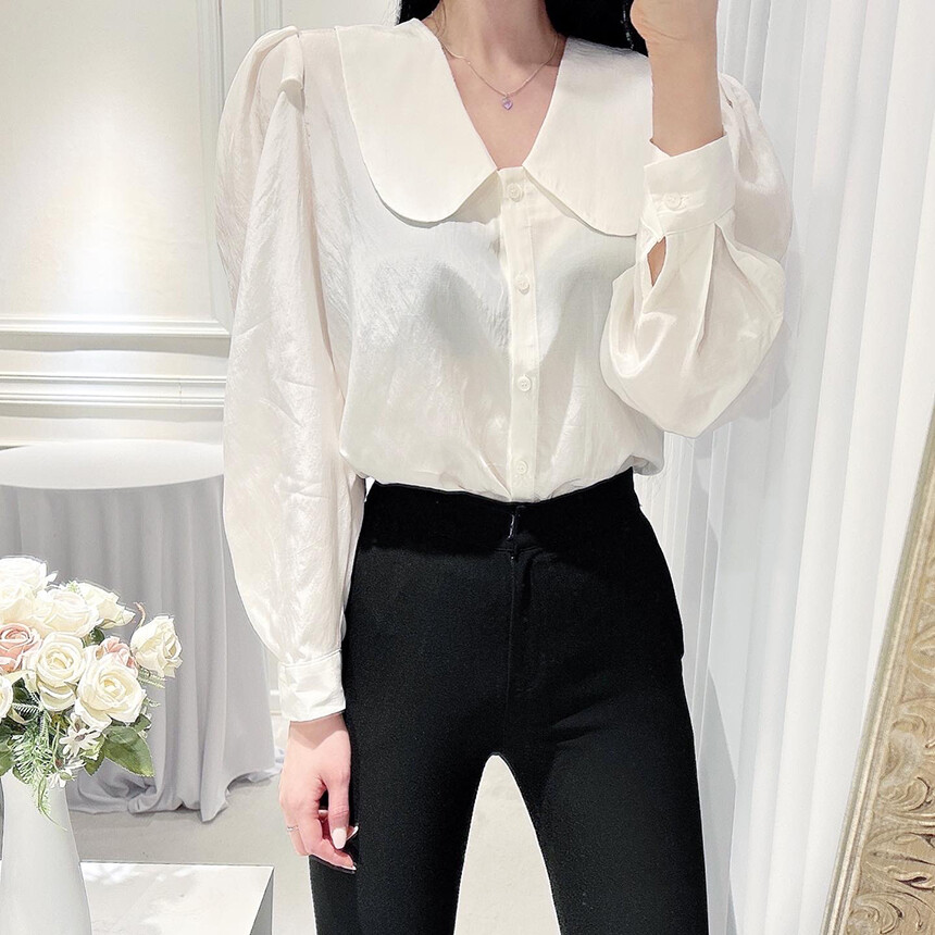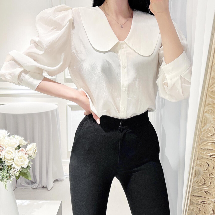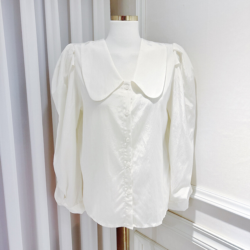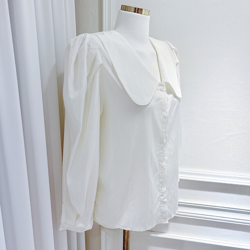 [SALE 원가이하 세일] 나비 빅카라 퍼프 벌룬 소매 루즈핏 단추 블라우스 (하객룩 데일리 데이트룩)