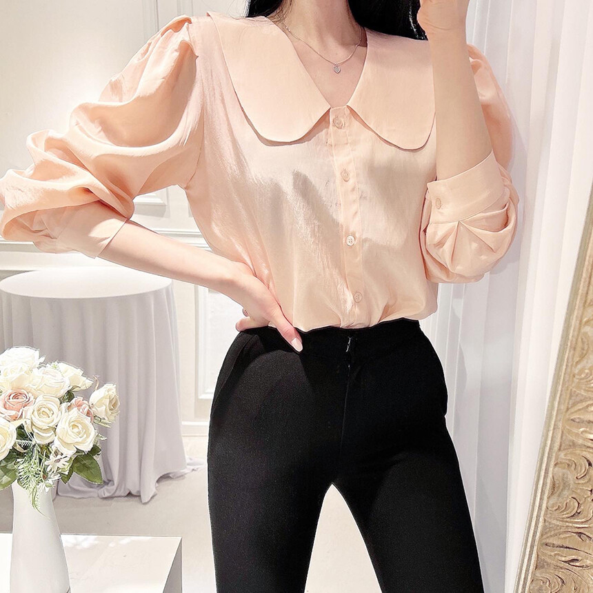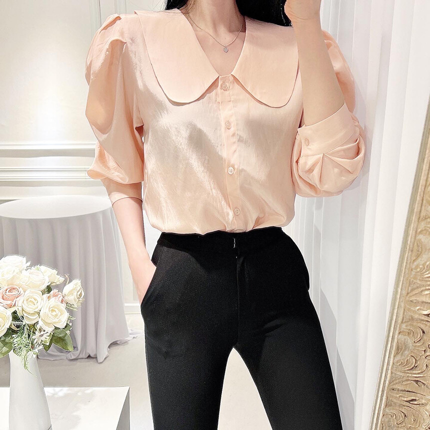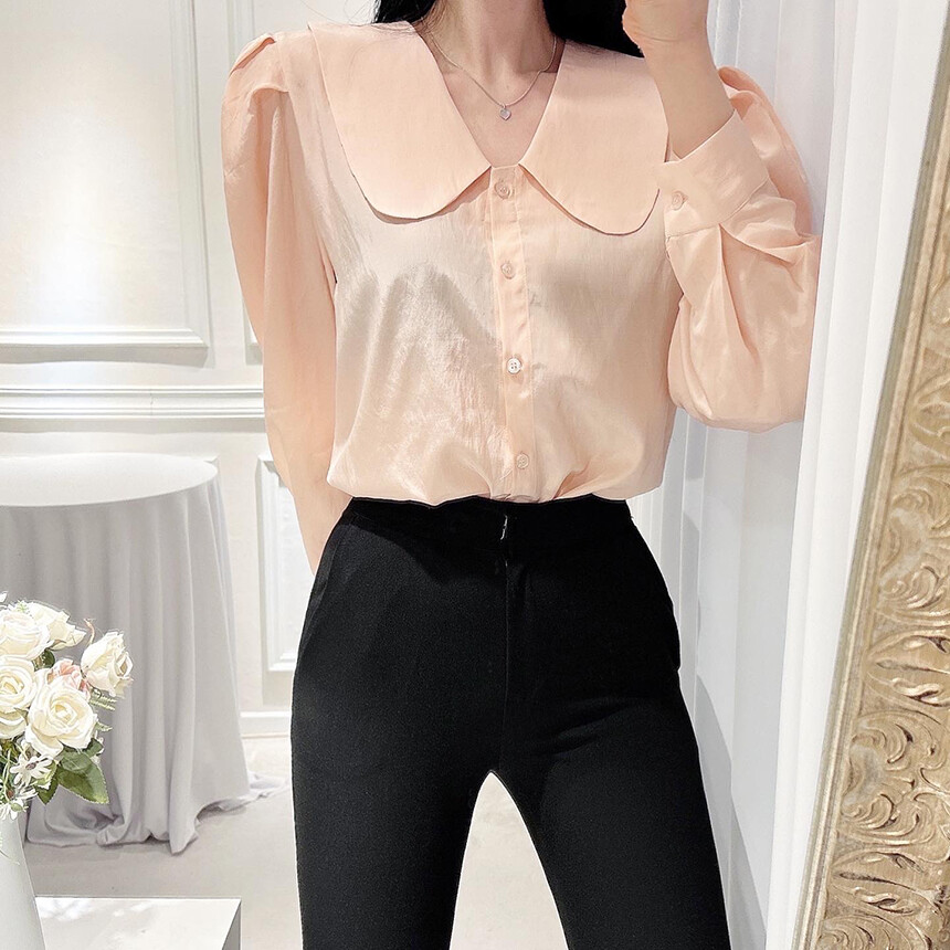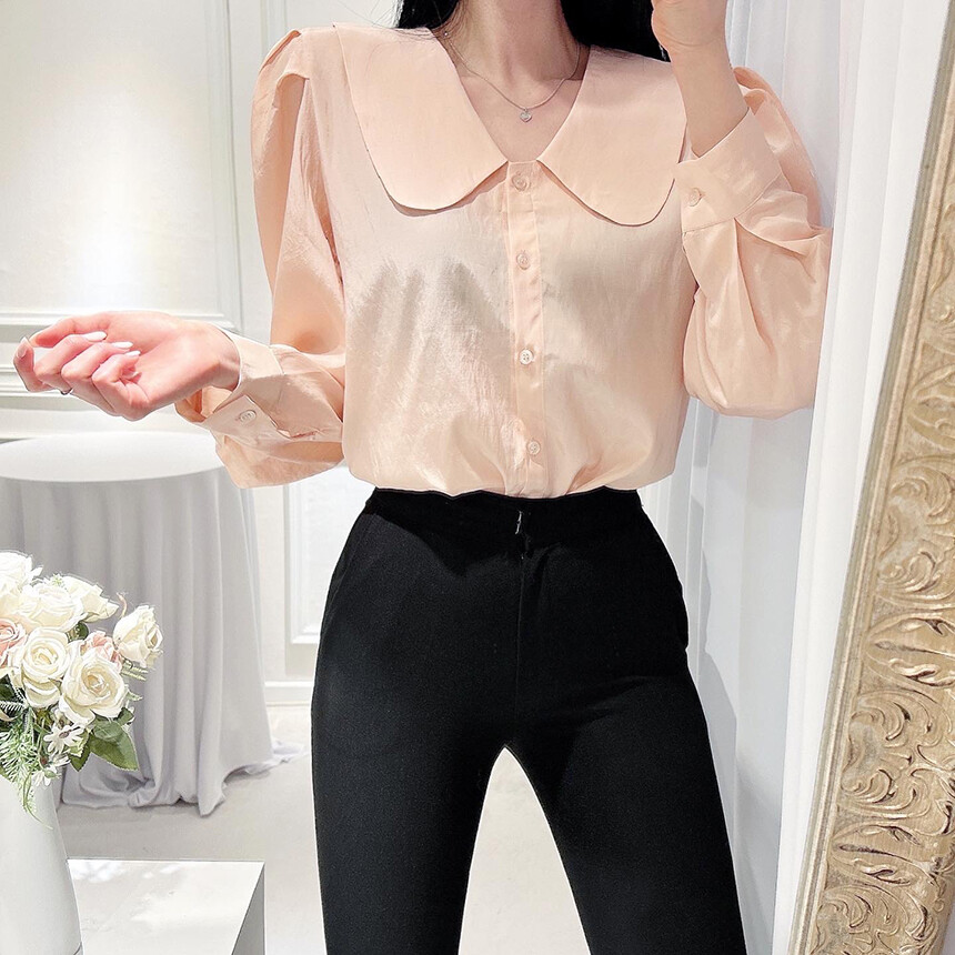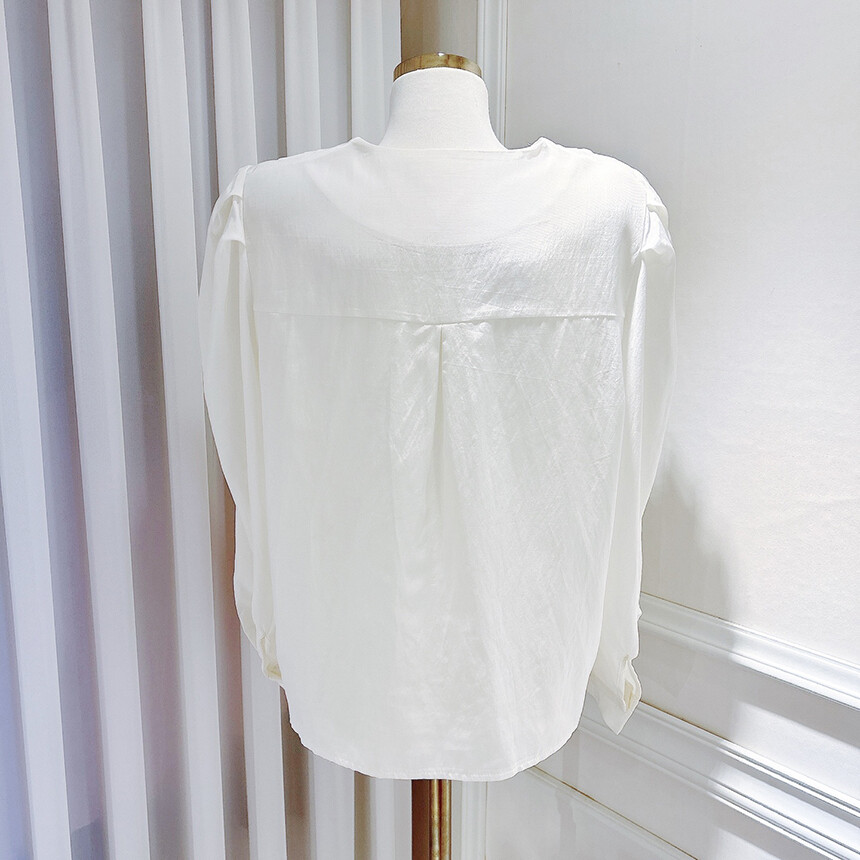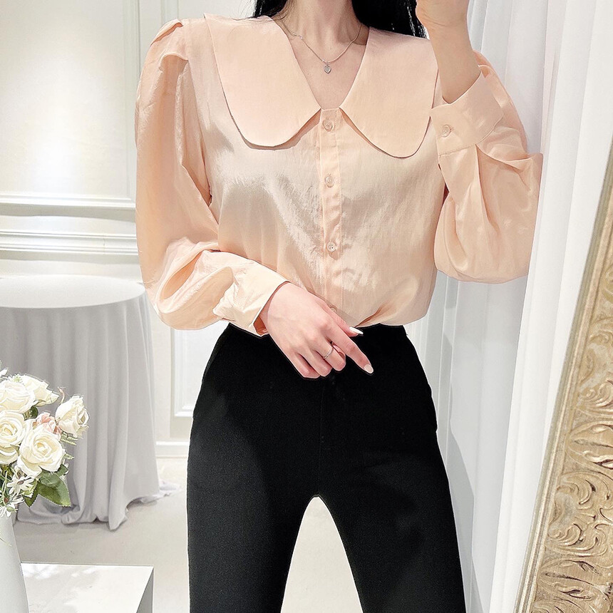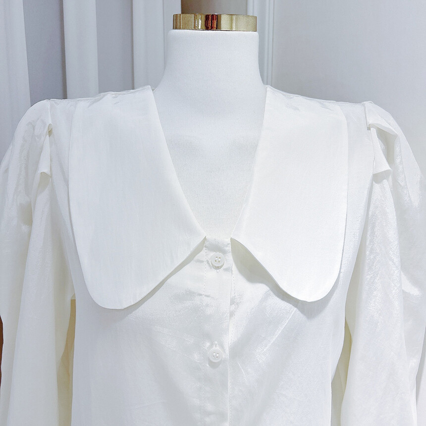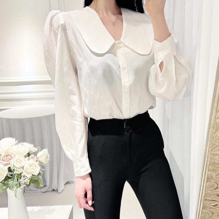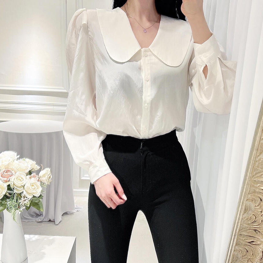 [SALE 원가이하 세일] 나비 빅카라 퍼프 벌룬 소매 루즈핏 단추 블라우스 (하객룩 데일리 데이트룩)