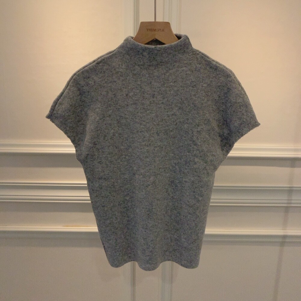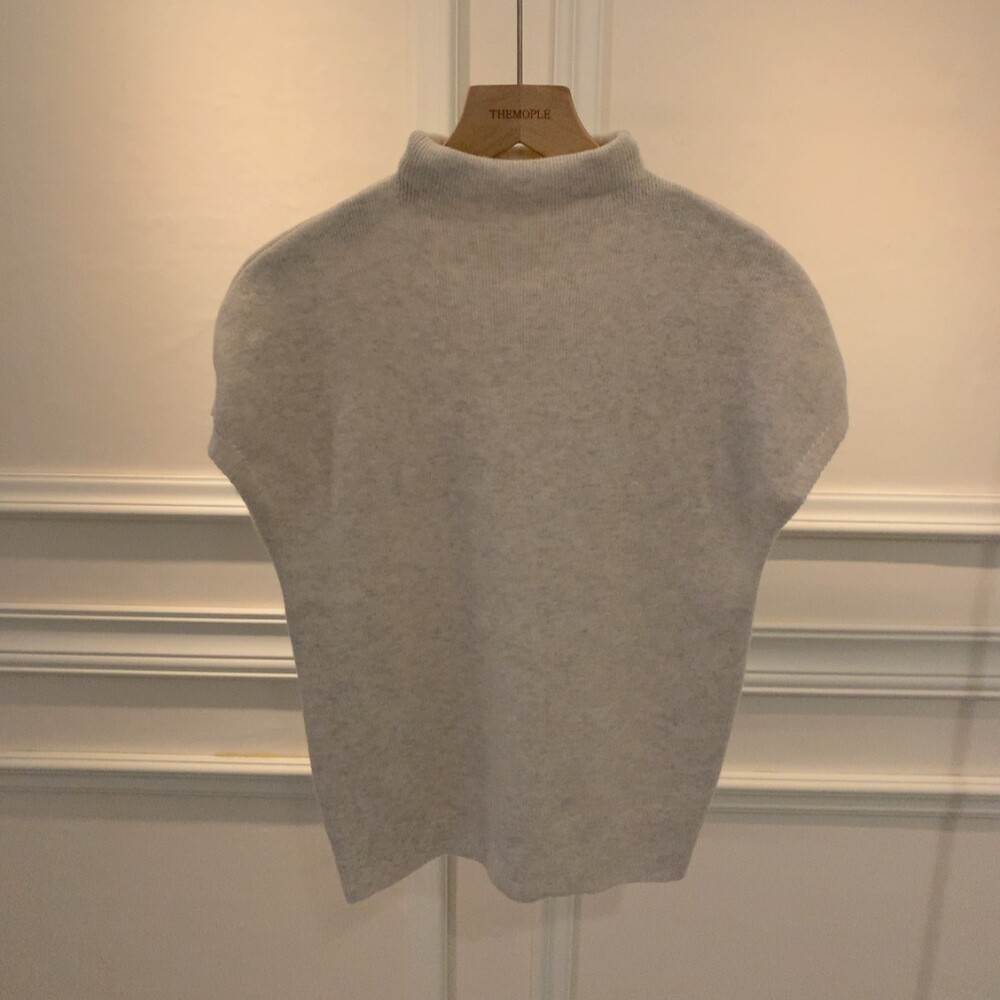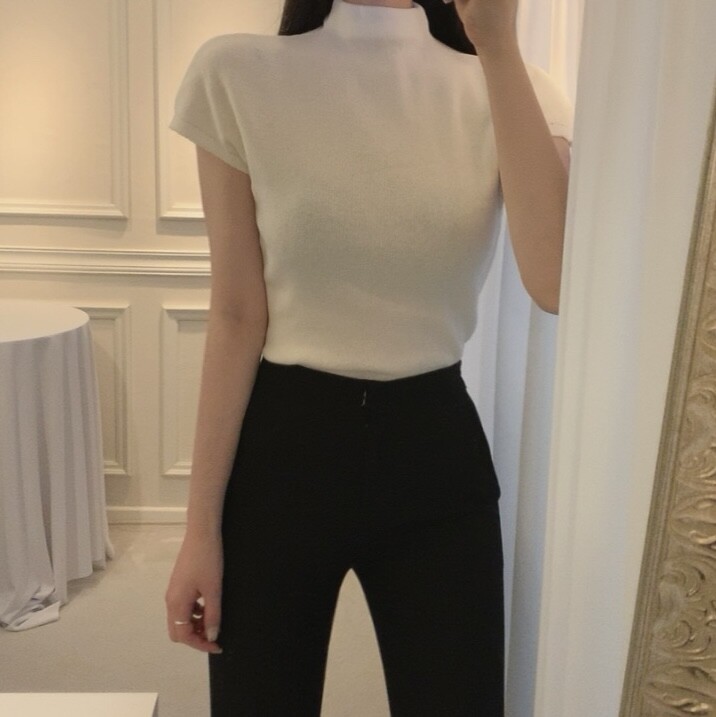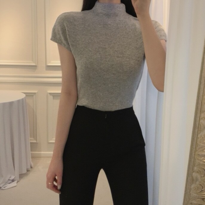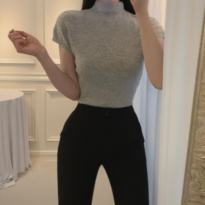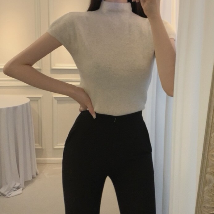 [고퀄리티] 캐시미어 가을 도톰 캡소매 반팔 반목 하프넥 니트