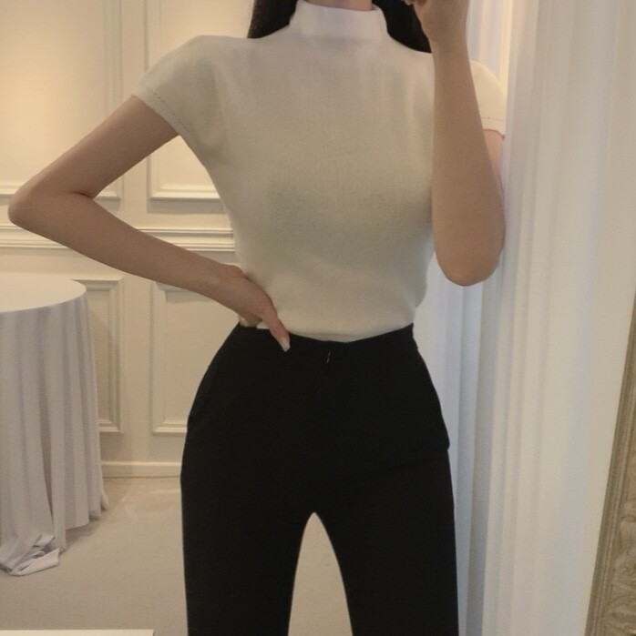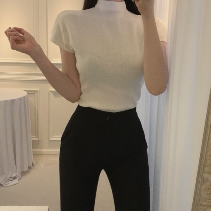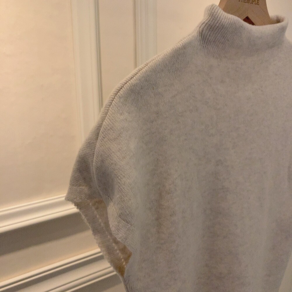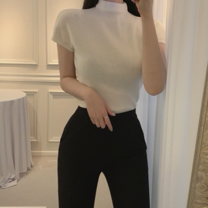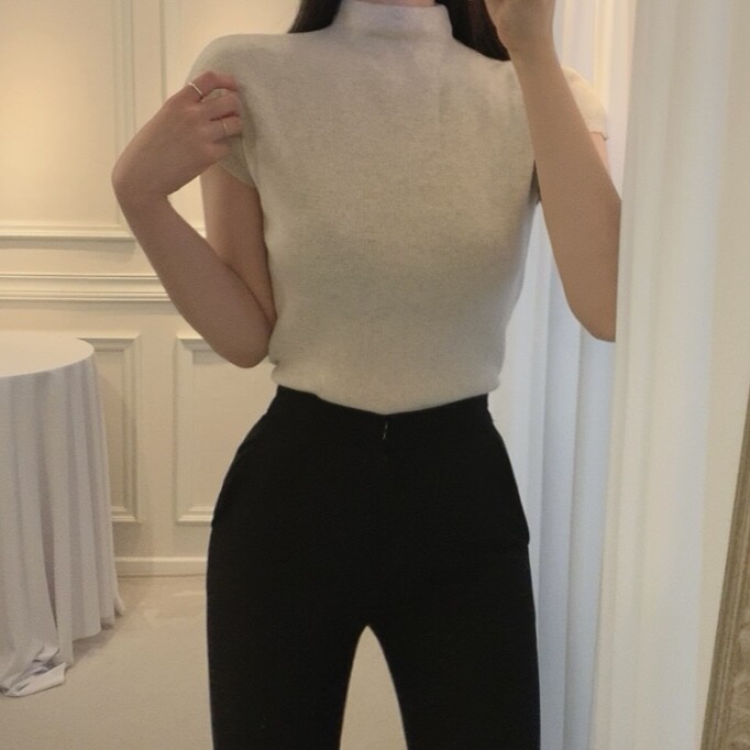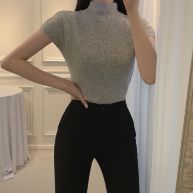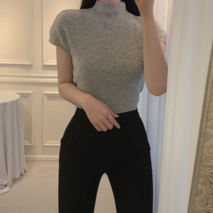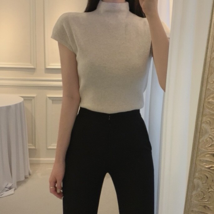 [고퀄리티] 캐시미어 가을 도톰 캡소매 반팔 반목 하프넥 니트