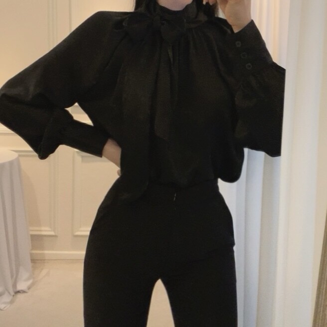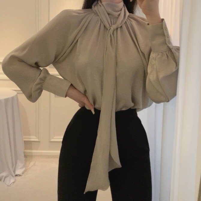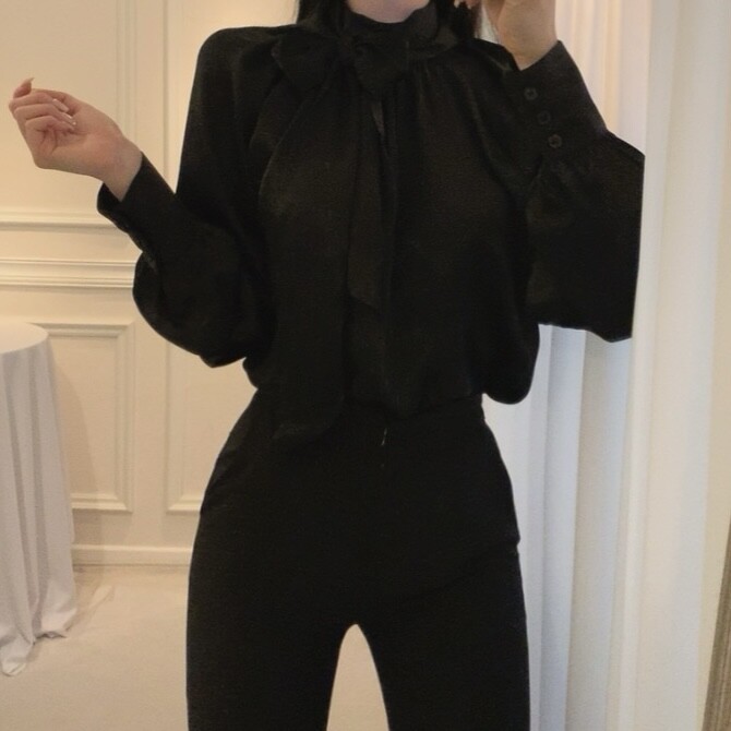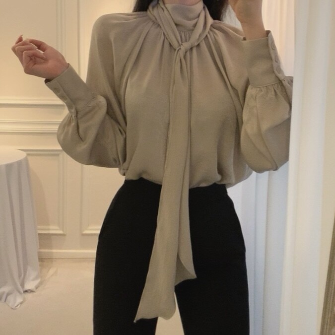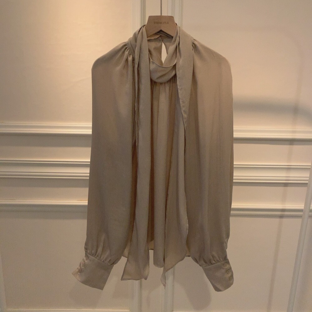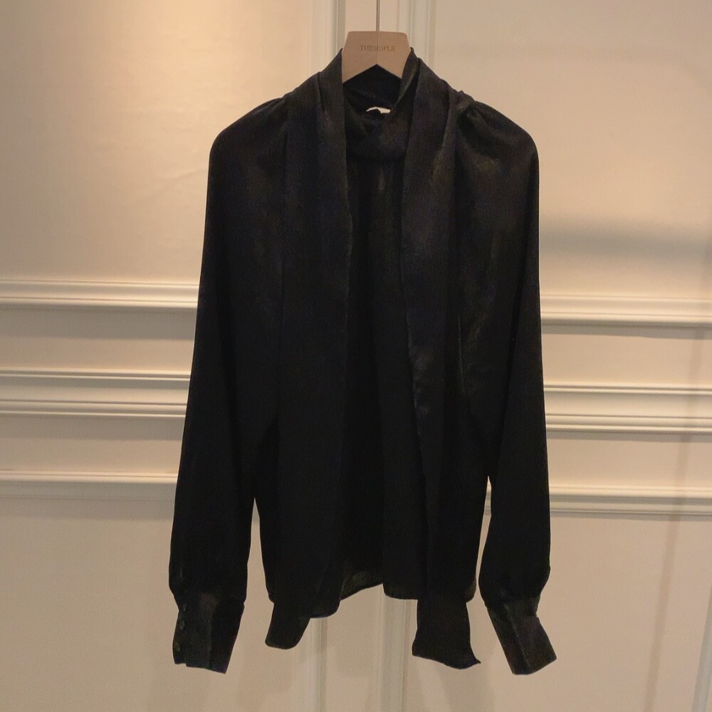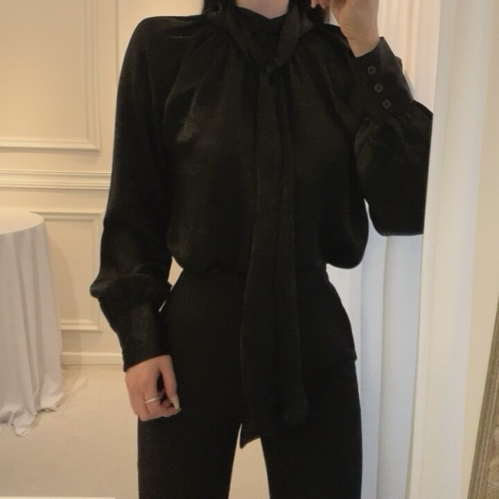 샤인 글로시 스카프 타이 새틴 블라우스 (하객룩 럭셔리룩 오피스룩)