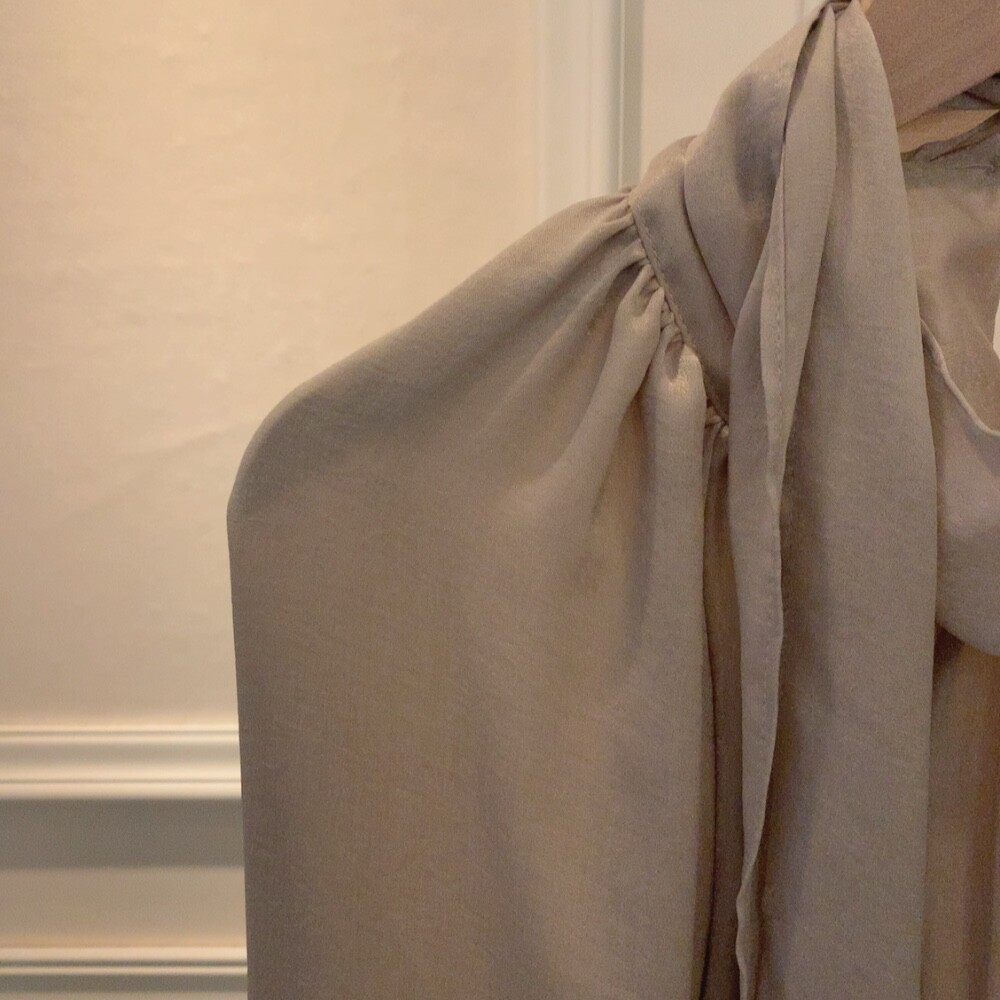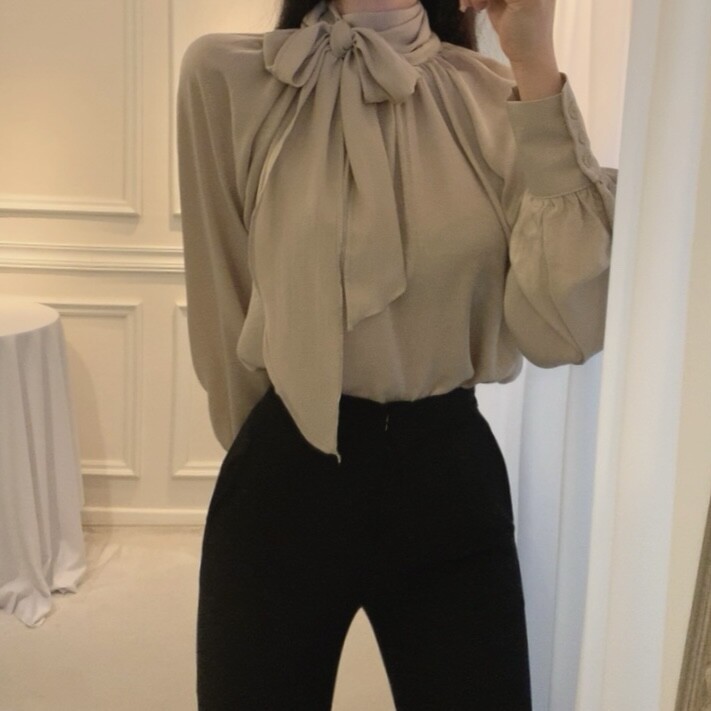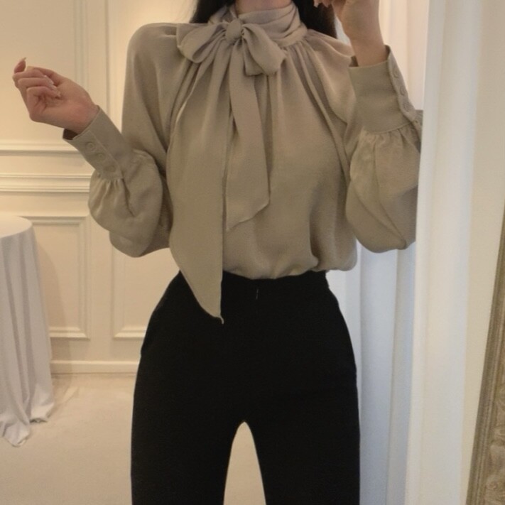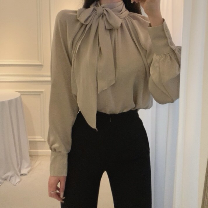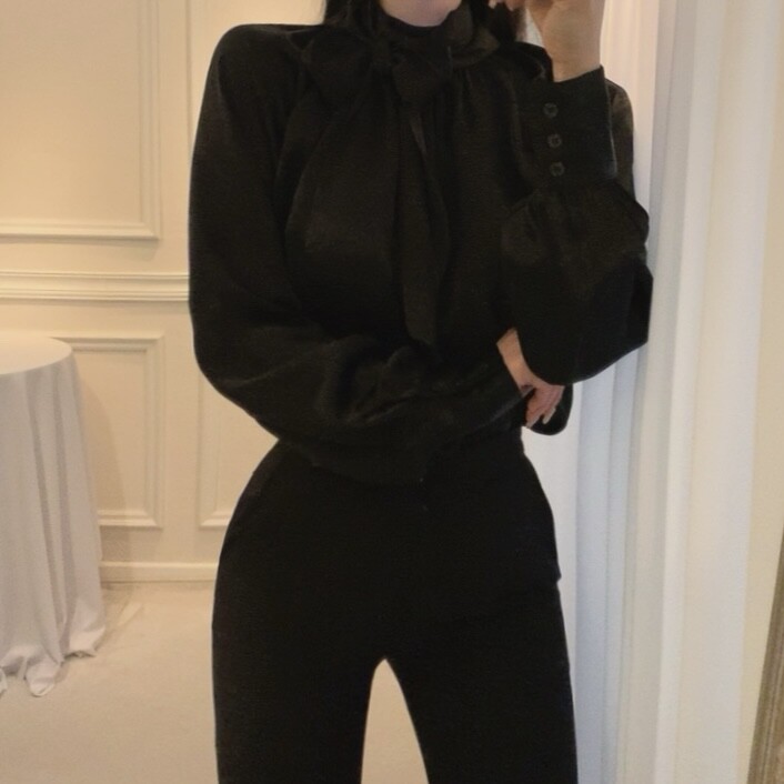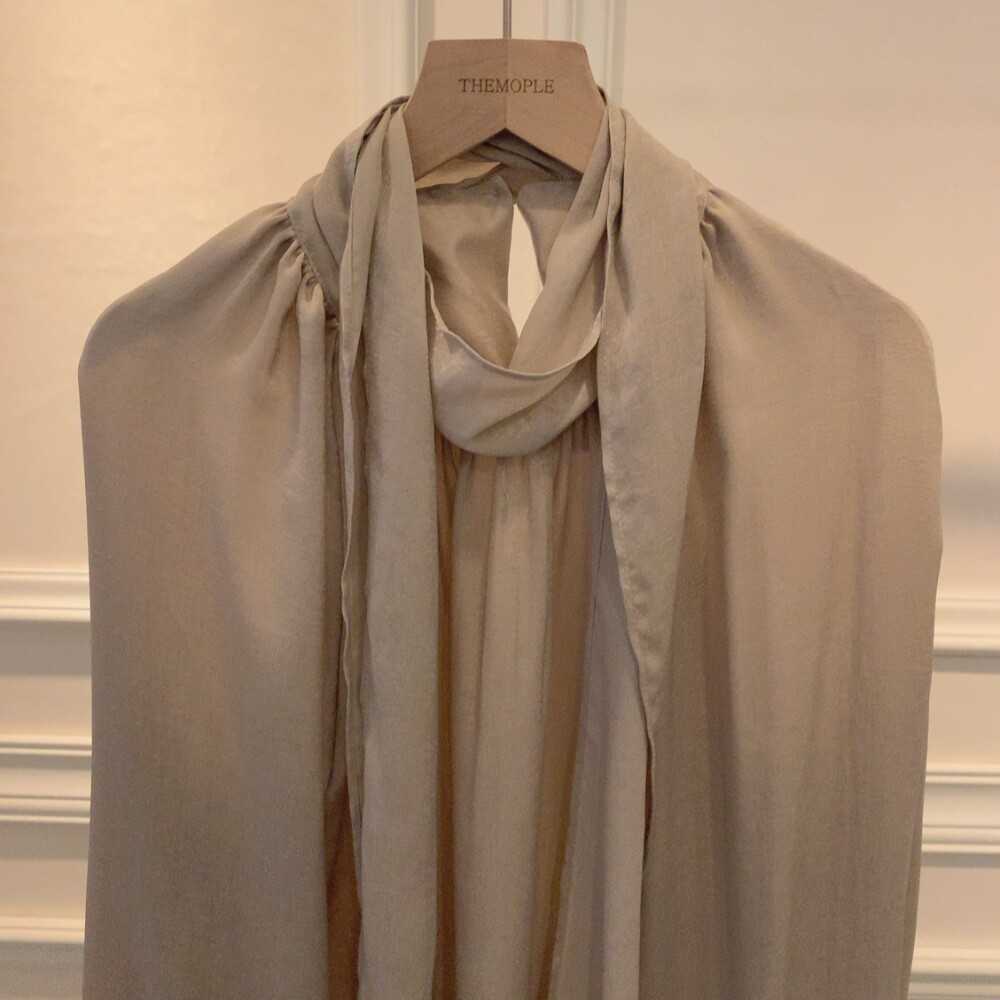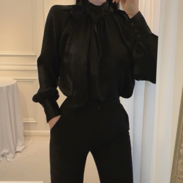 샤인 글로시 스카프 타이 새틴 블라우스 (하객룩 럭셔리룩 오피스룩)