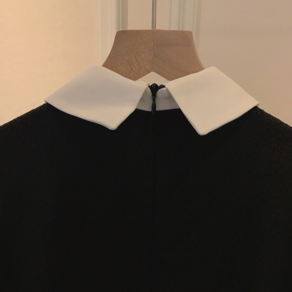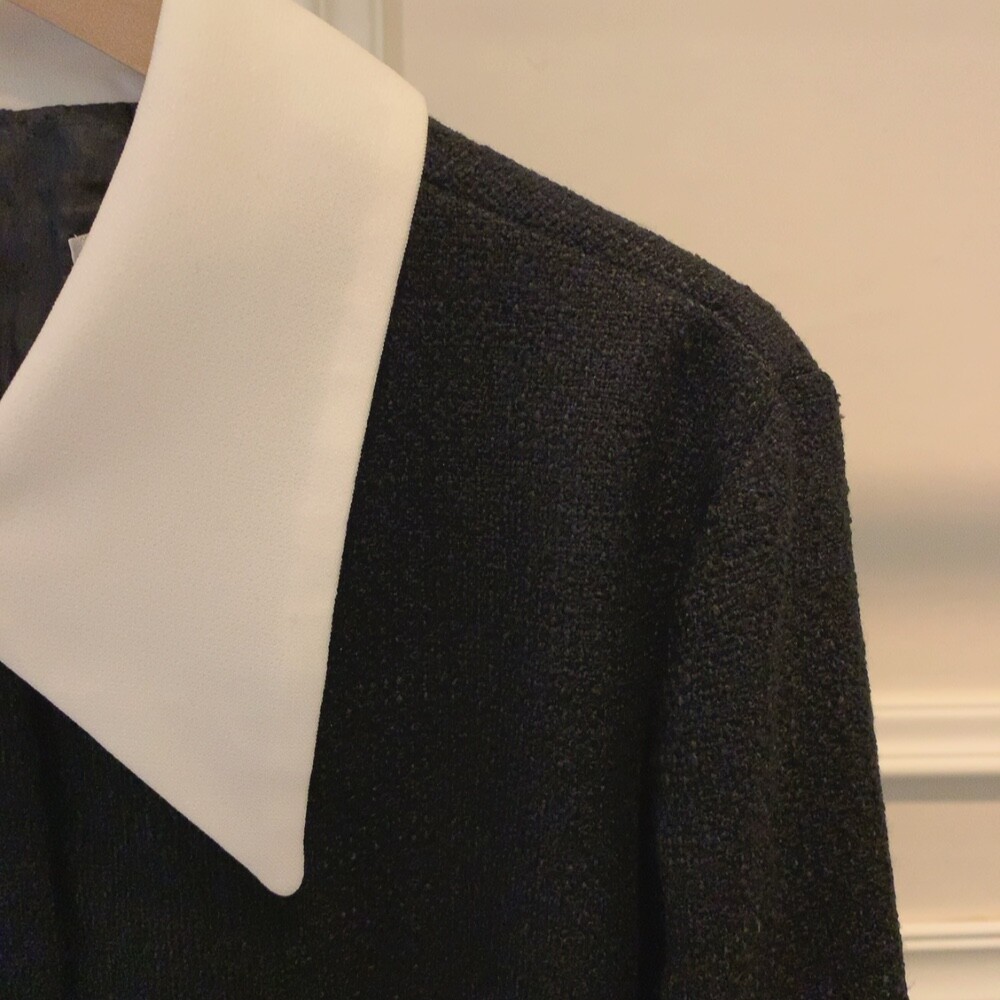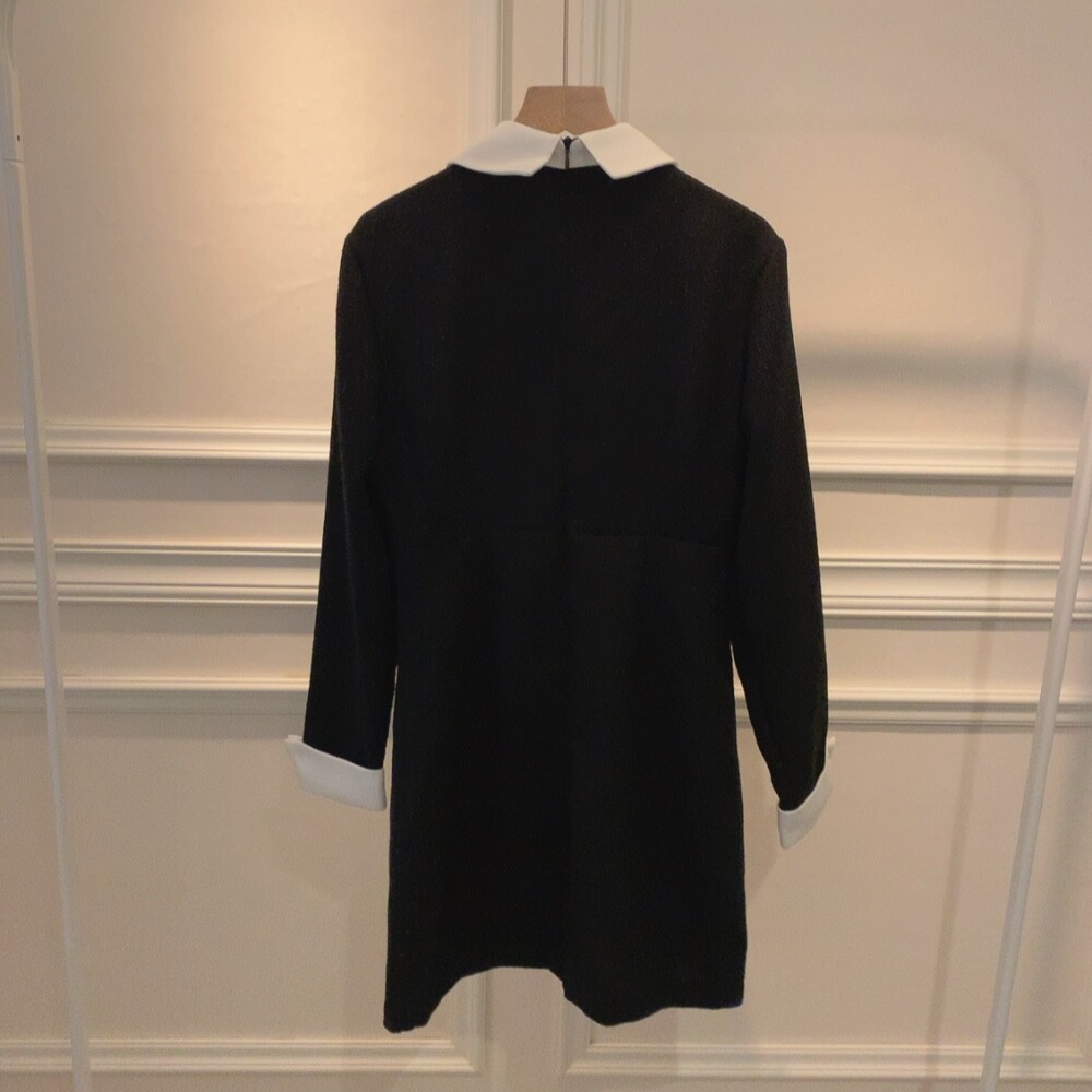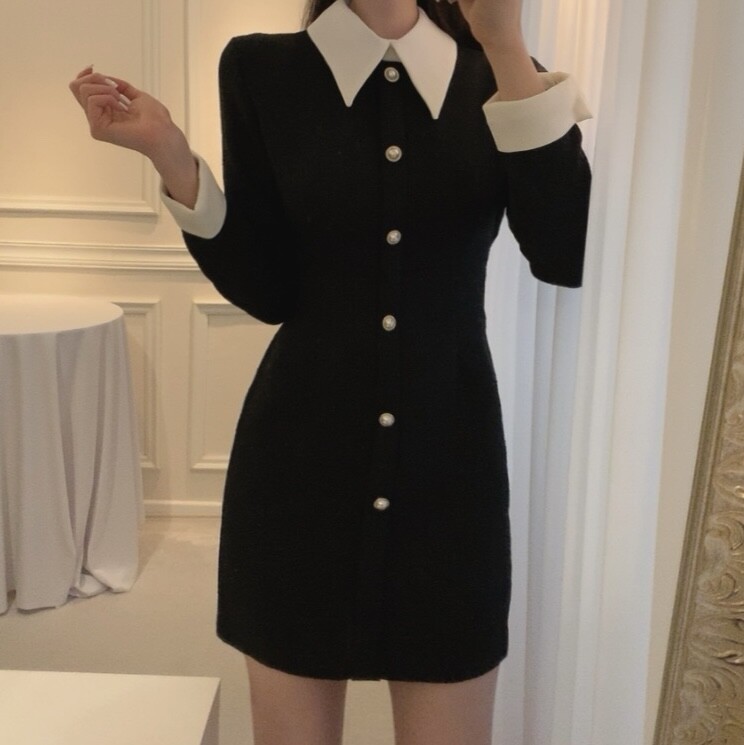 트위드 카라 배색 진주 버튼 슬림핏 미니원피스 (하객룩 결혼식 격식있는룩)