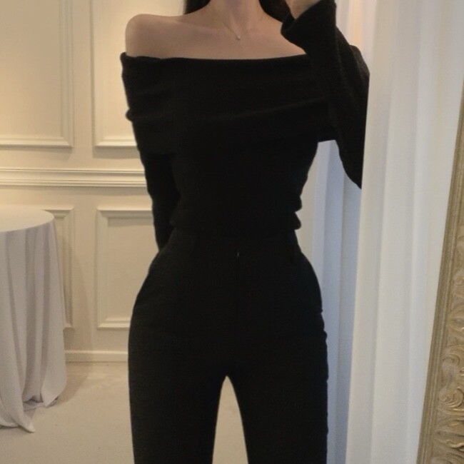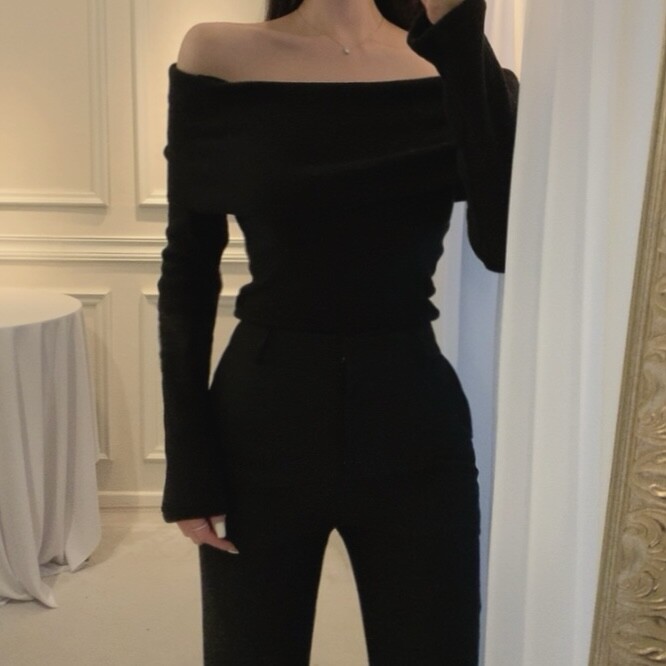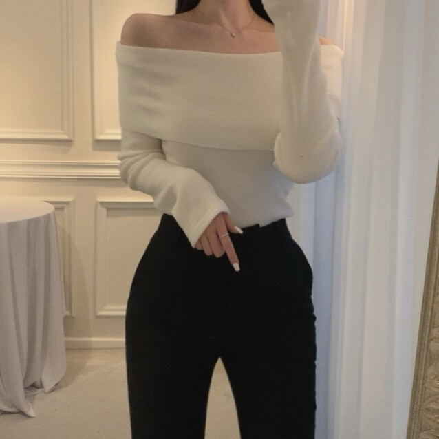 [무료배송] 기모 소프트 여리여리 오프숄더 긴팔 니트