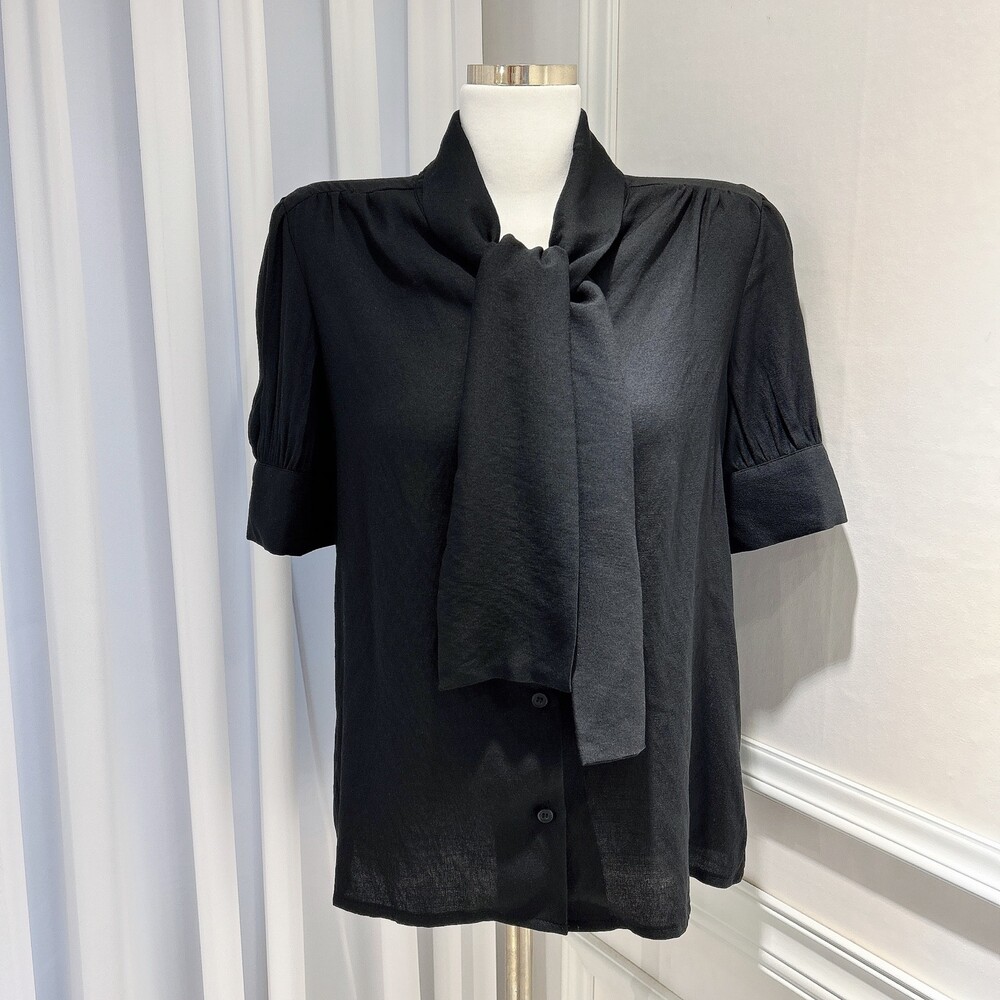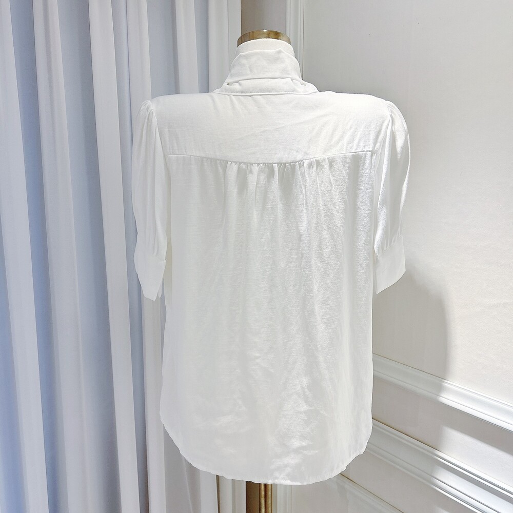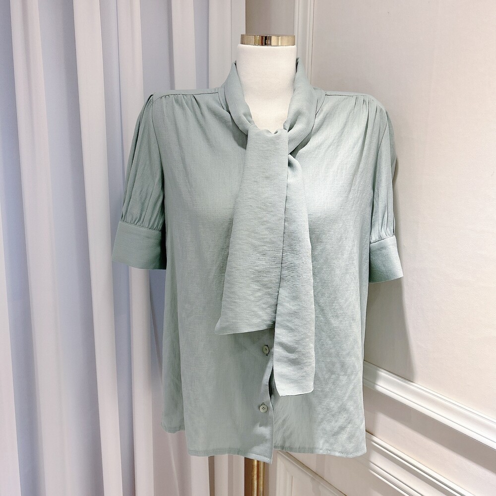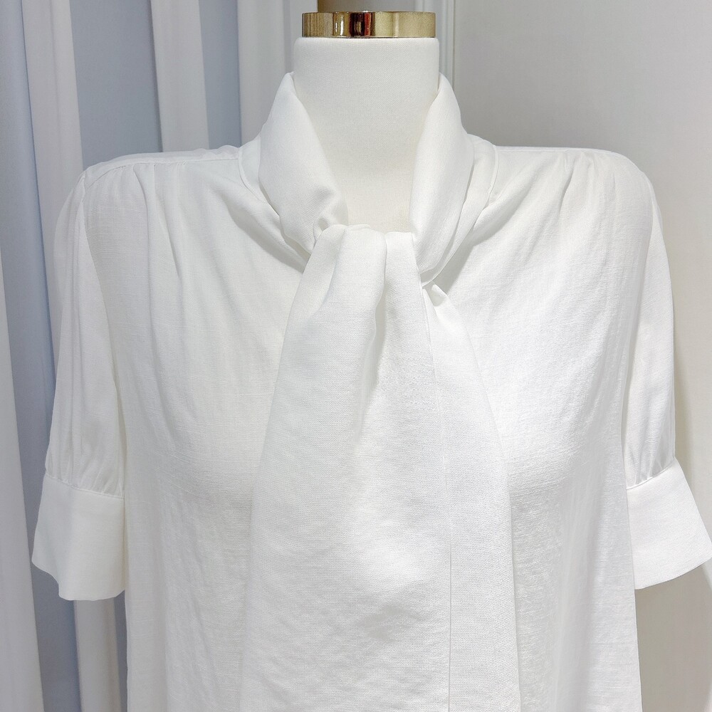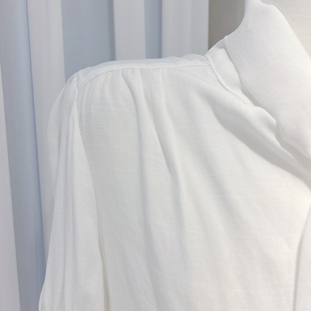[SALE 원가이하 세일] 린넨 여름 반팔 스카프 타이 리본 퍼프 소매 블라우스 (하객룩 데이트룩 오피스룩)