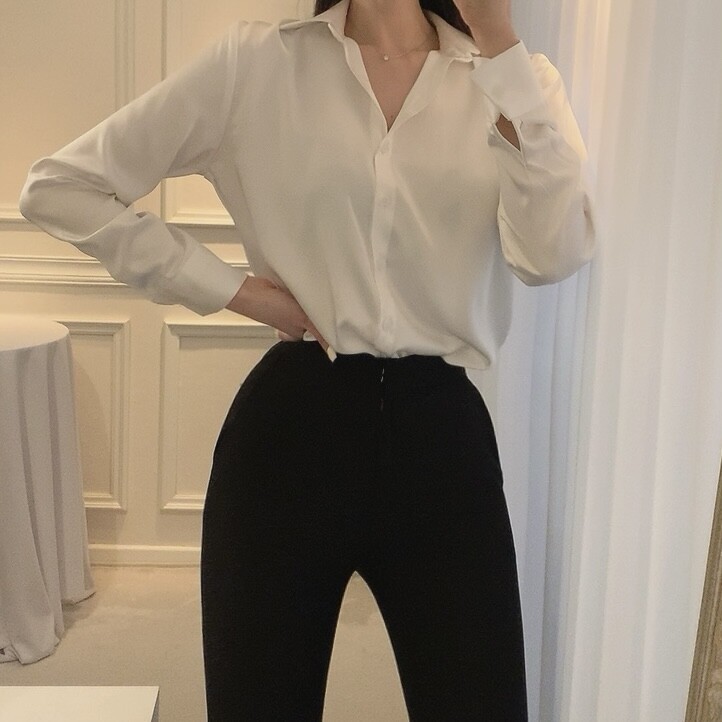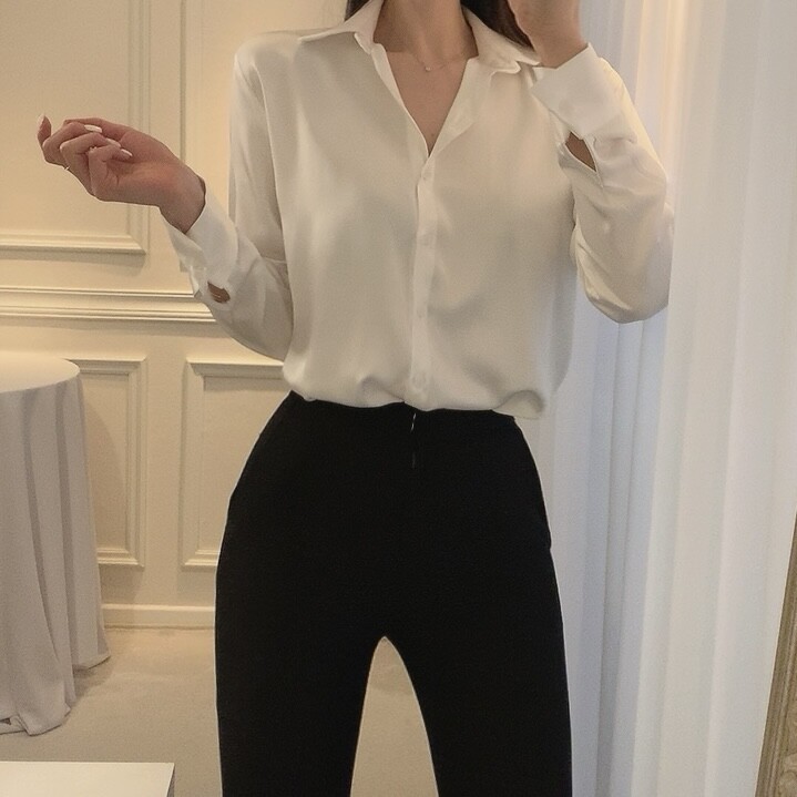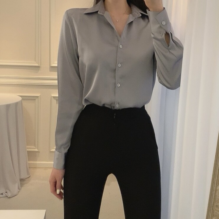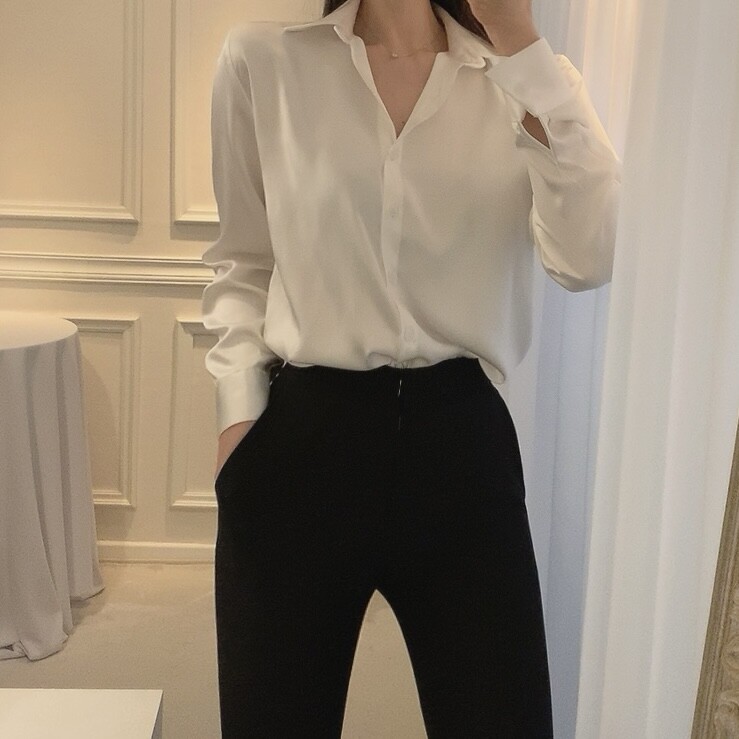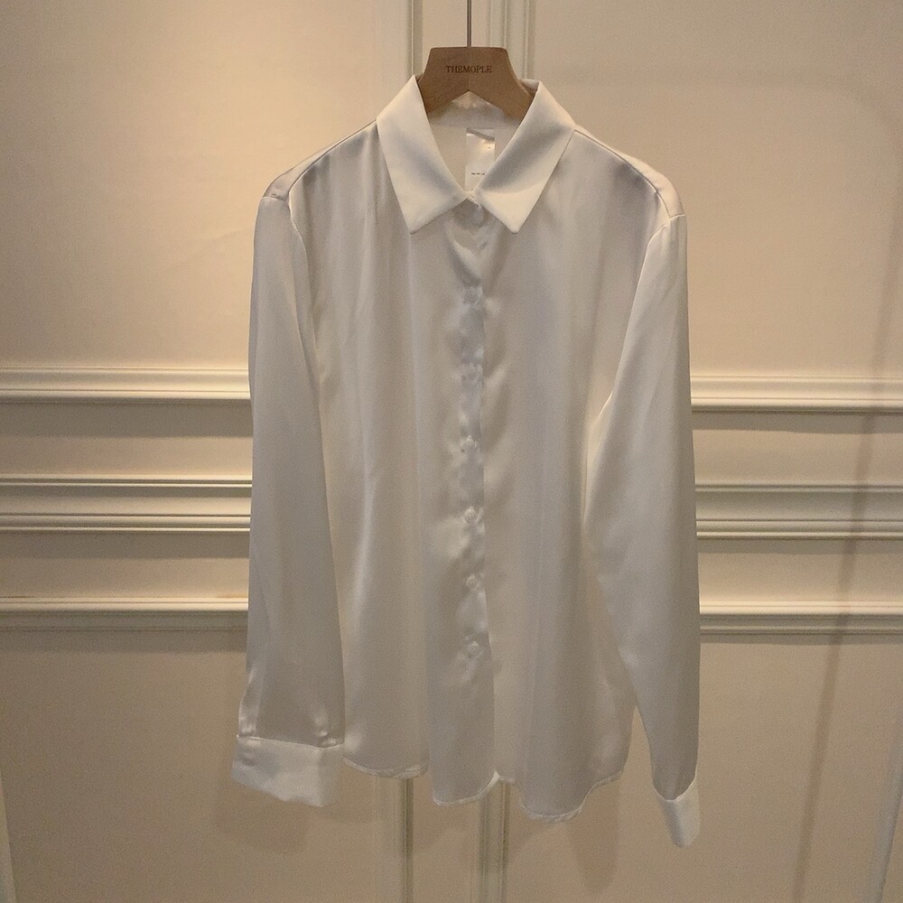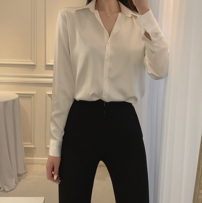 [원가이하 세일*당일출고] 실키 새틴 카라 베이직 루즈핏 긴팔 블라우스