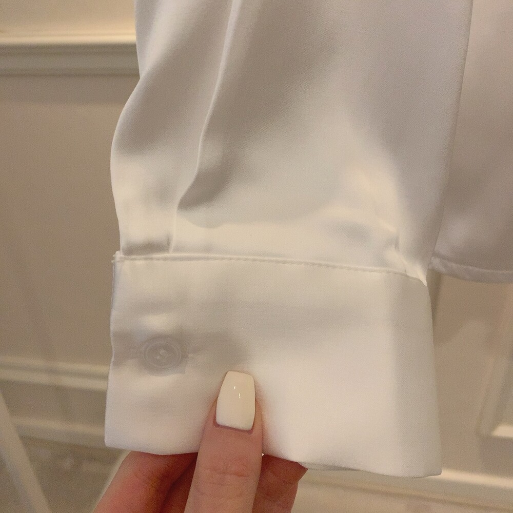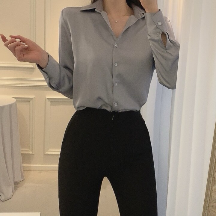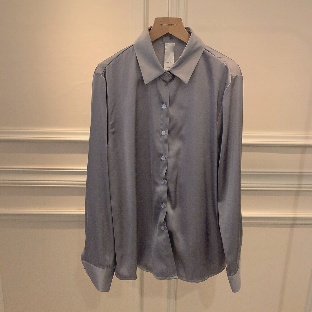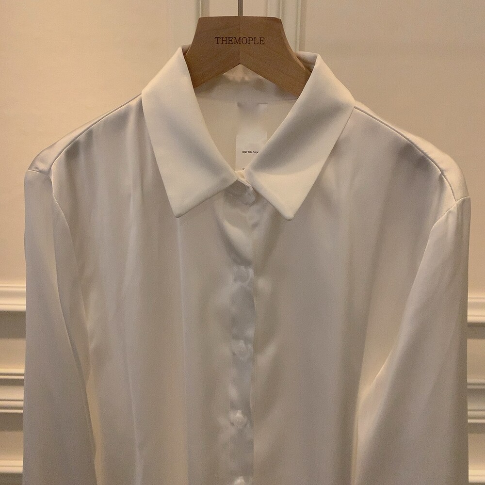 [원가이하 세일*당일출고] 실키 새틴 카라 베이직 루즈핏 긴팔 블라우스