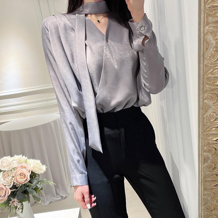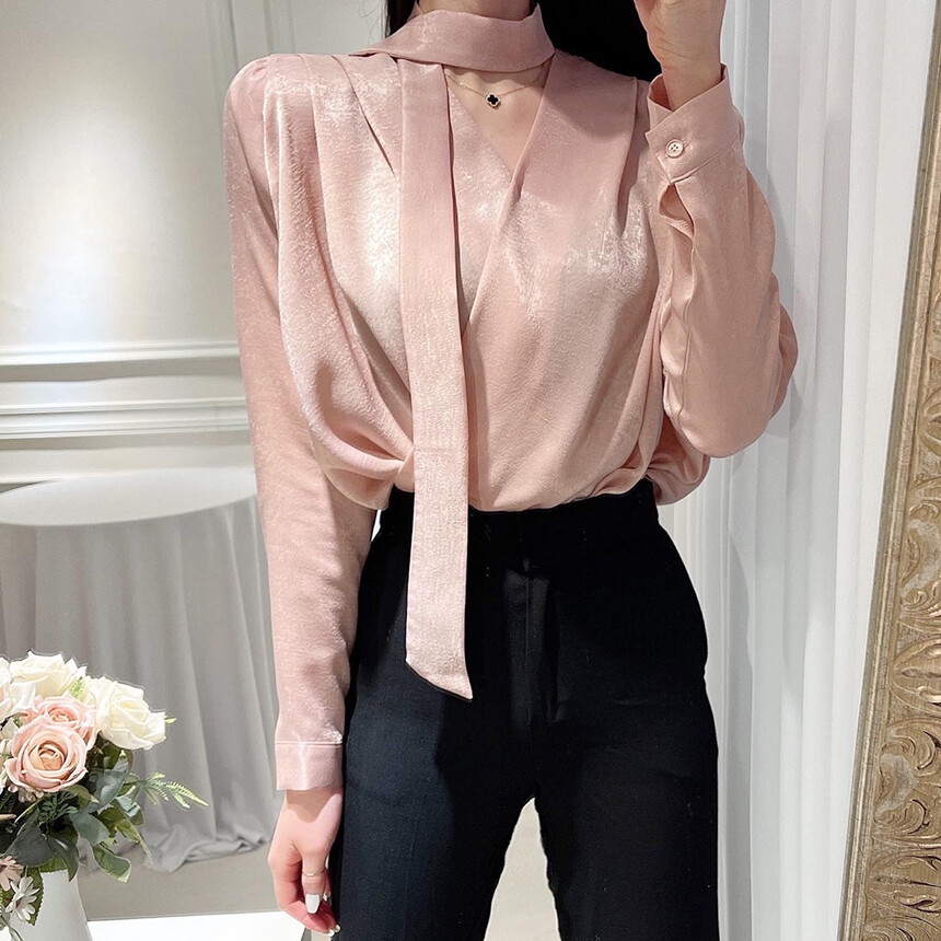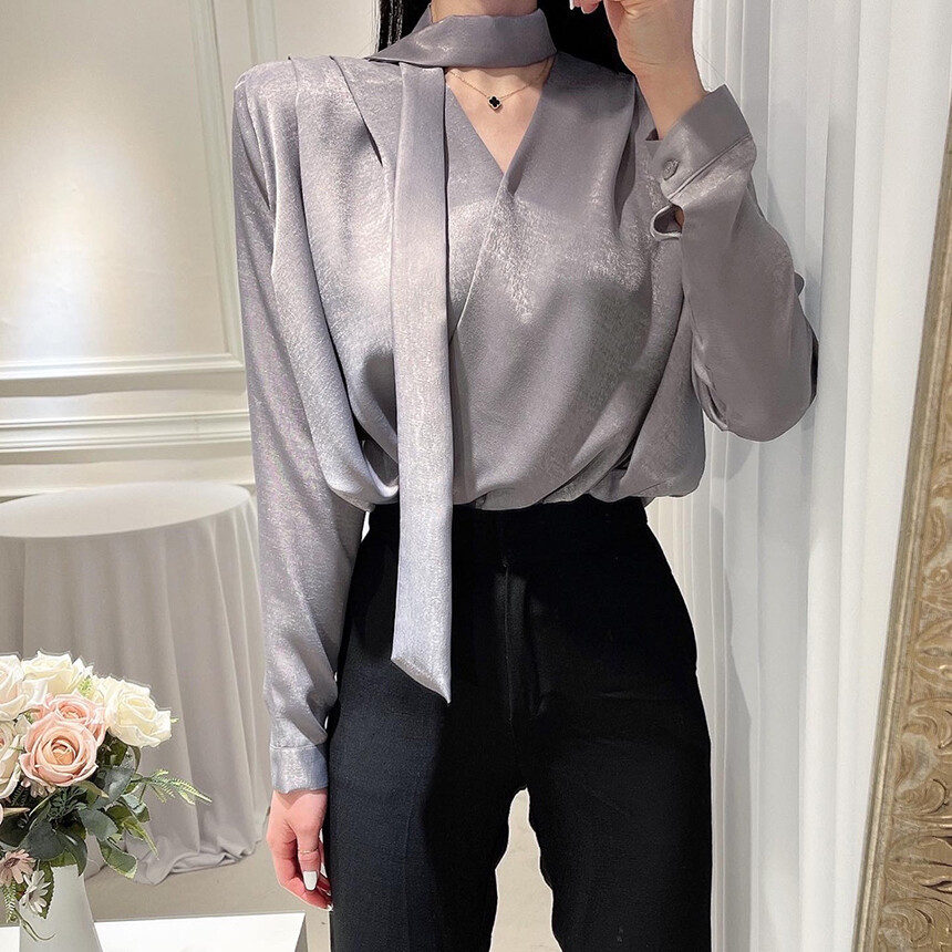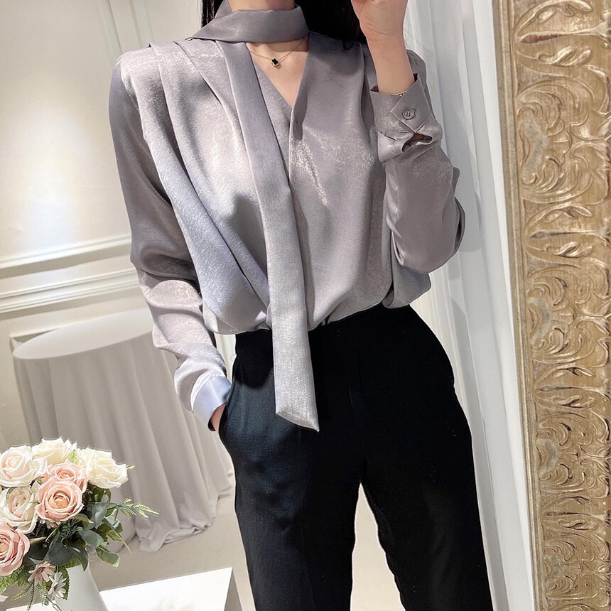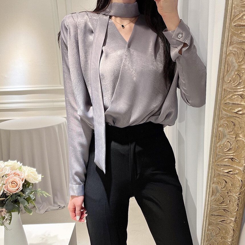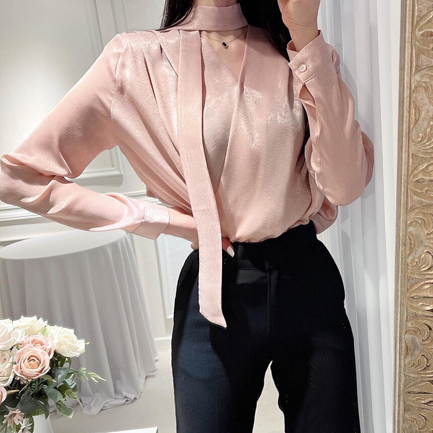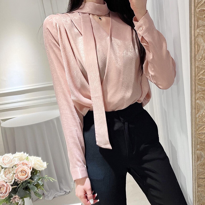 셔링 스카프 타이 새틴 여리여리 블라우스 (하객룩 데이트룩 특별한날)