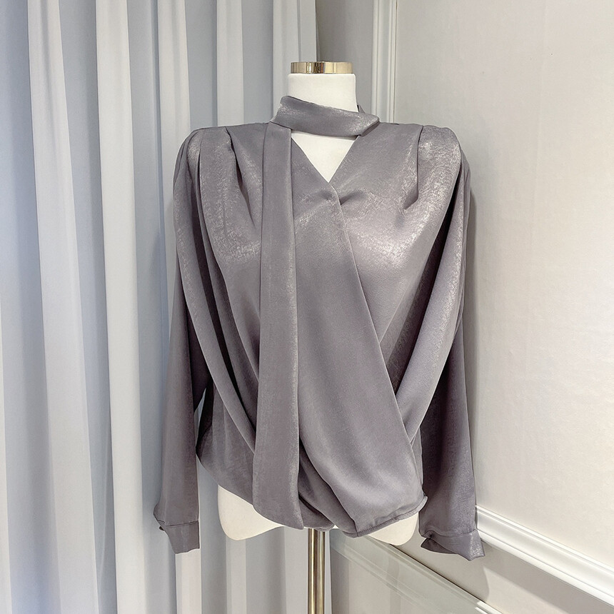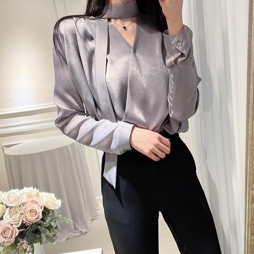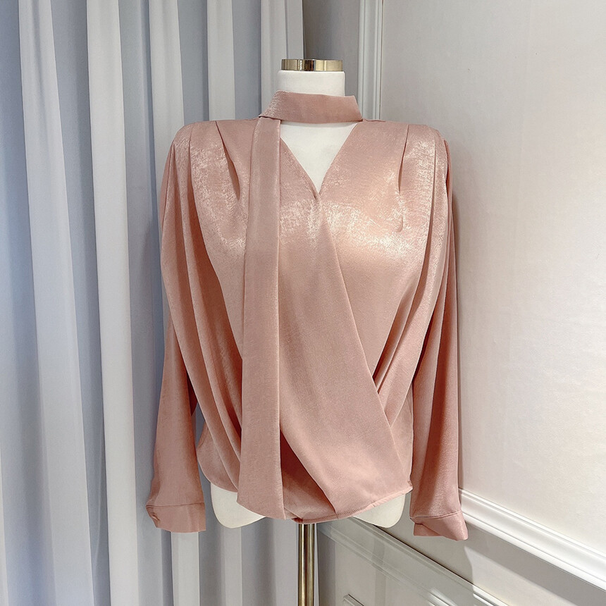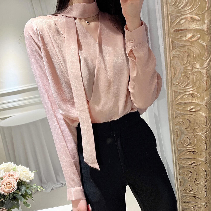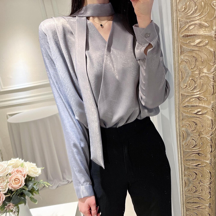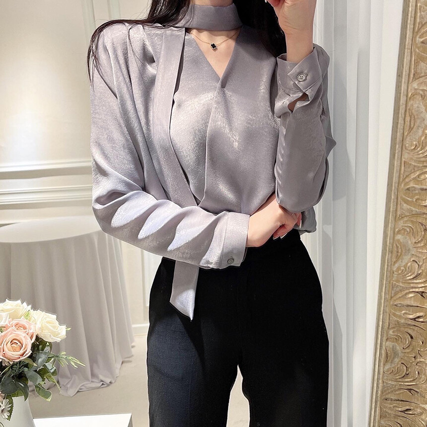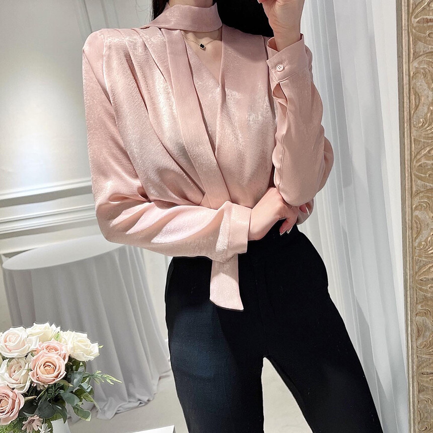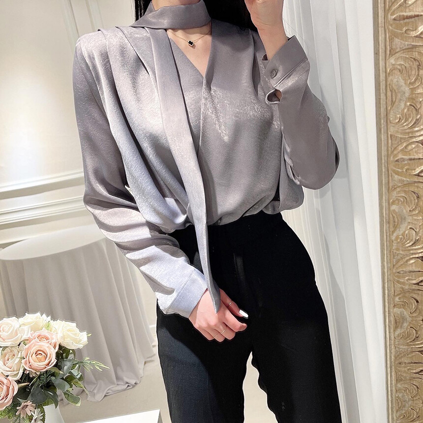 셔링 스카프 타이 새틴 여리여리 블라우스 (하객룩 데이트룩 특별한날)