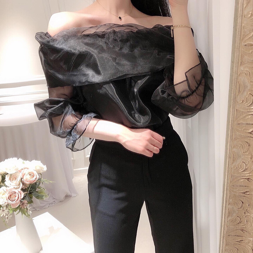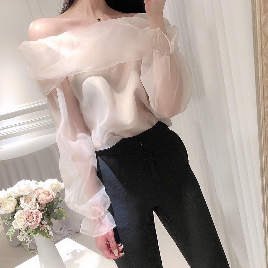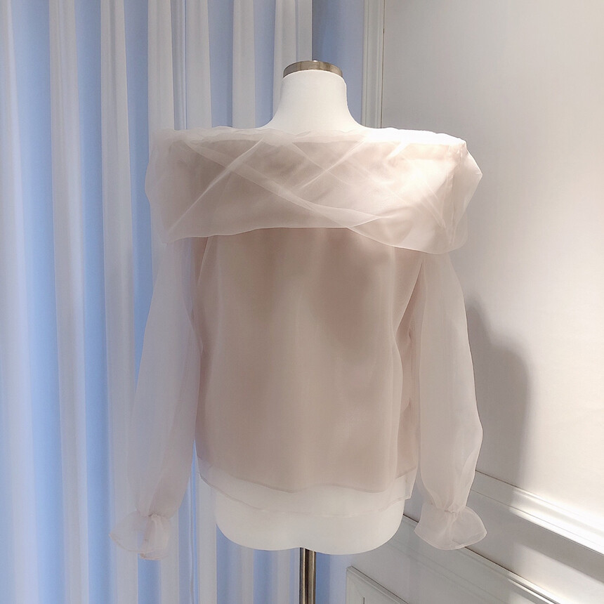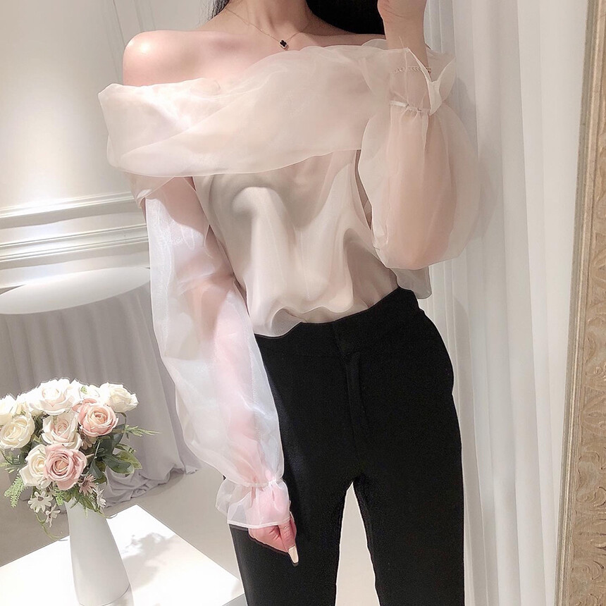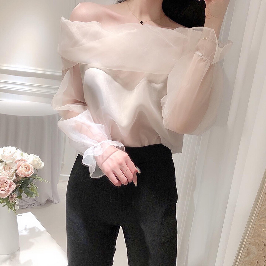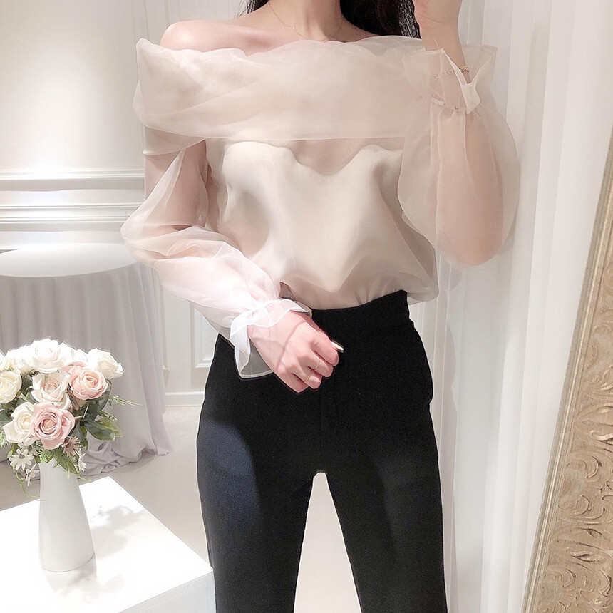 (고퀄리티) 노방 오간자 시스루 오프숄더 블라우스