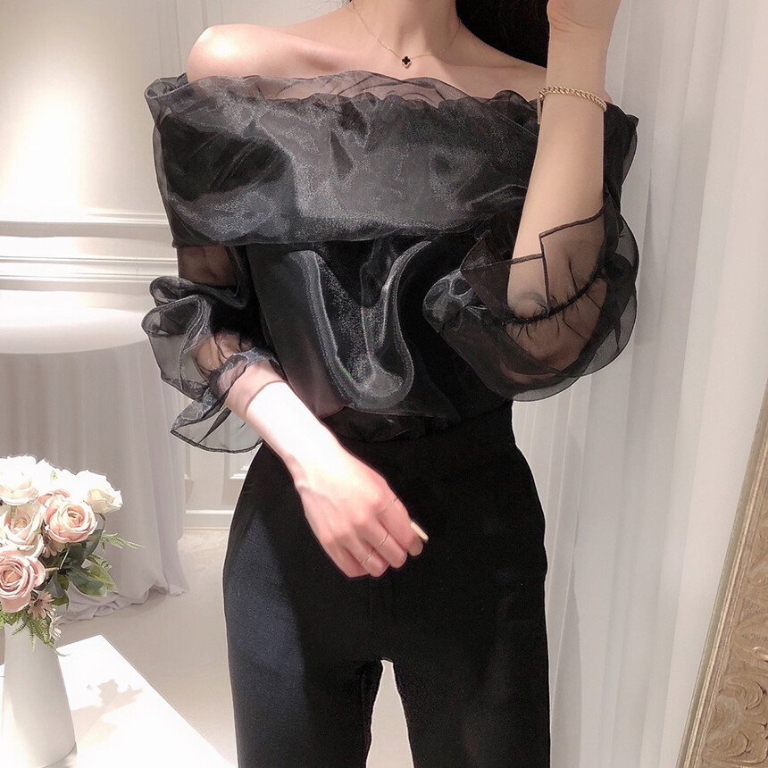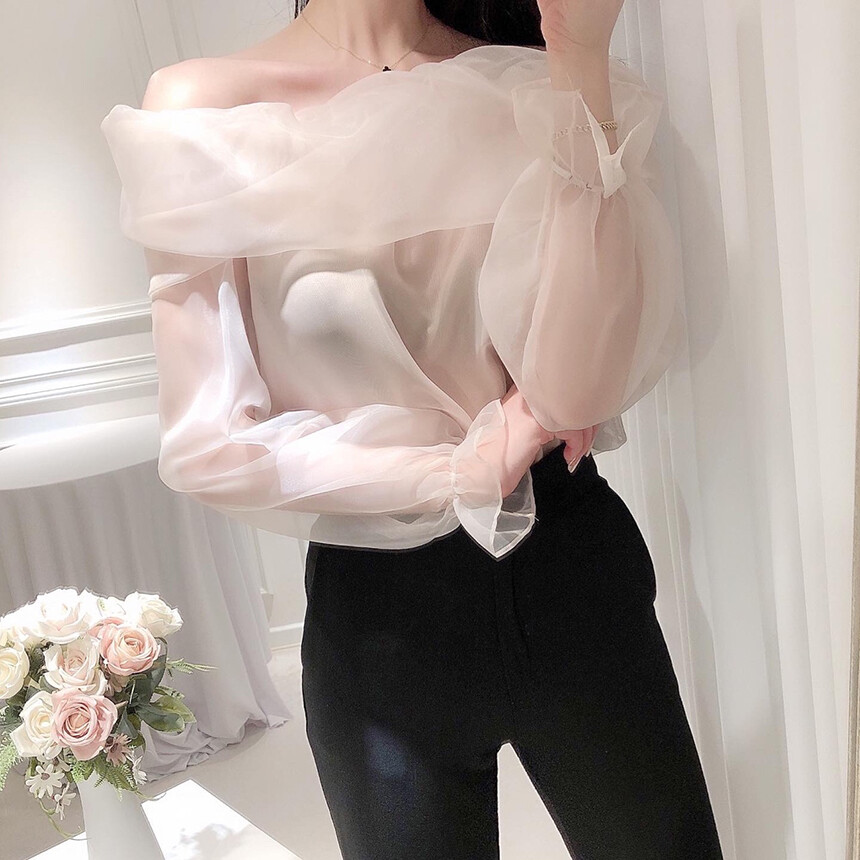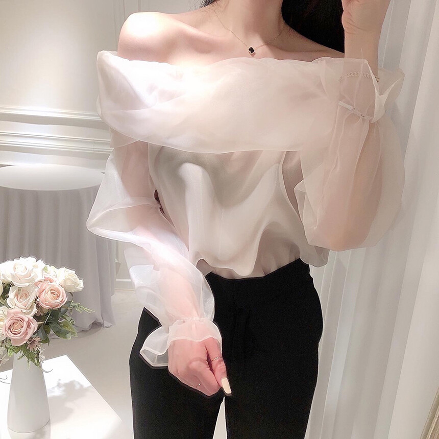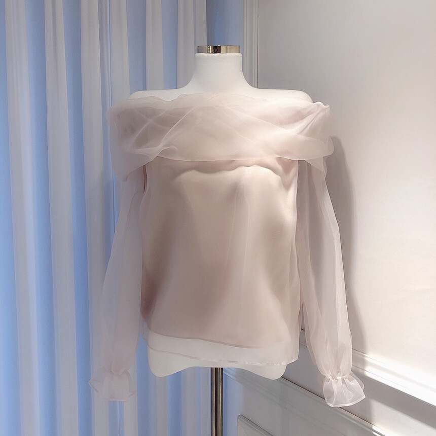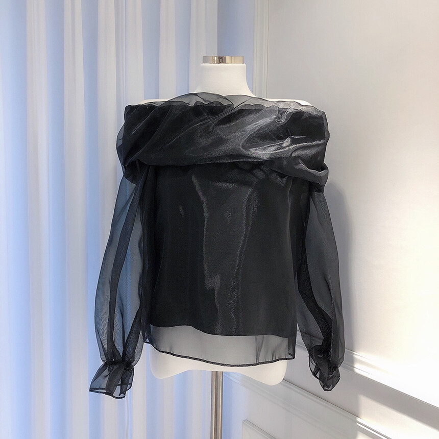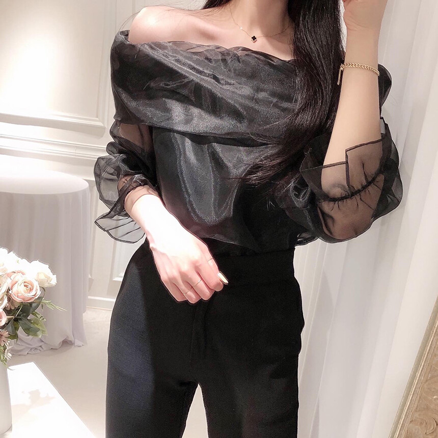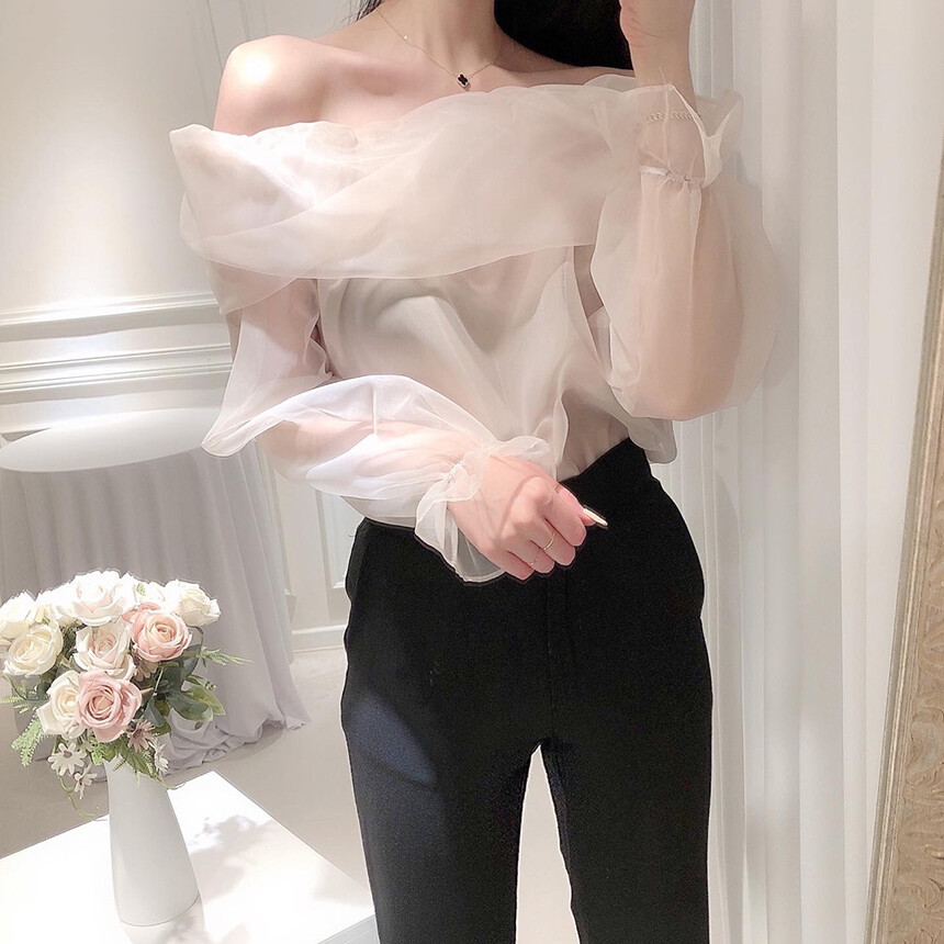 (고퀄리티) 노방 오간자 시스루 오프숄더 블라우스
