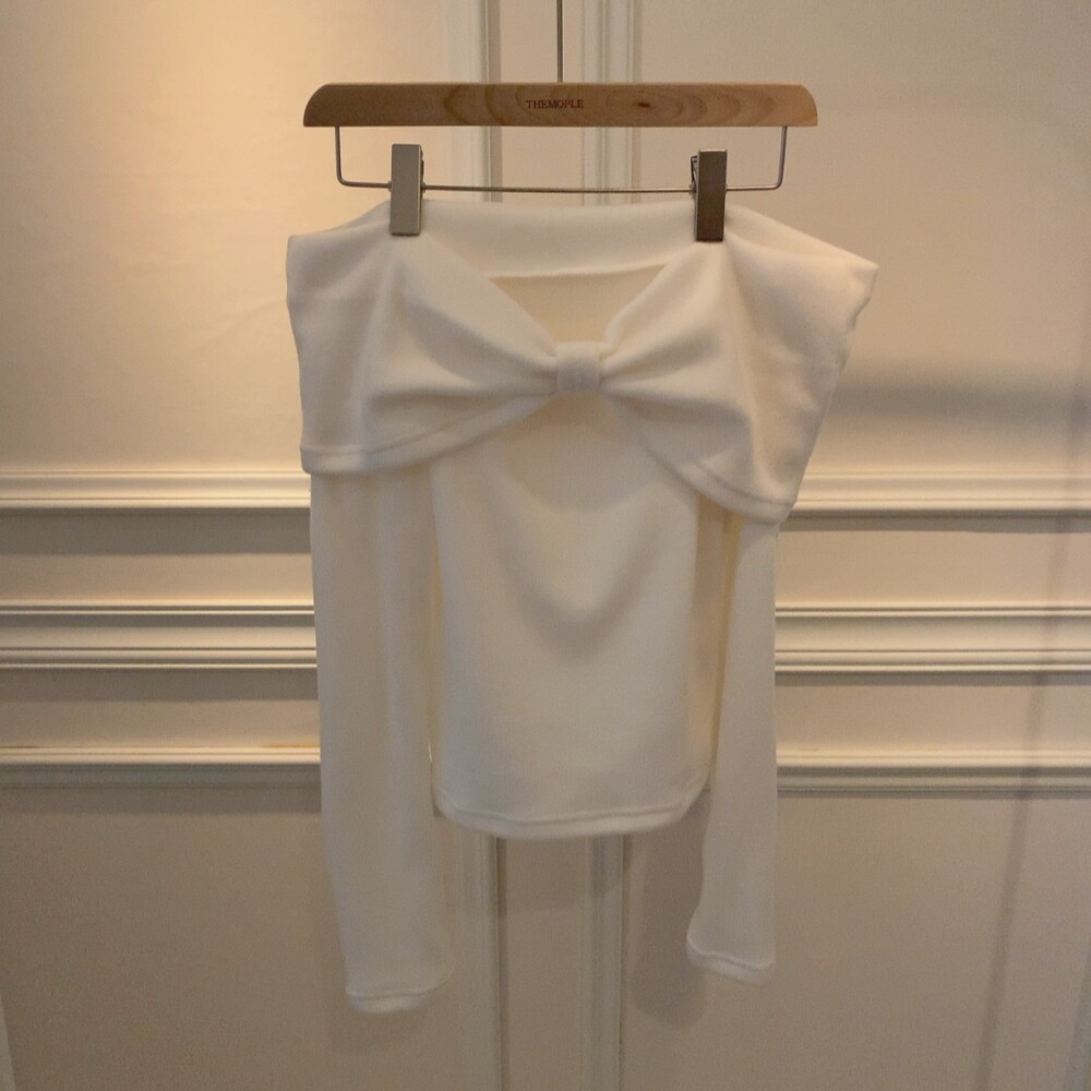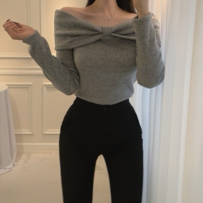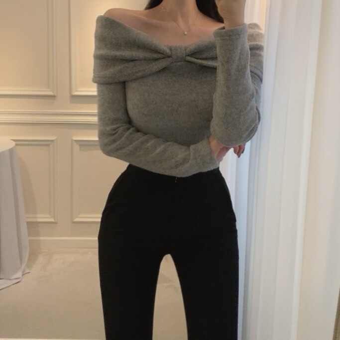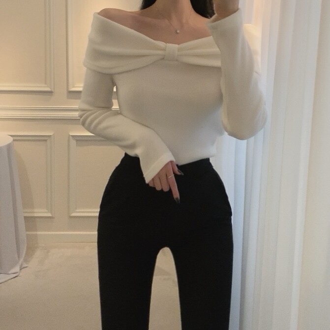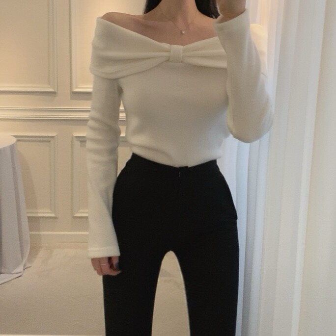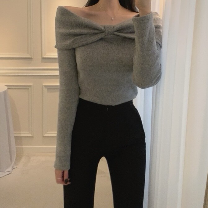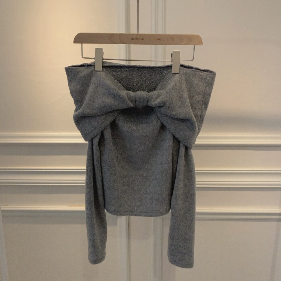 리본 오프숄더 투웨이 기모 니트 블라우스 (연말룩 데이트룩 파티룩)