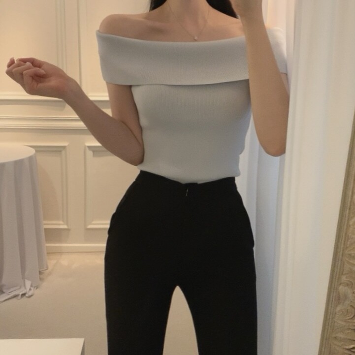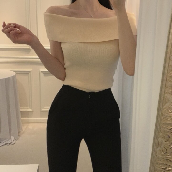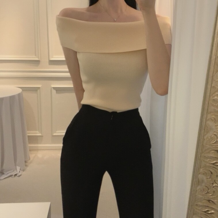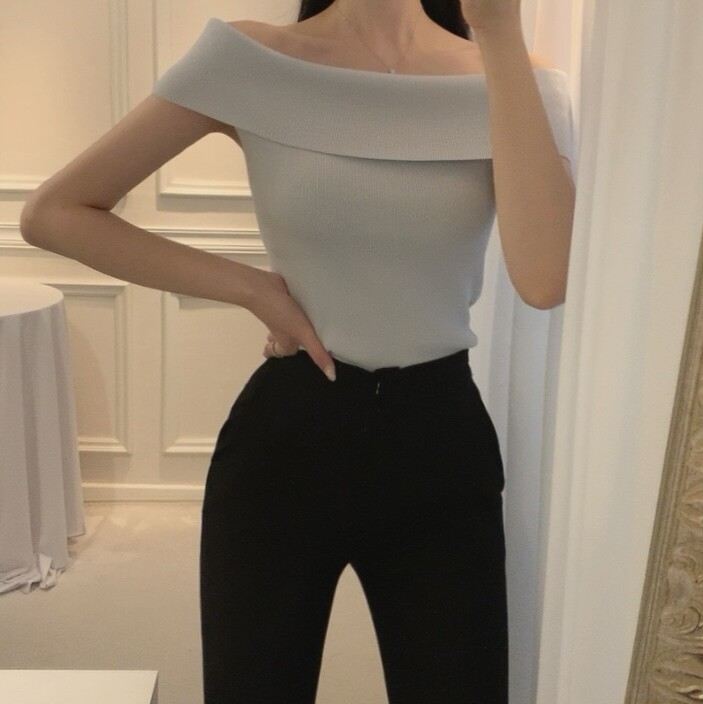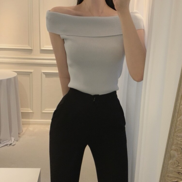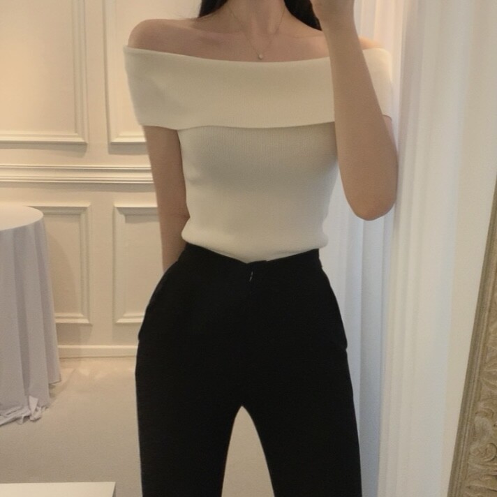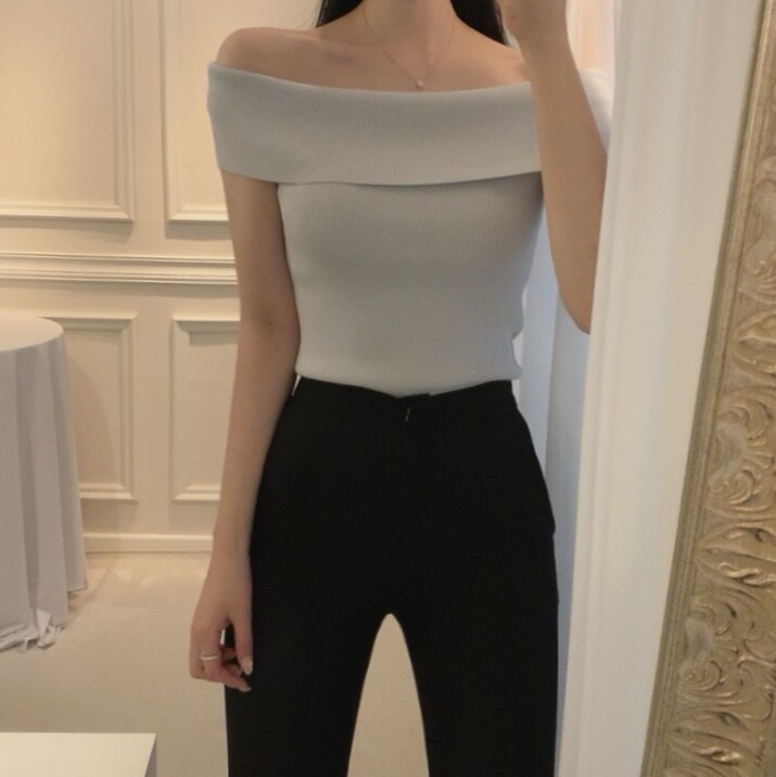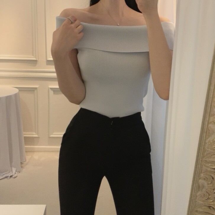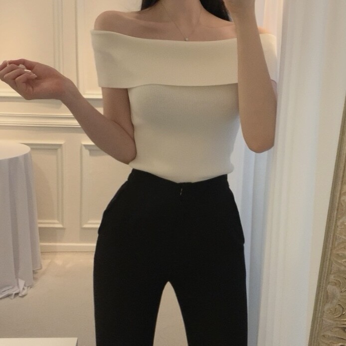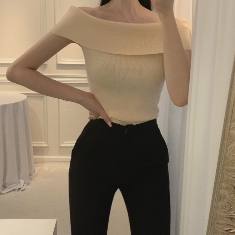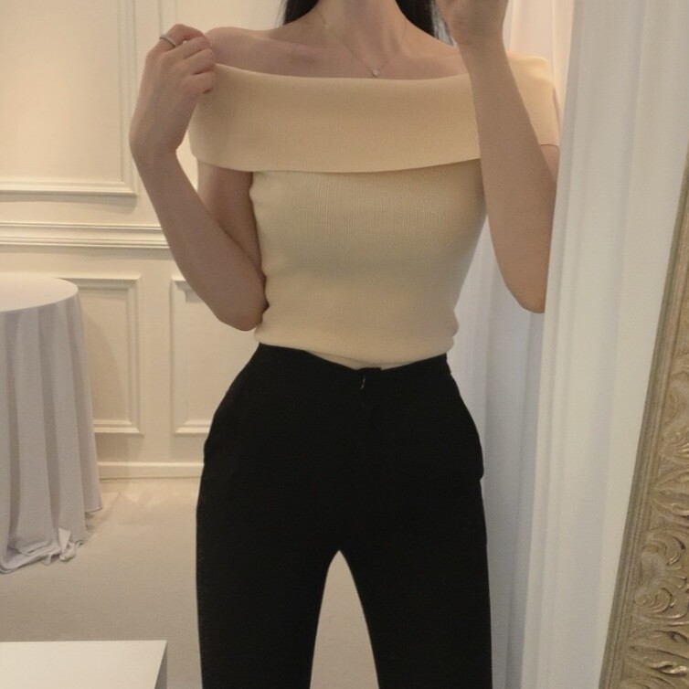 오프숄더 입술넥 보트넥 여리여리 슬림 여름 니트