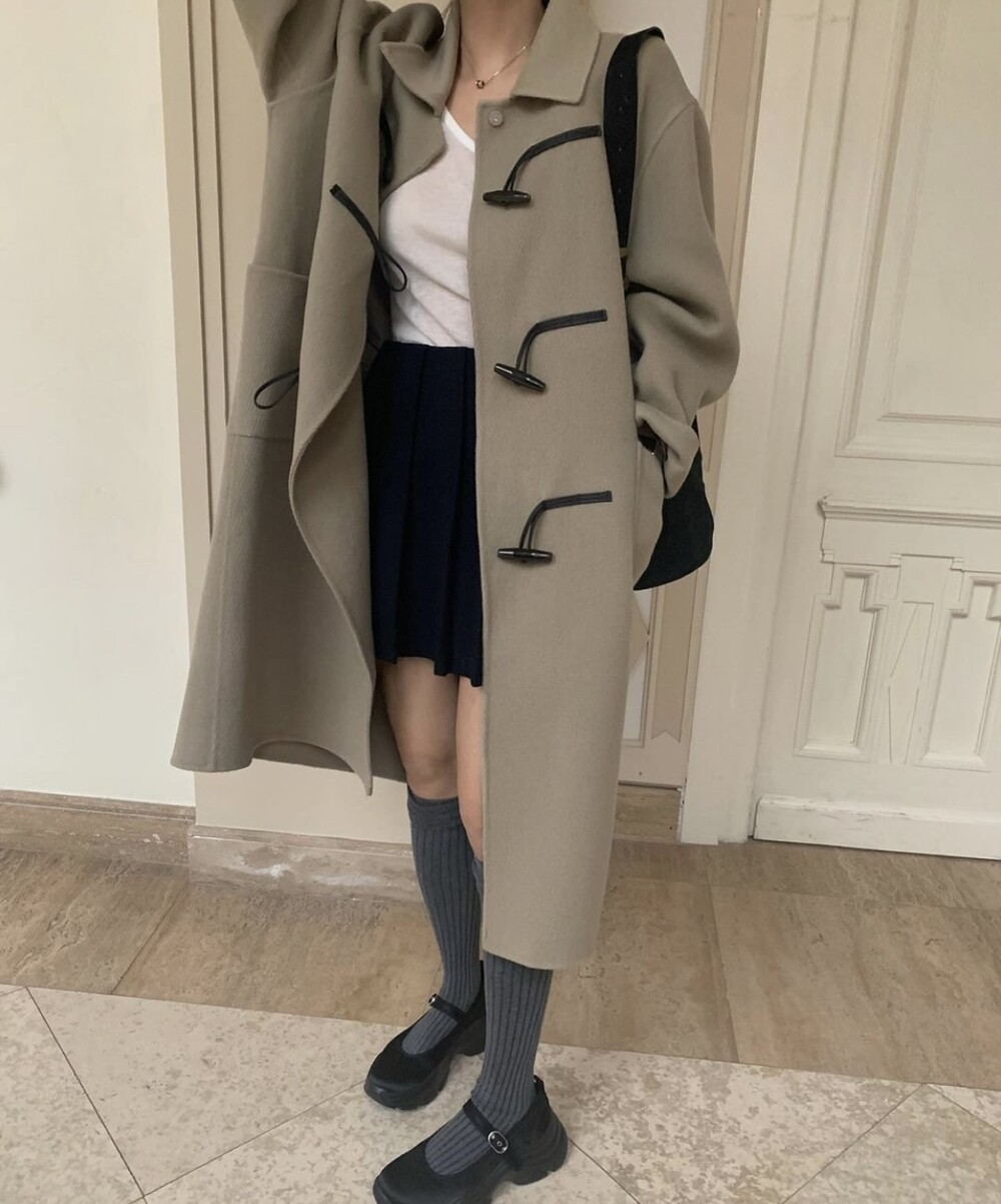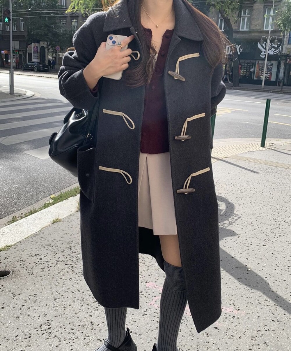 (소라 당일출고) 토글 떡볶이 단추 울 핸드메이드 롱 코트