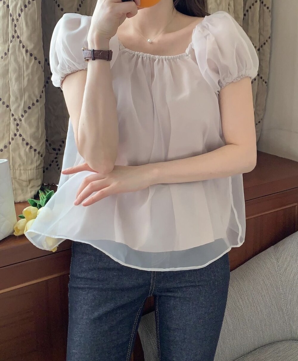 러블리한 퍼프 셔링 소매로 미운 팔뚝살도 쏙 감춰주며