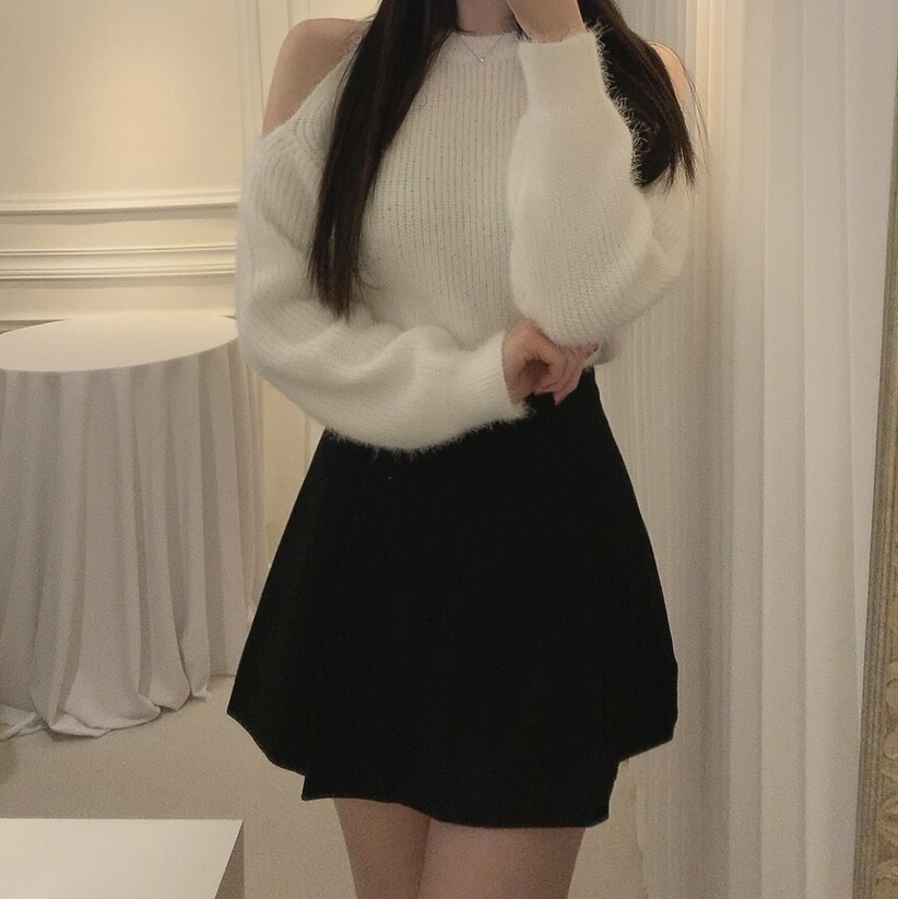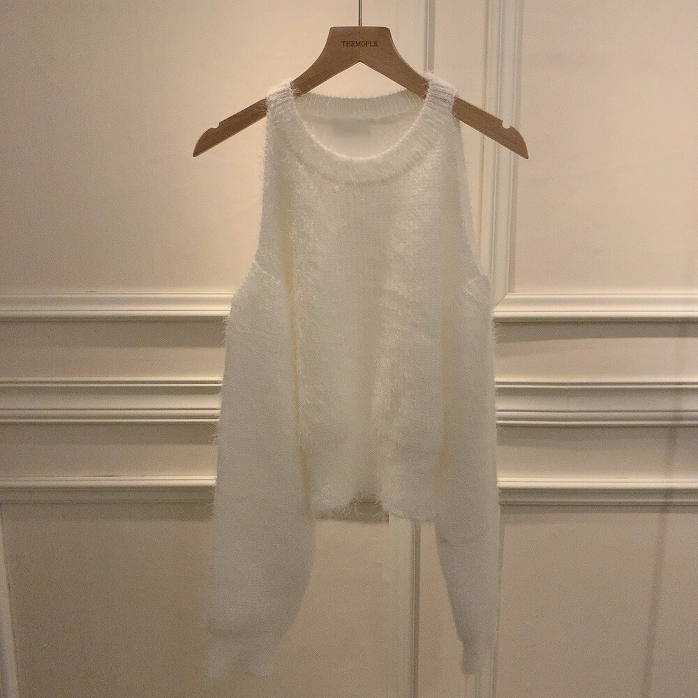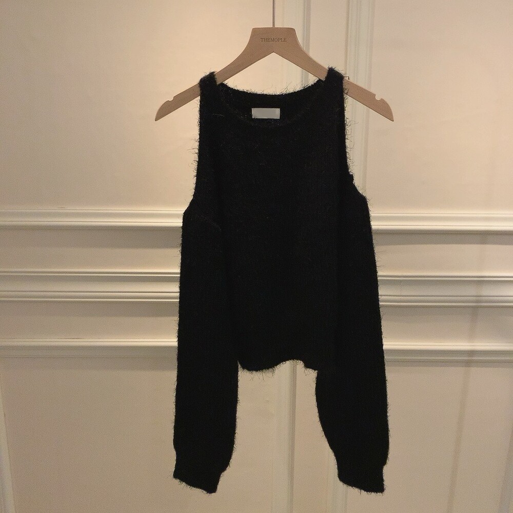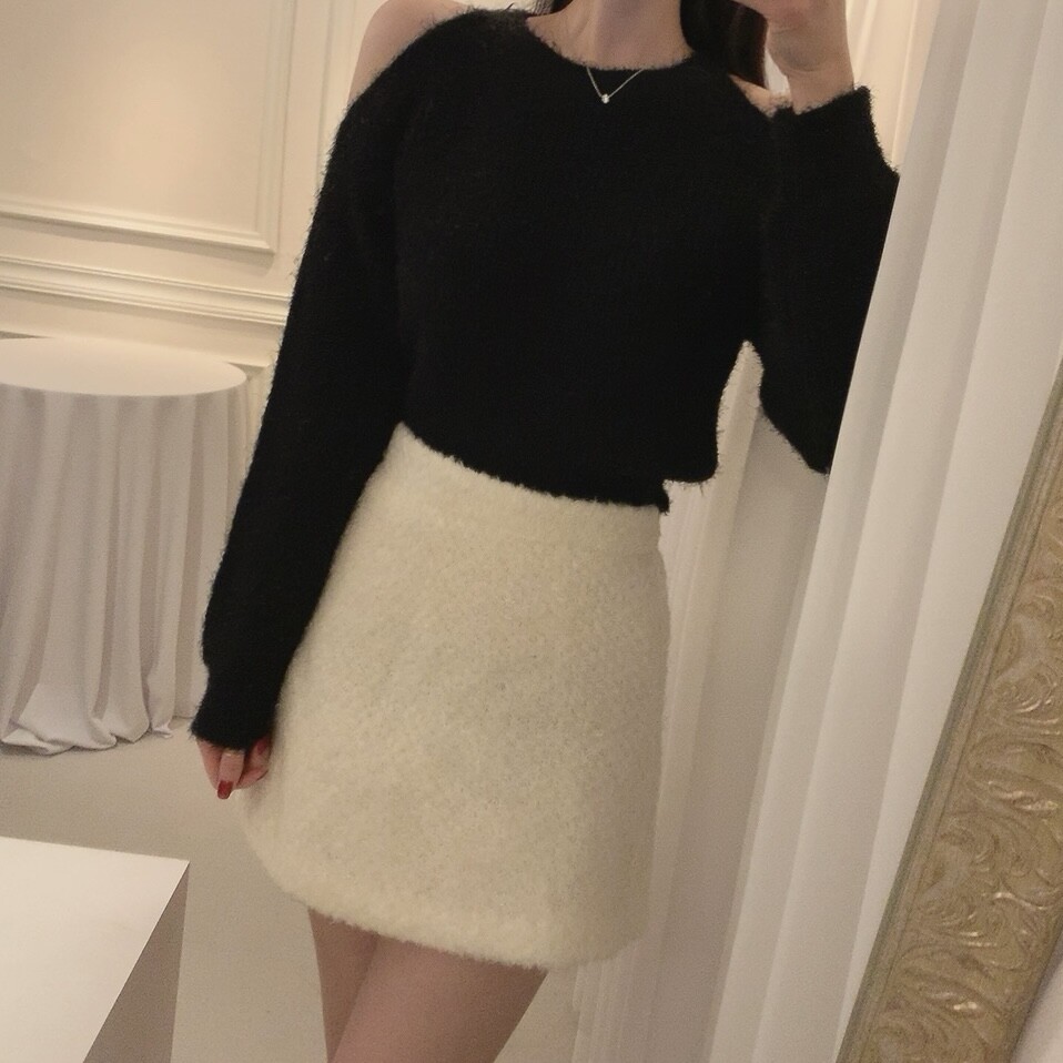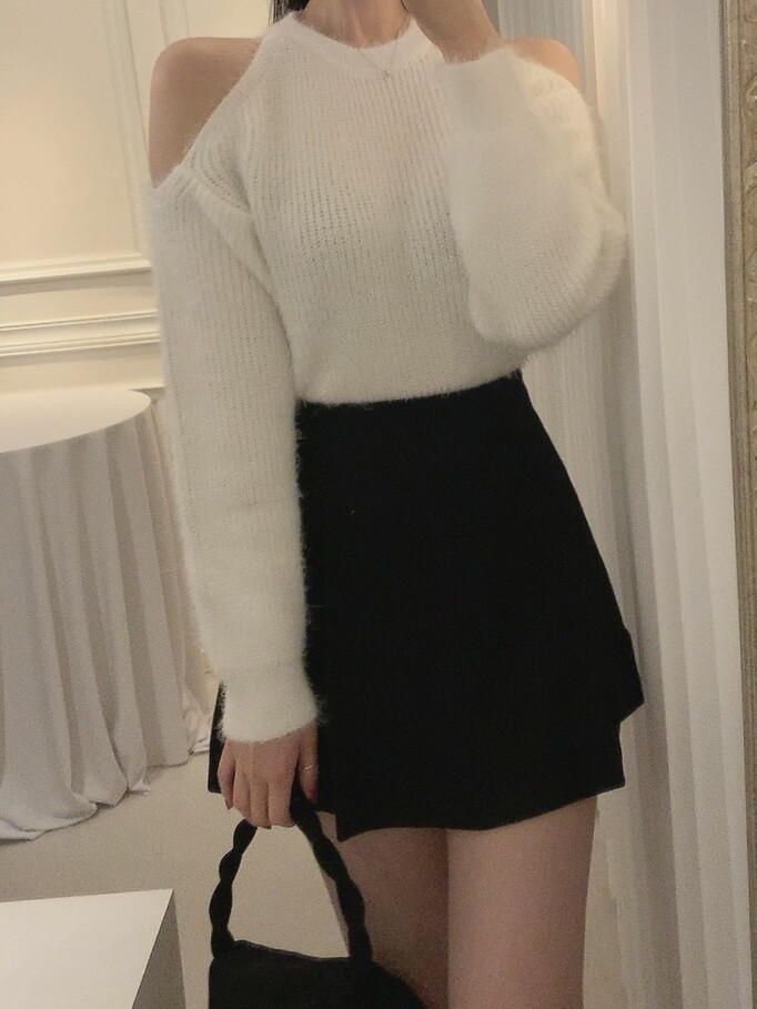 앙고라 오프숄더 어깨 트임 여리여리핏 털 니트 (데이트룩 연말룩 파티룩)