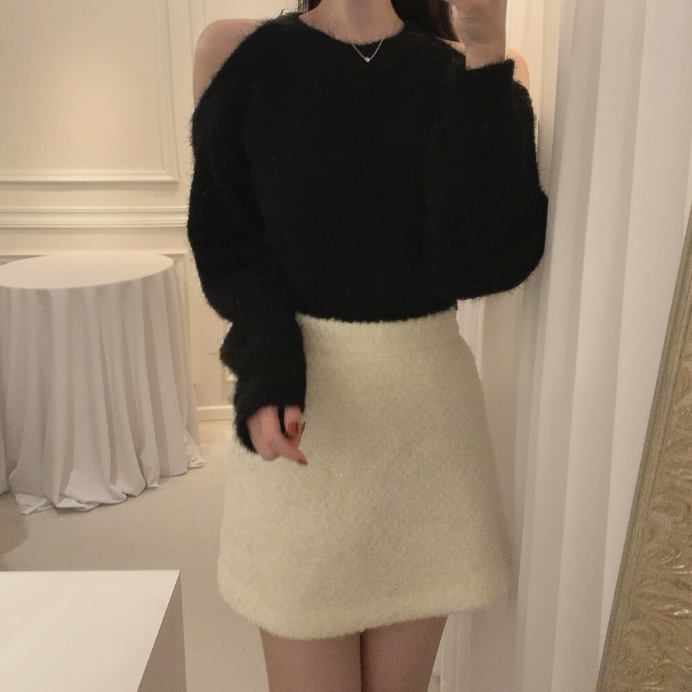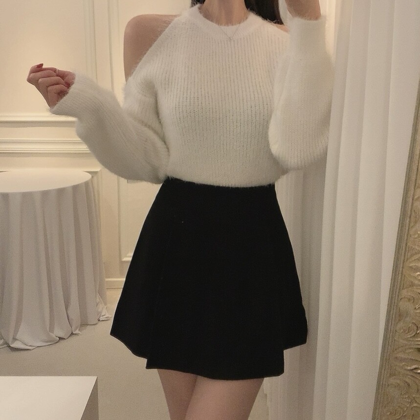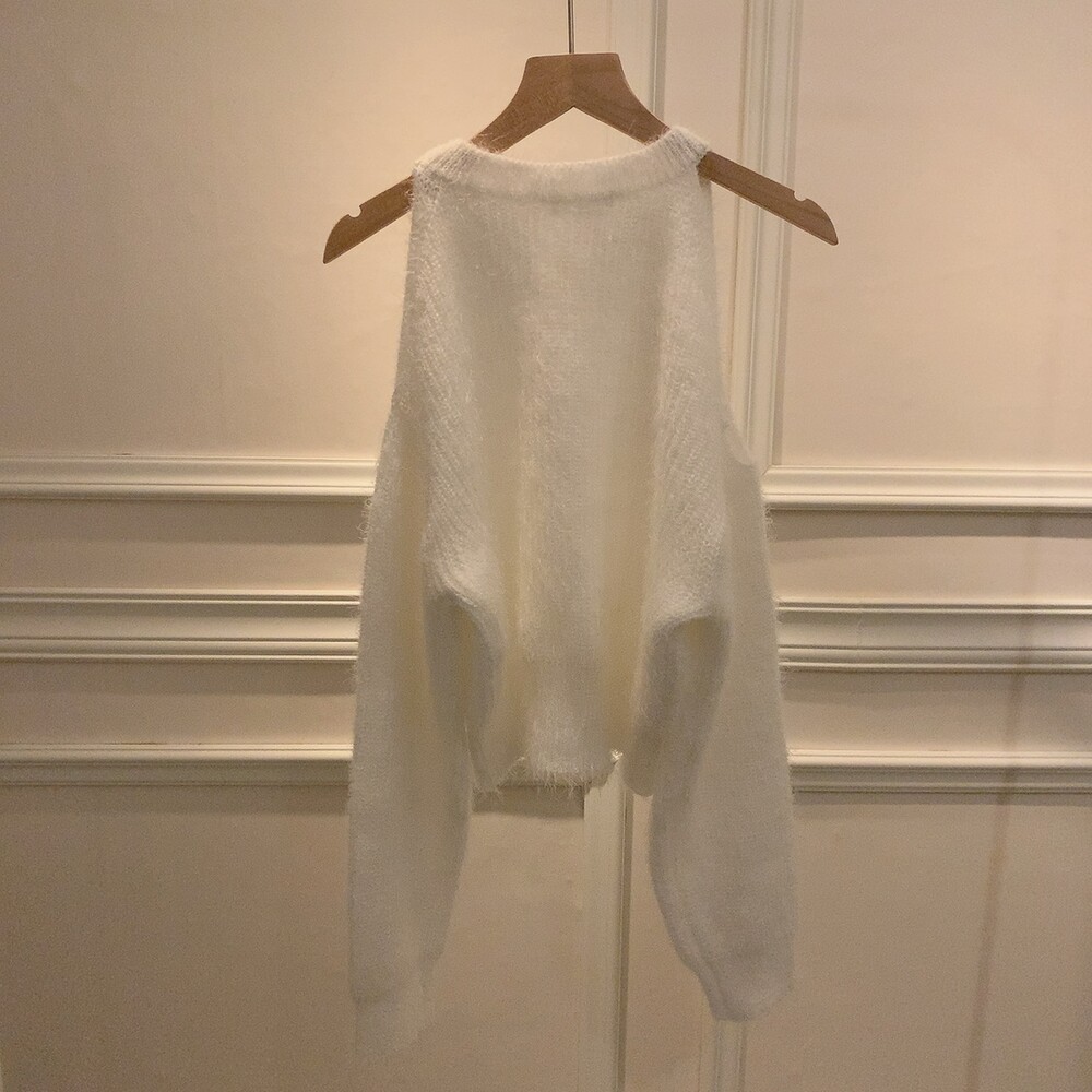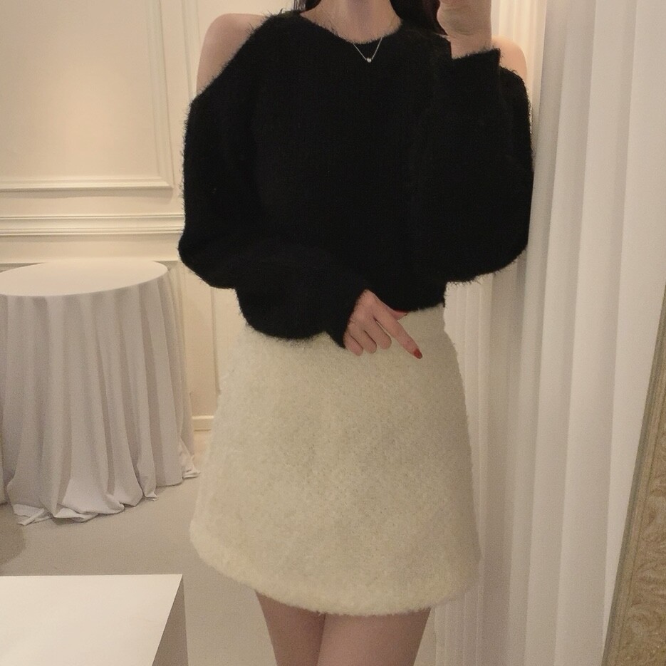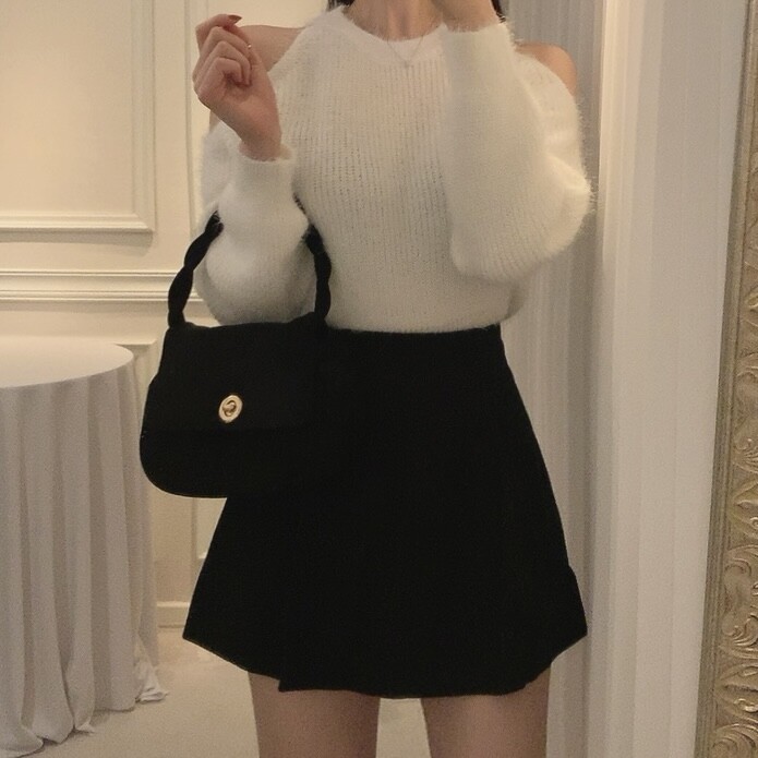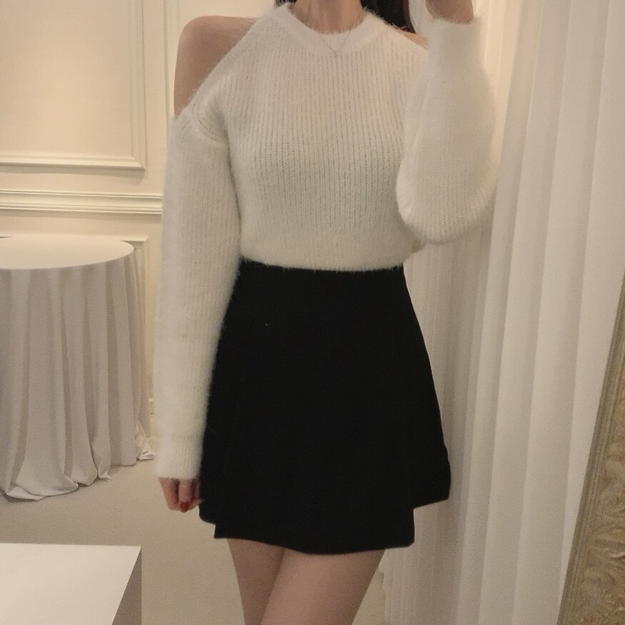 앙고라 오프숄더 어깨 트임 여리여리핏 털 니트 (데이트룩 연말룩 파티룩)