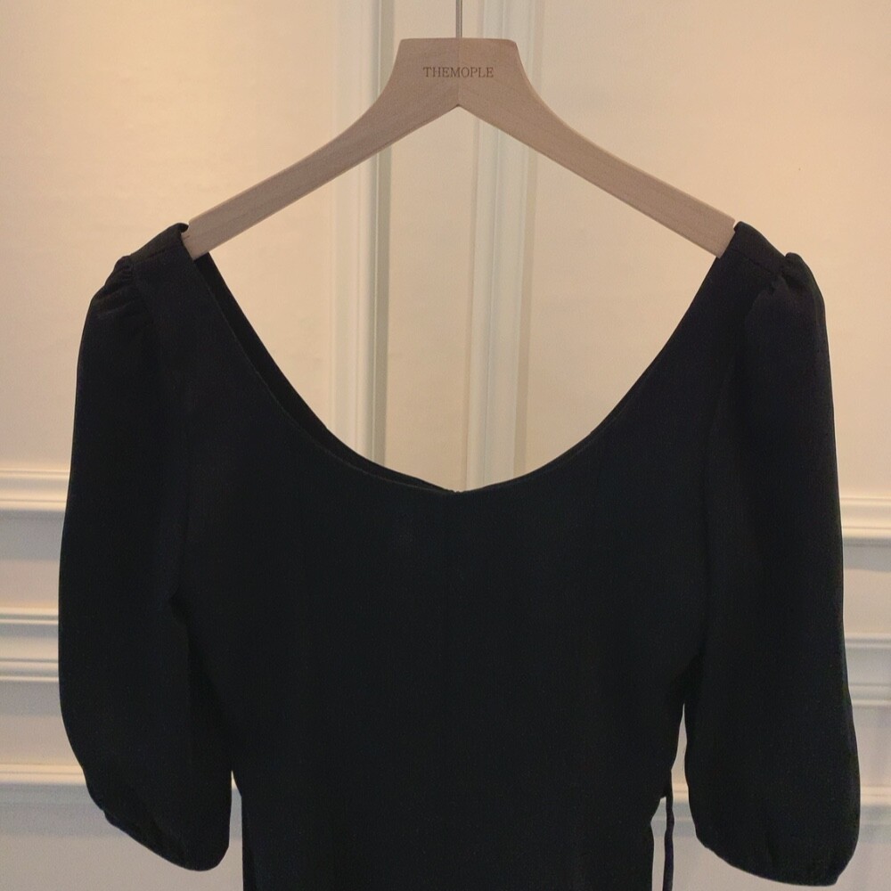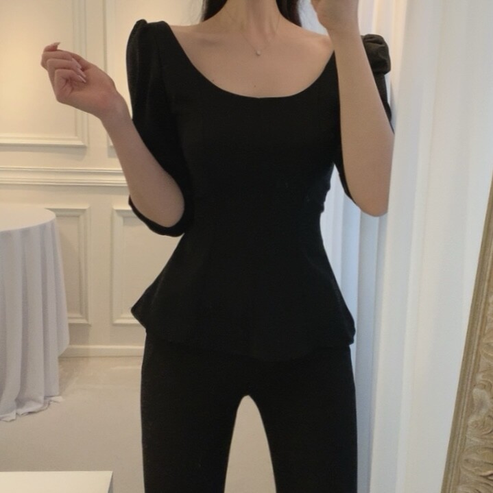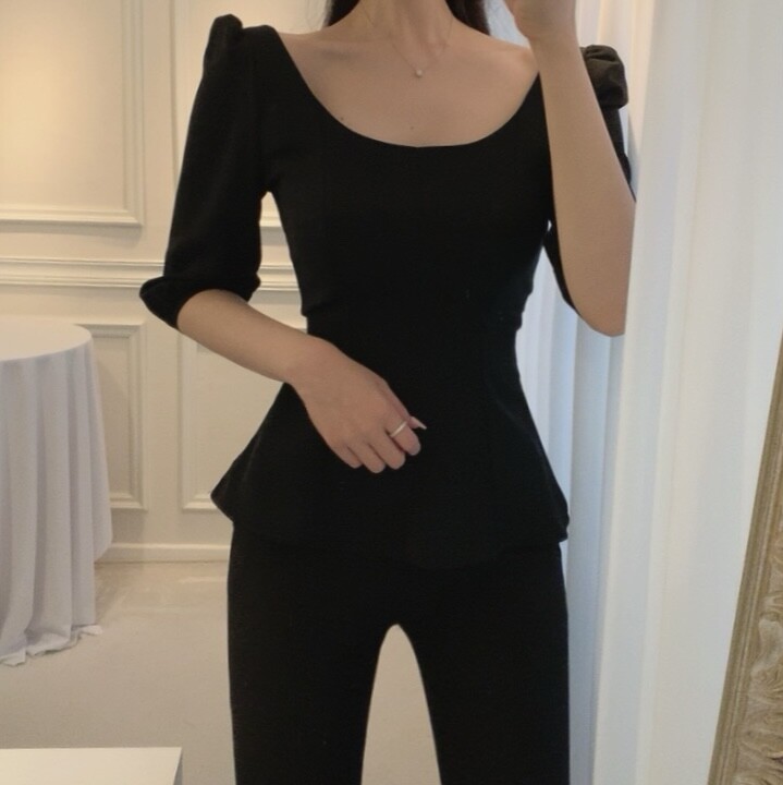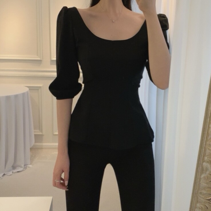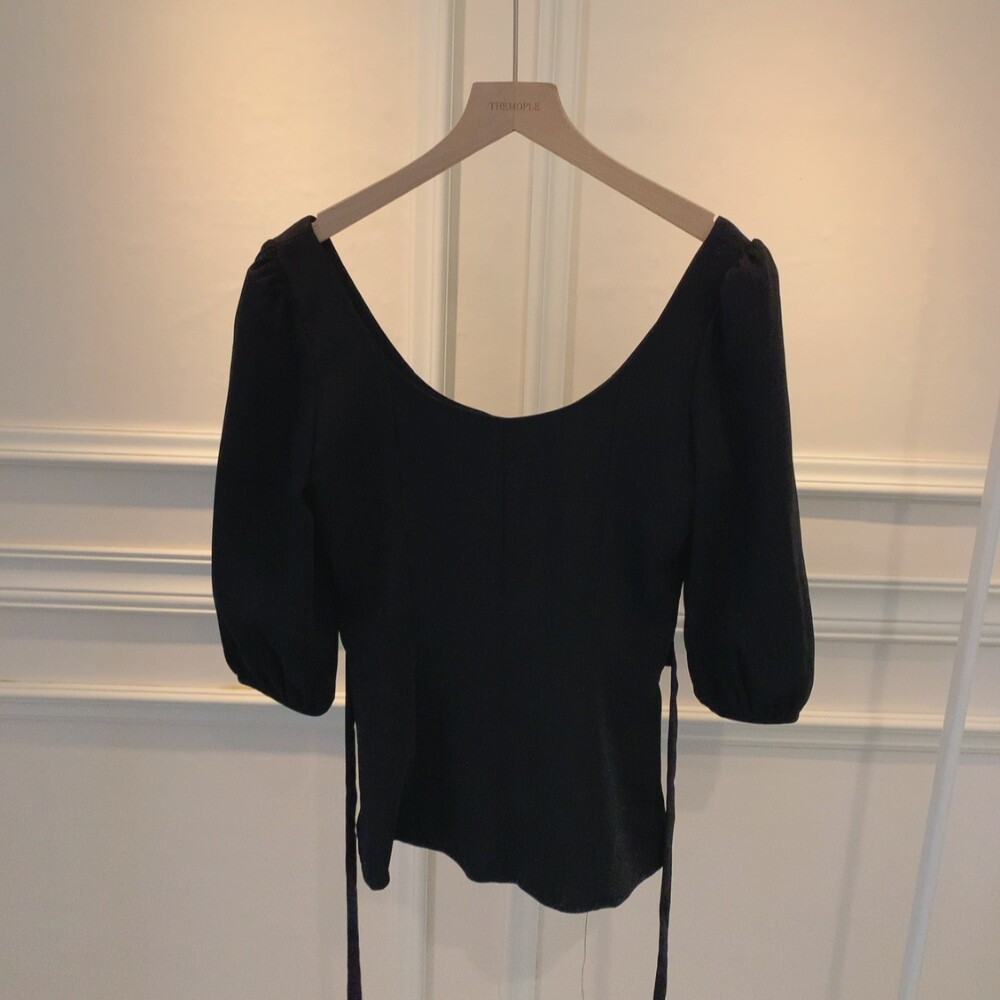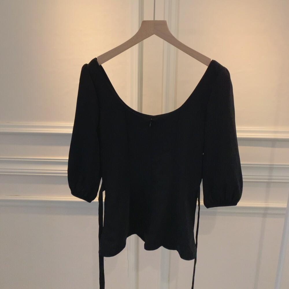 유넥 훌 플레어핏 7부 퍼프 소매 허리끈 블라우스 (하객룩 결혼식 모임룩)
