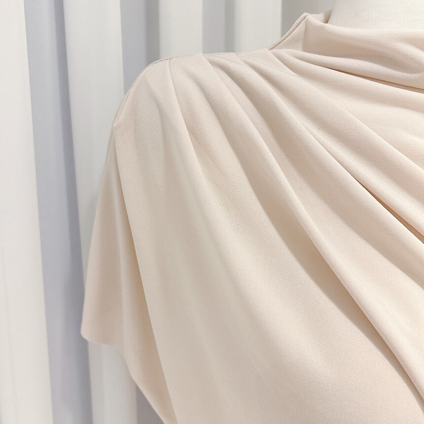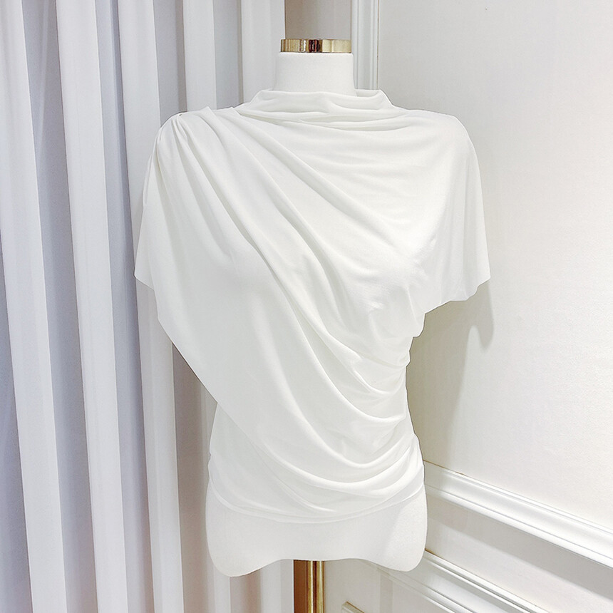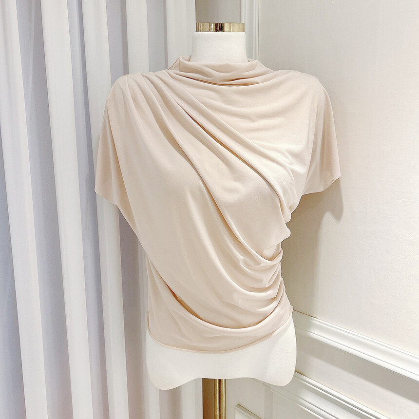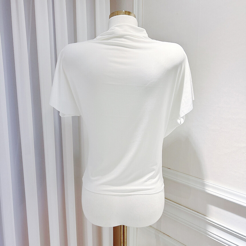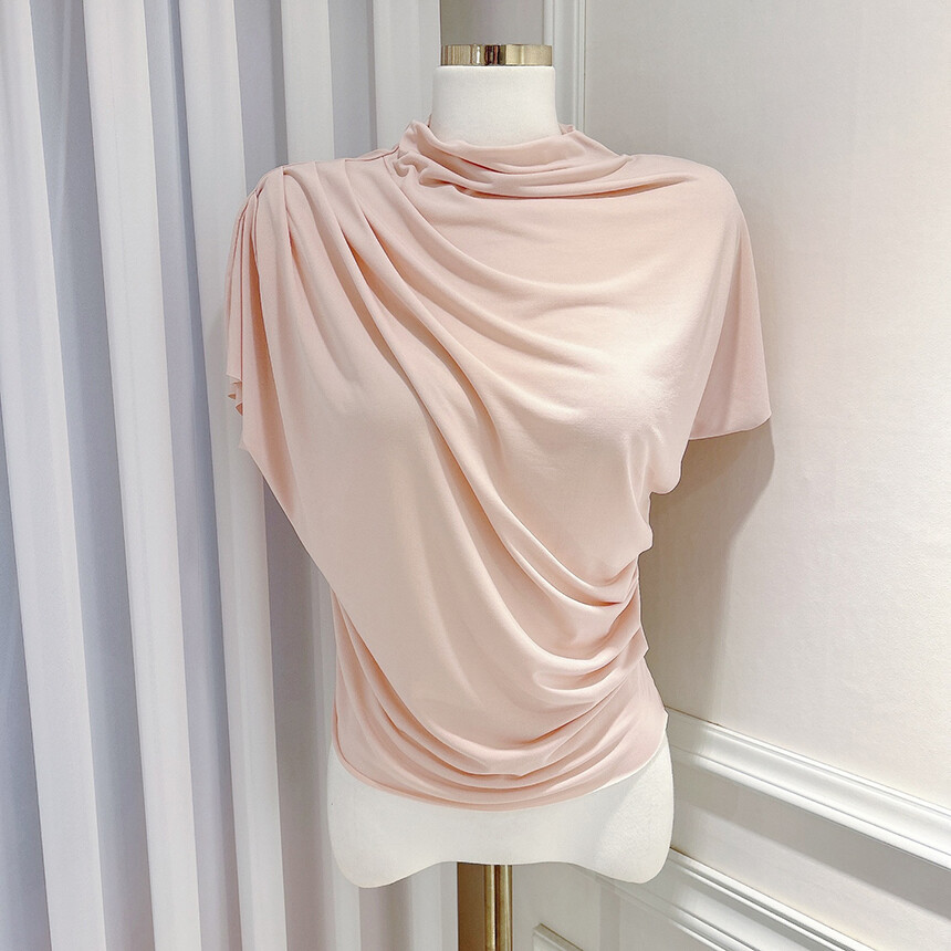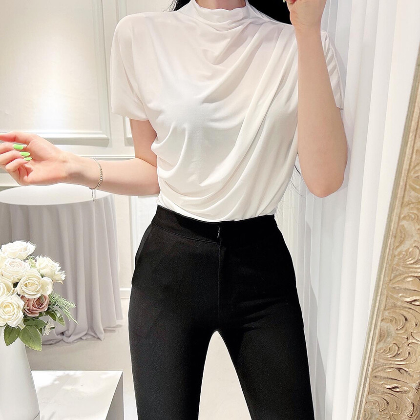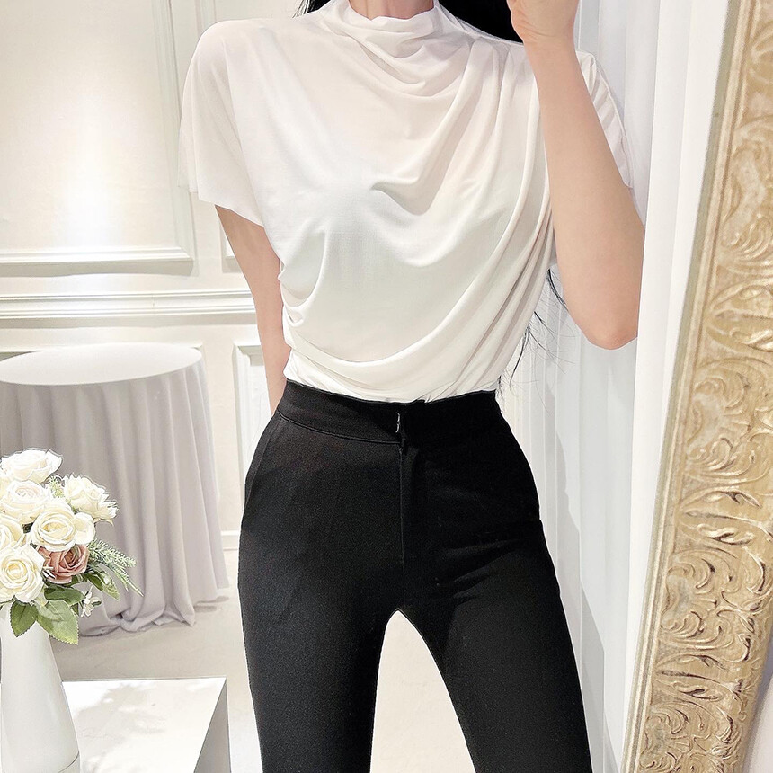 반팔 반목 셔링 드레이프 주름 쿨링 블라우스 티셔츠