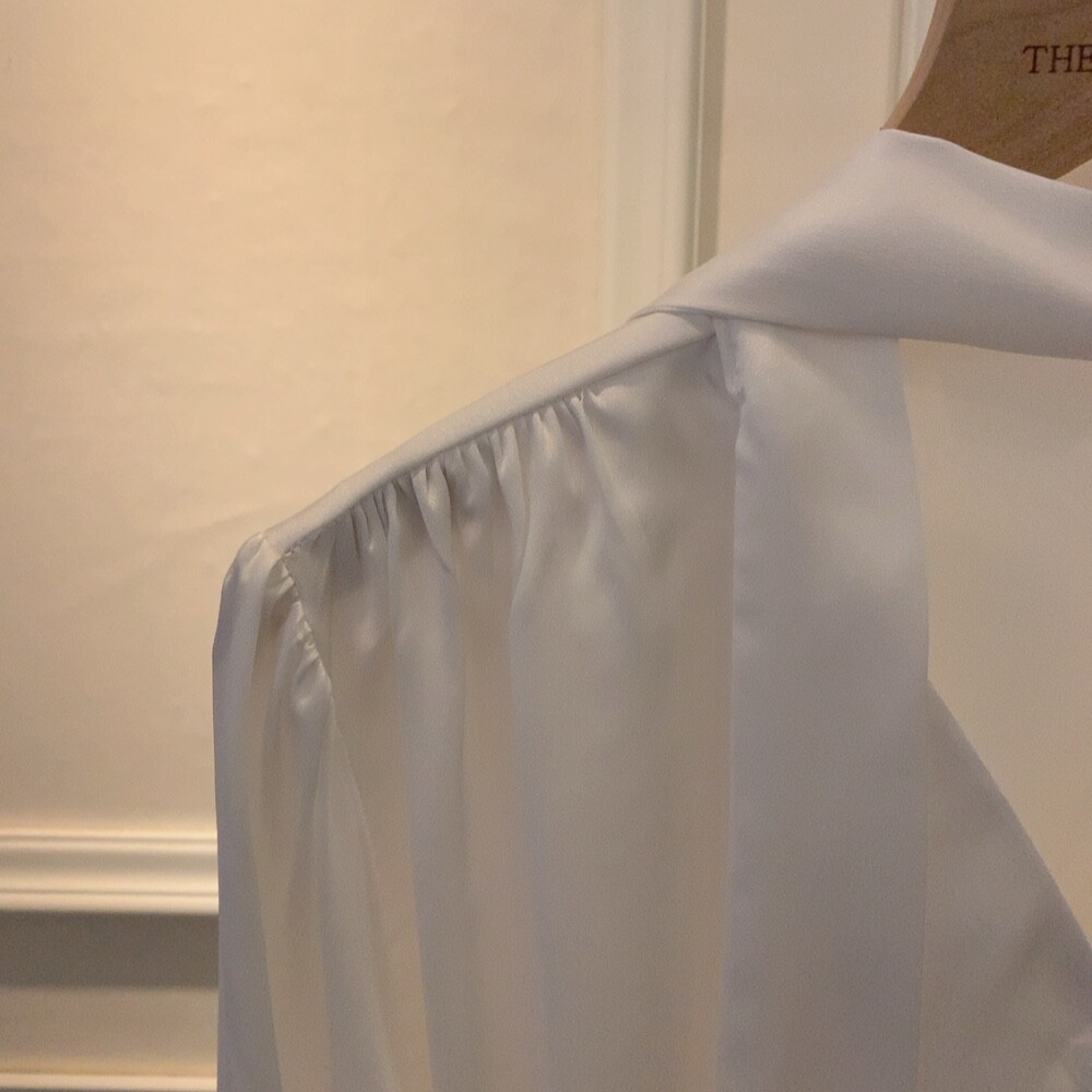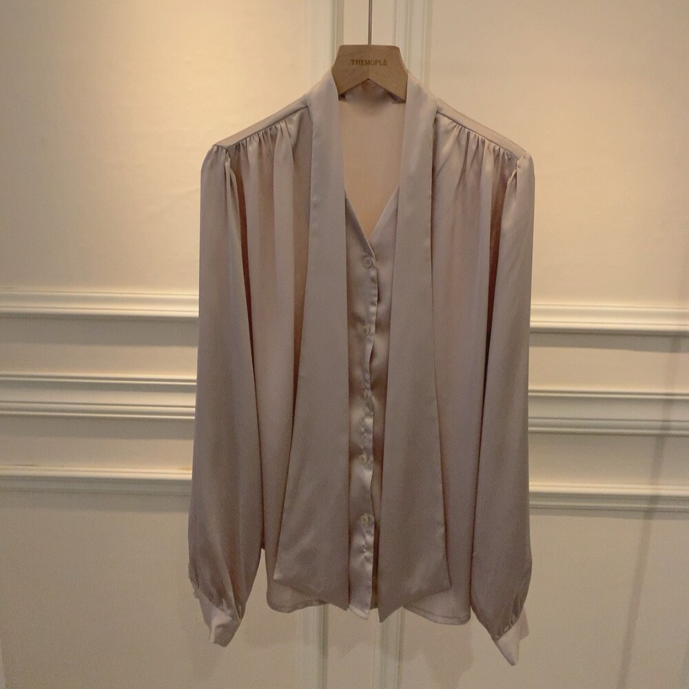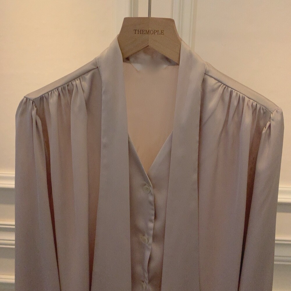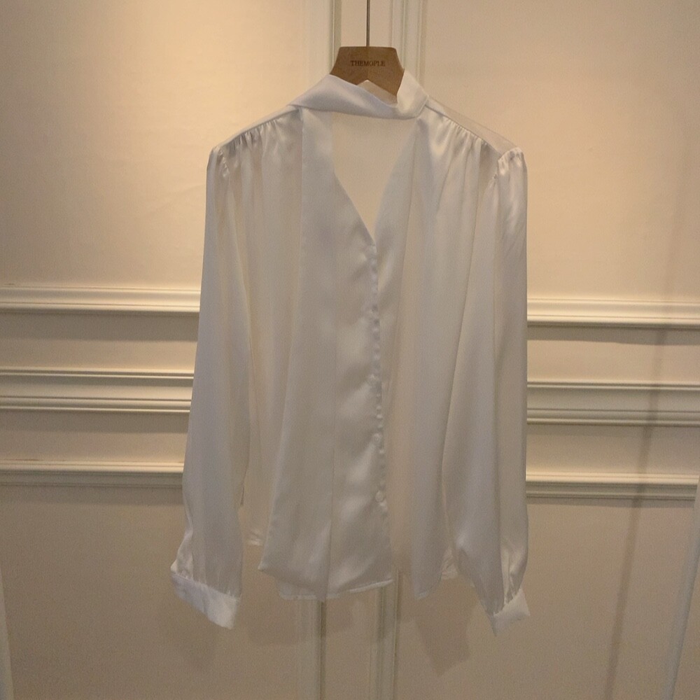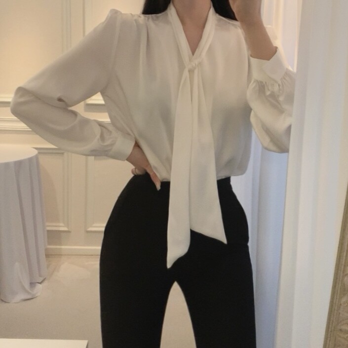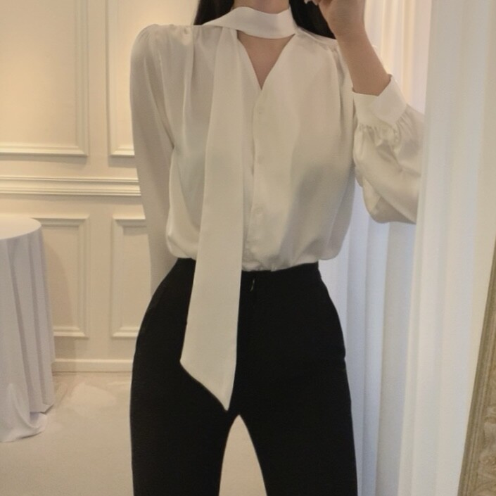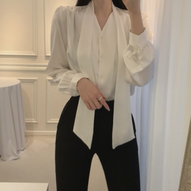 샤틴 실크 럭셔리 스카프 타이 단추 블라우스 (하객룩 오피스룩 결혼식)