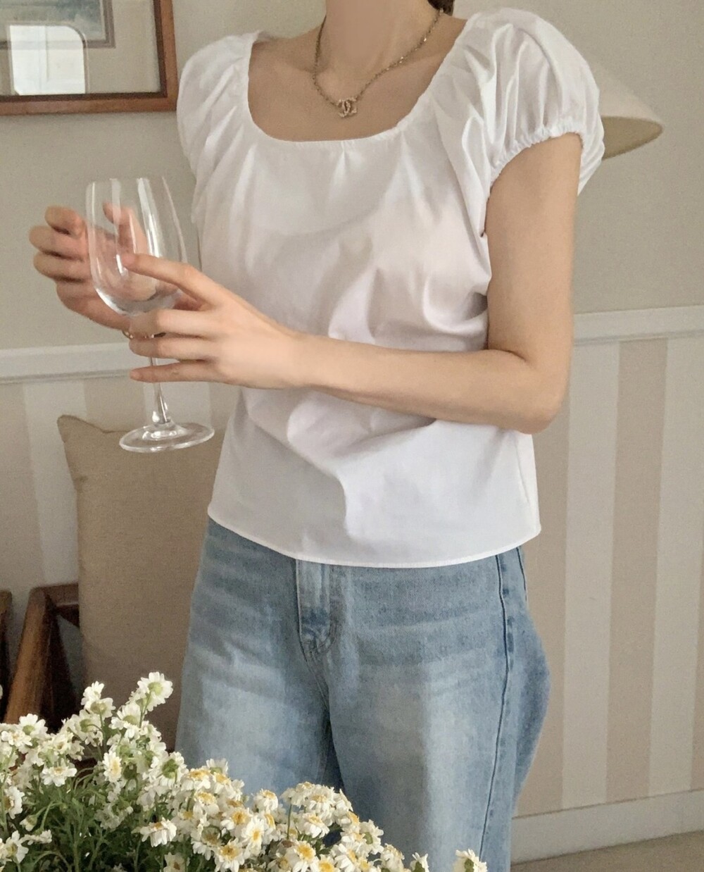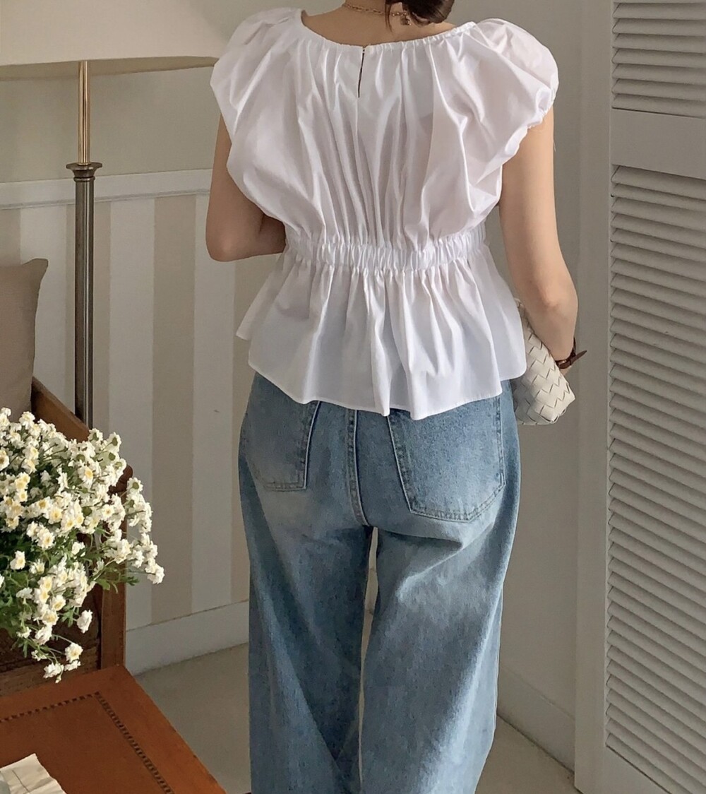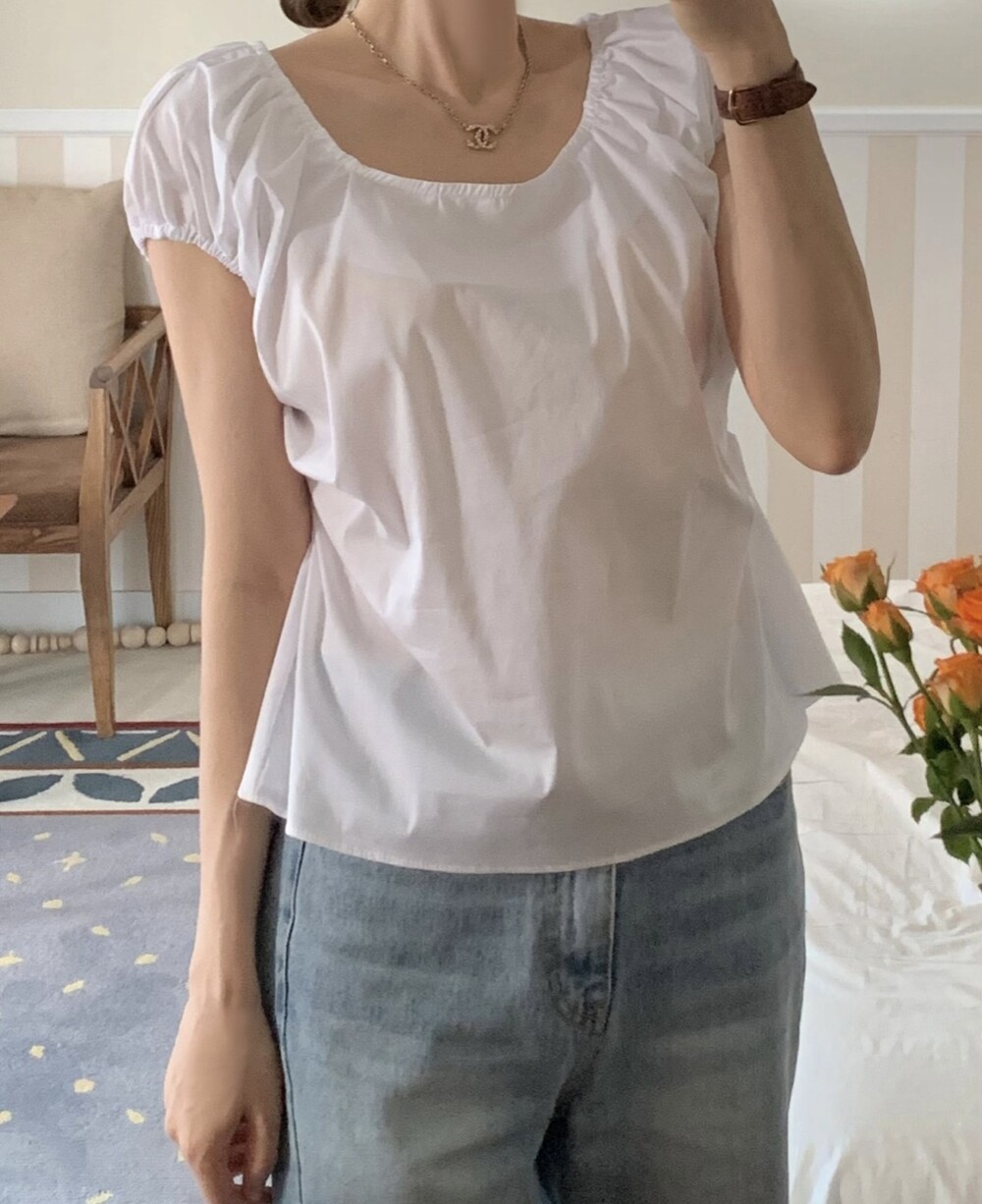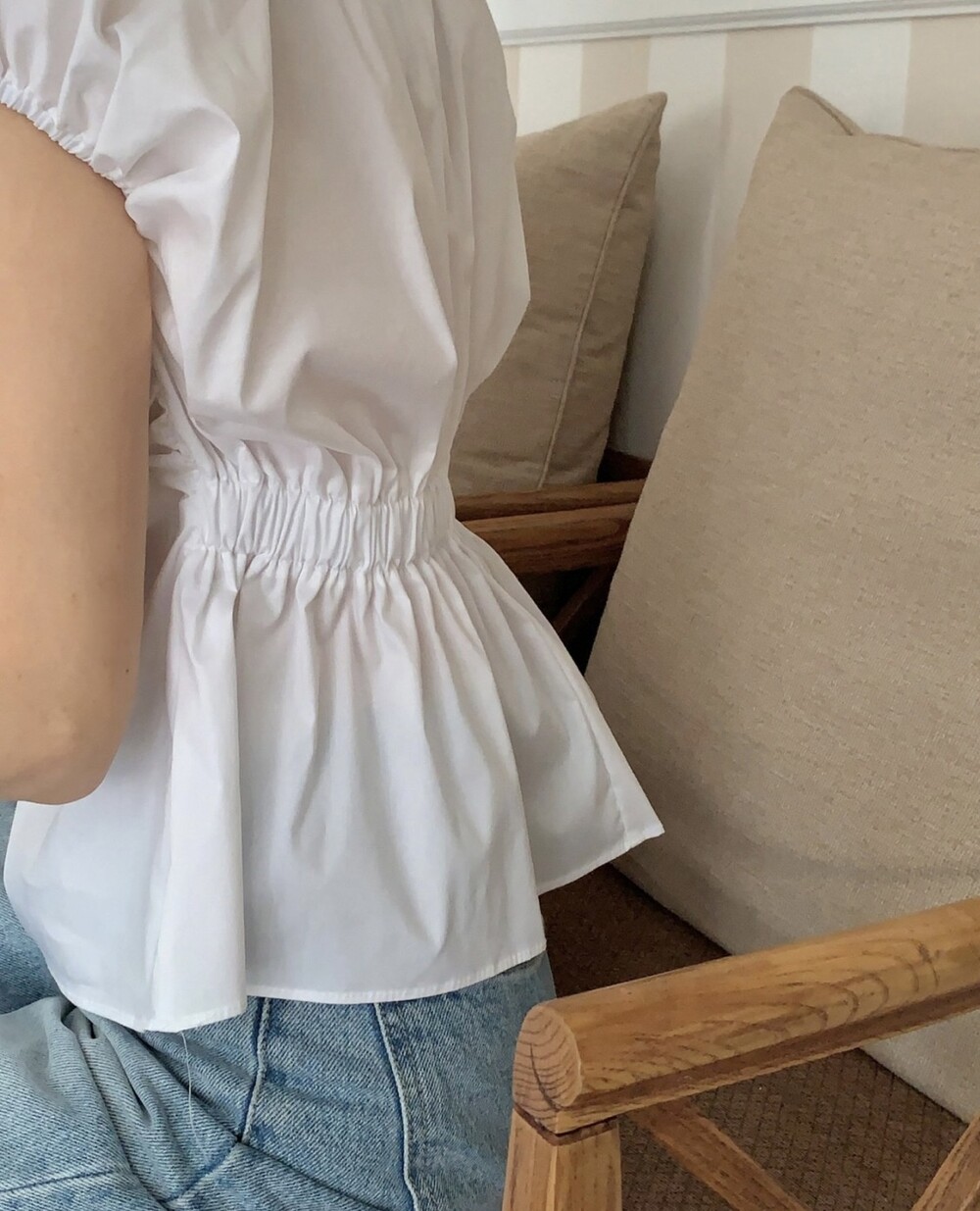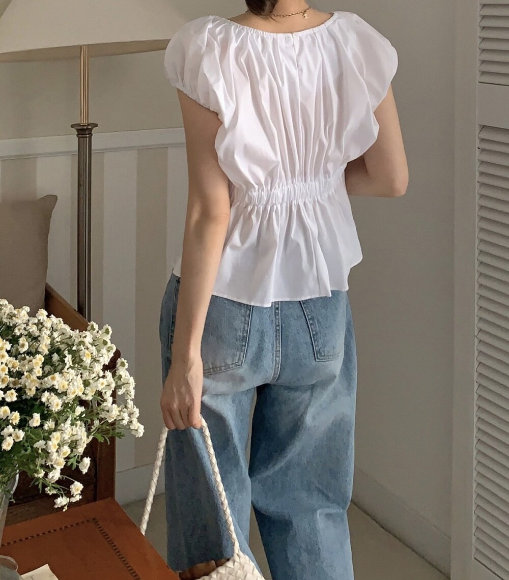 캡소매 퍼프 벌룬 소매 뒷밴딩 여리 블라우스 (하객룩 데이트룩 데일리룩)