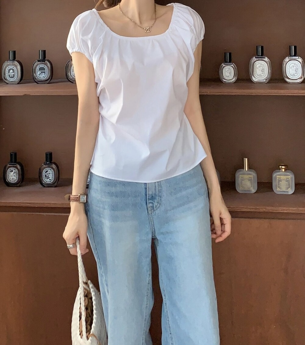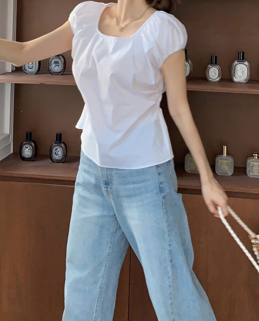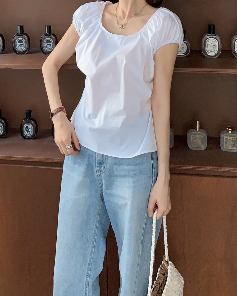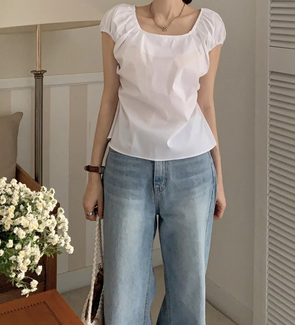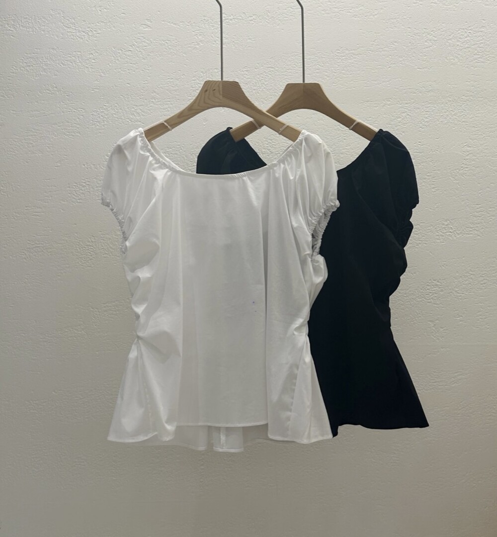캡소매 퍼프 벌룬 소매 뒷밴딩 여리 블라우스 (하객룩 데이트룩 데일리룩)
