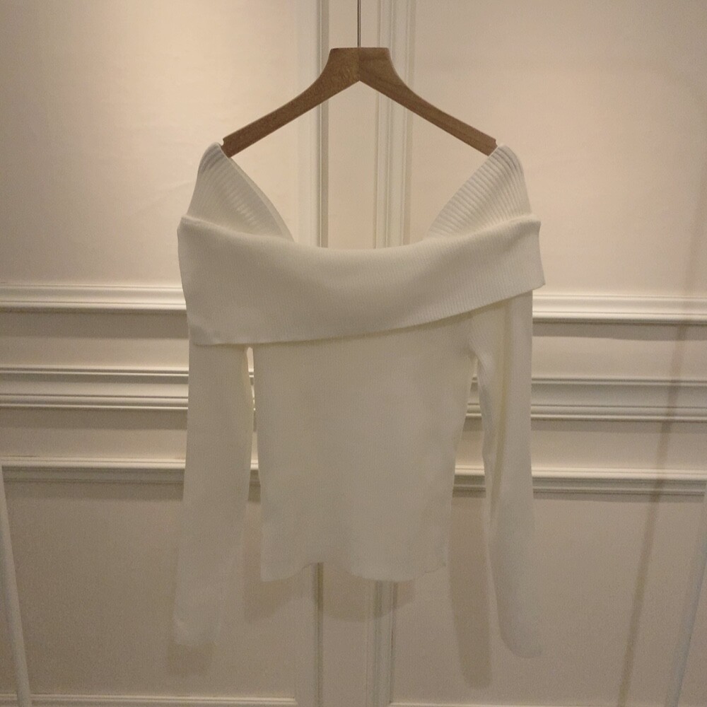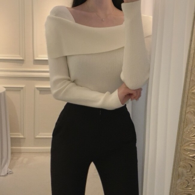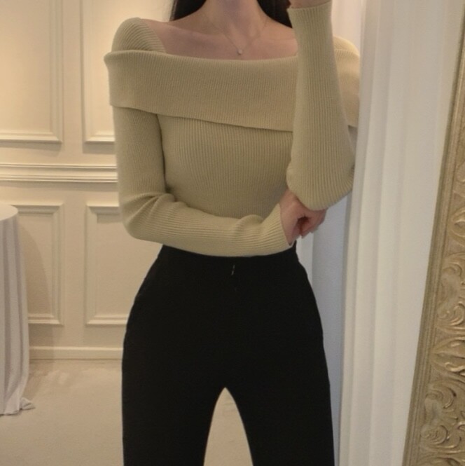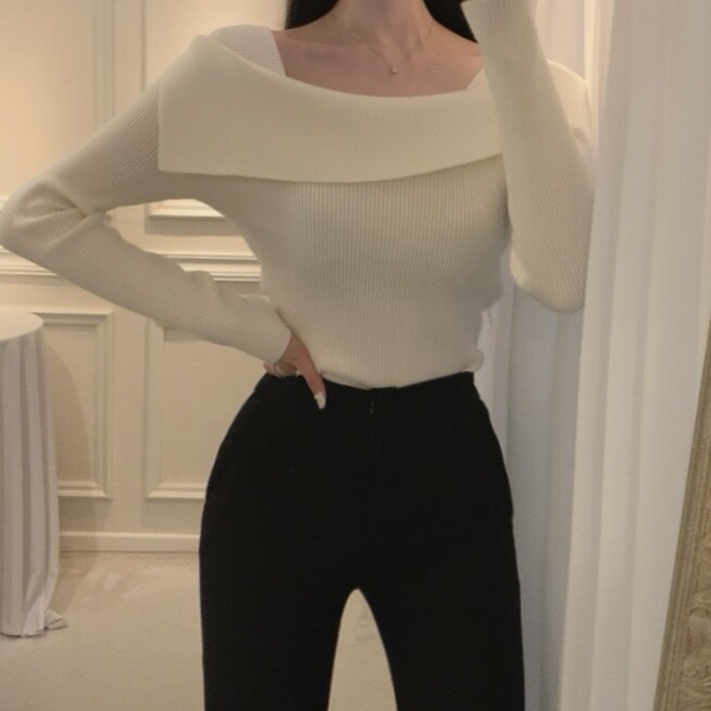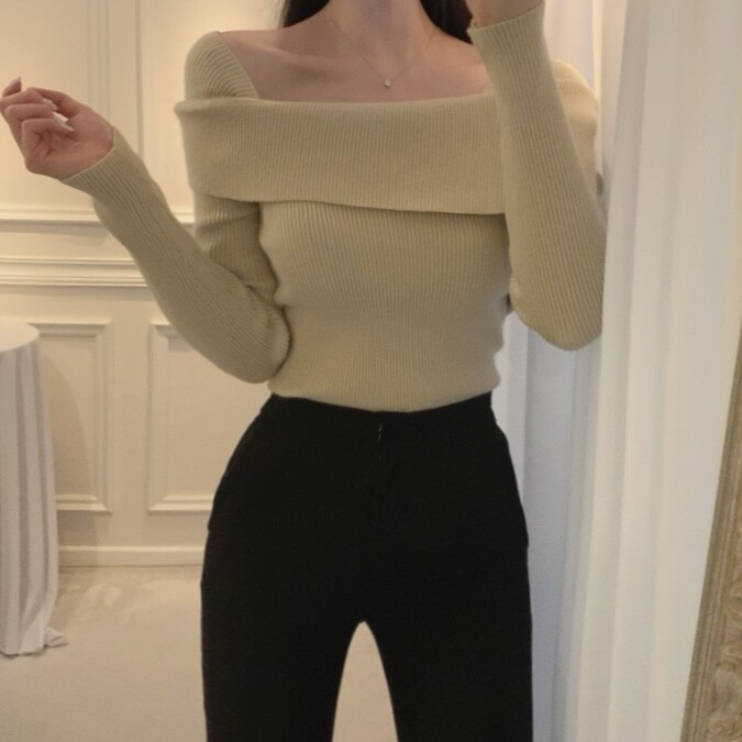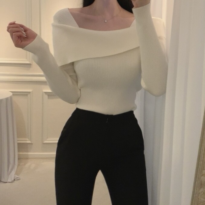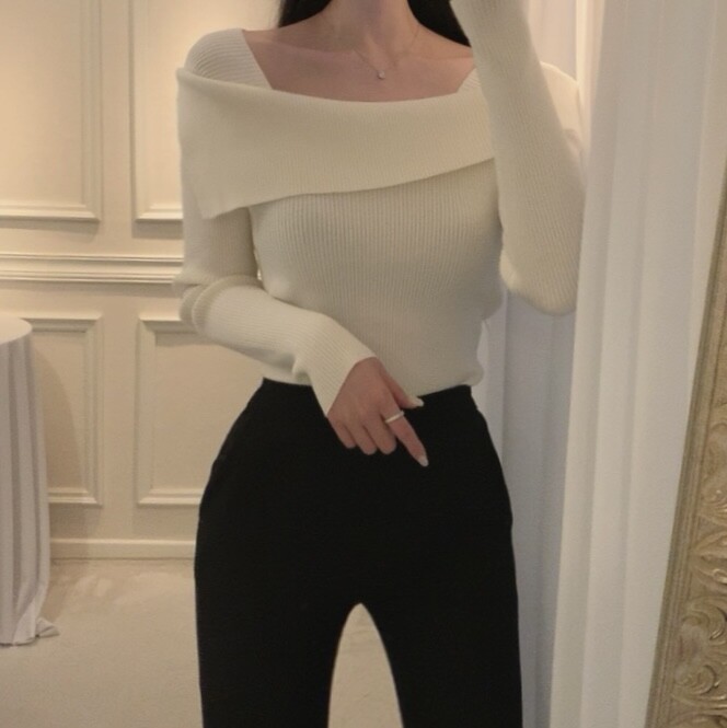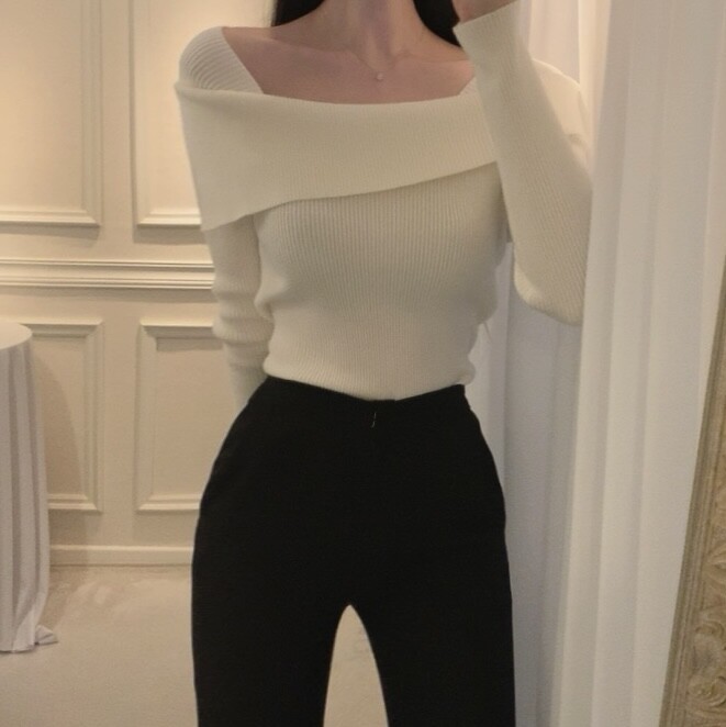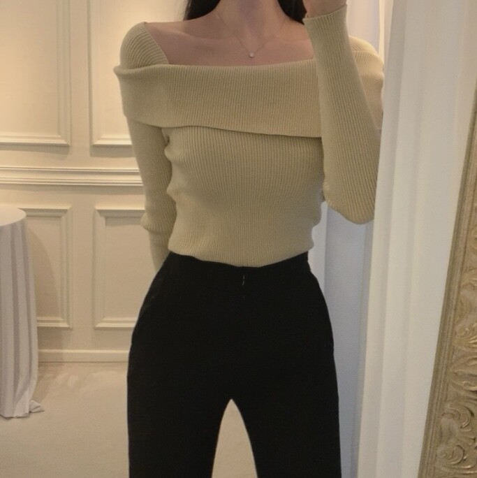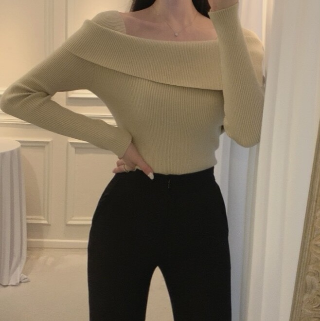 울 골지 카라넥 오프숄더 입술넥 보트넥 여리핏 니트 (하객룩 데이트룩)