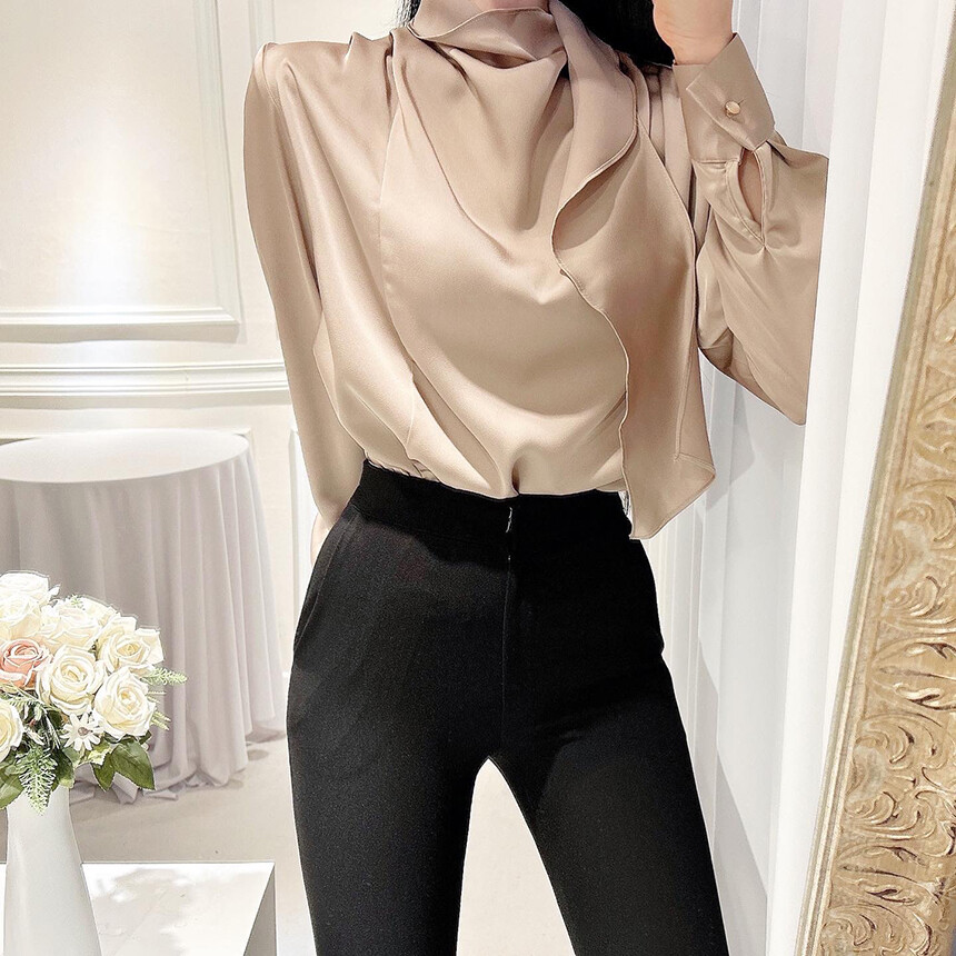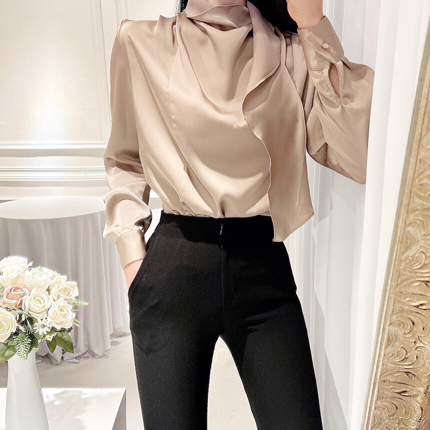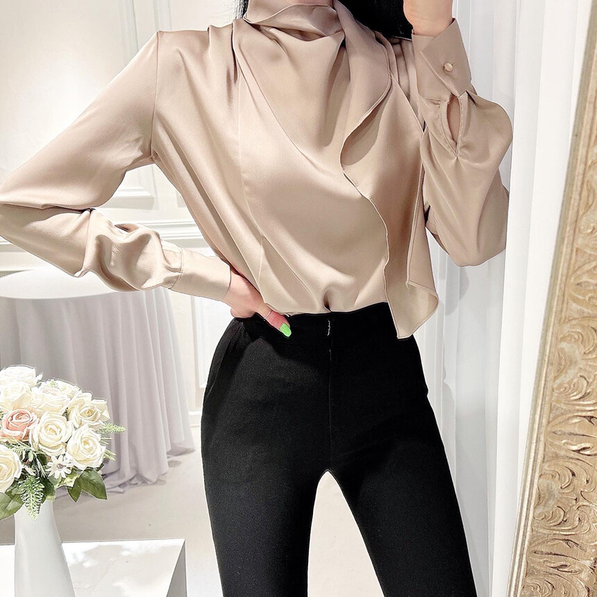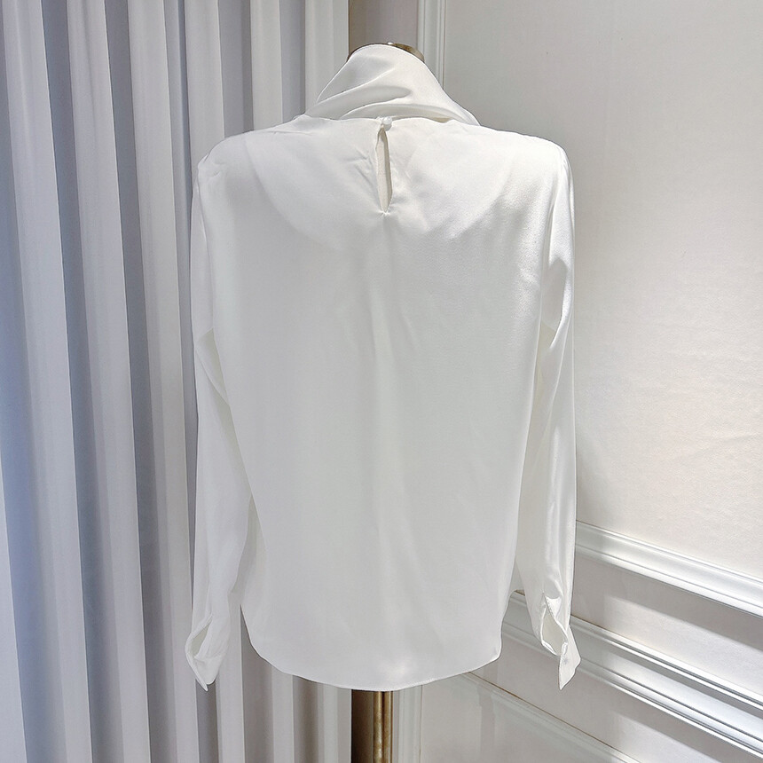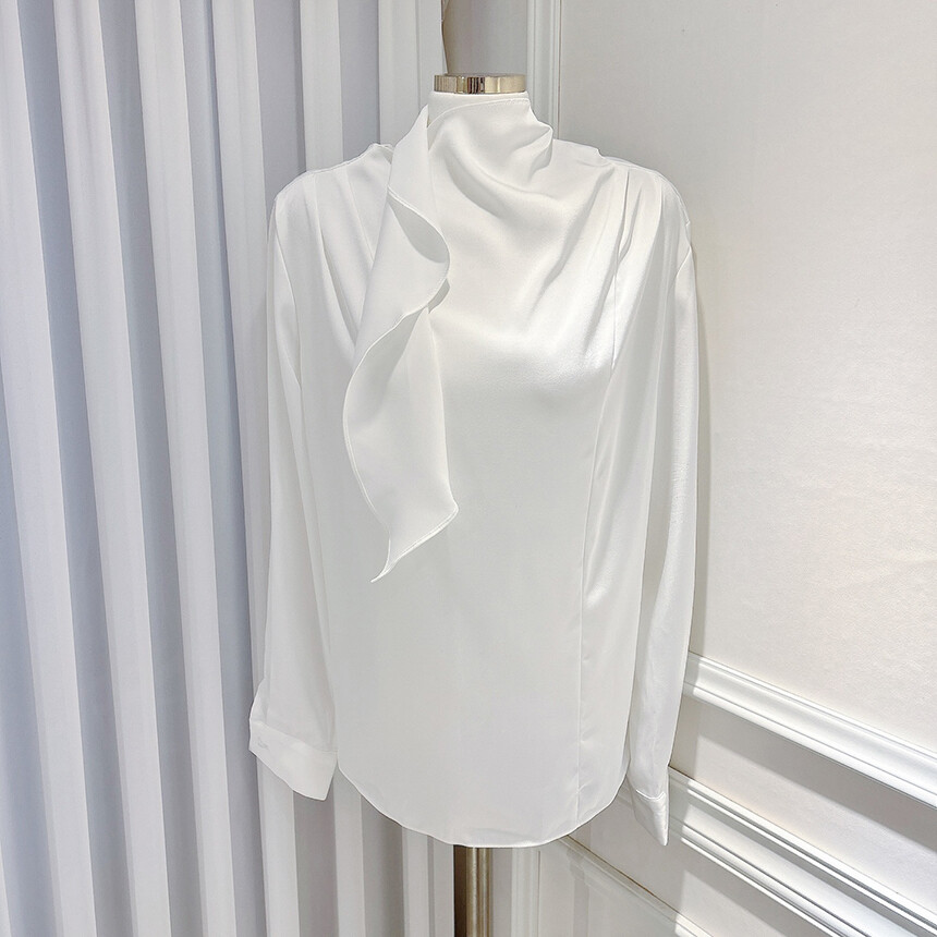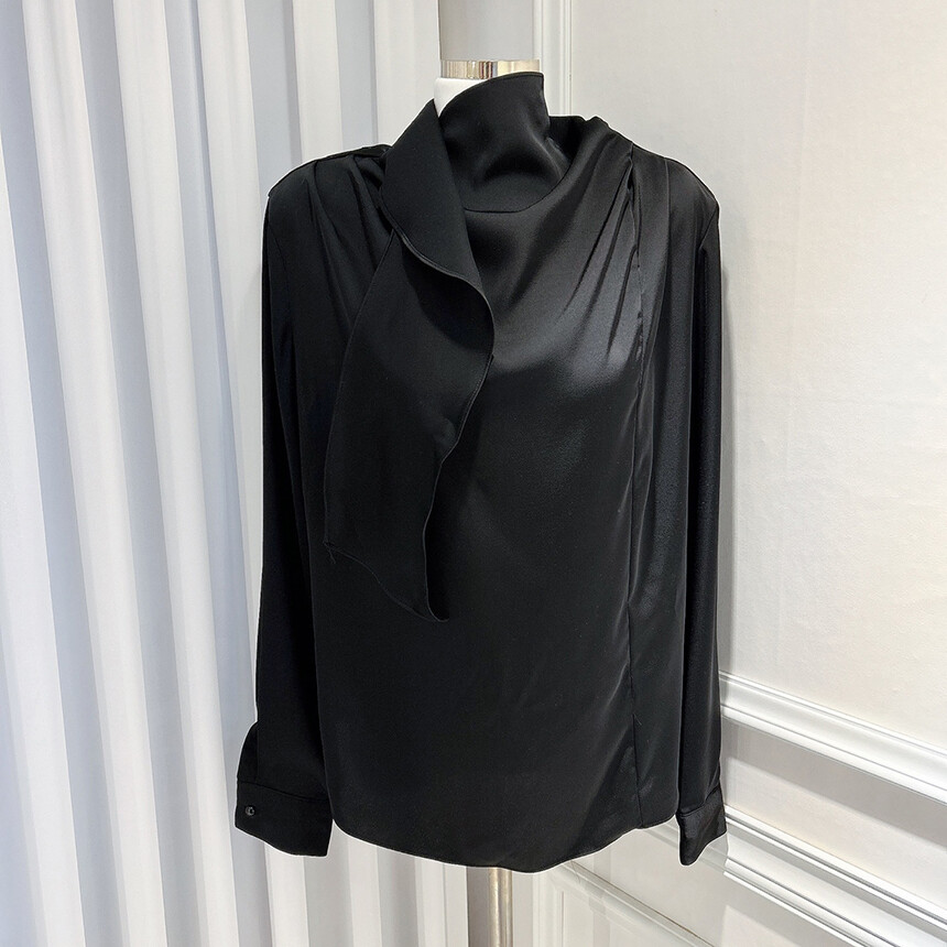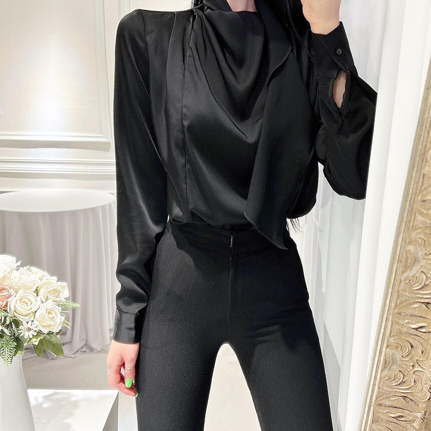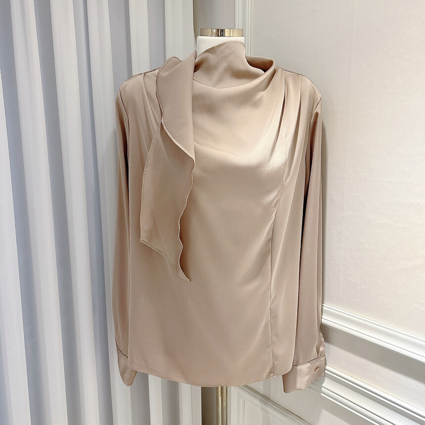 실크 새틴 하이넥 스카프 타이 루즈핏 블라우스 (하객룩 럭셔리룩 오피스룩)
