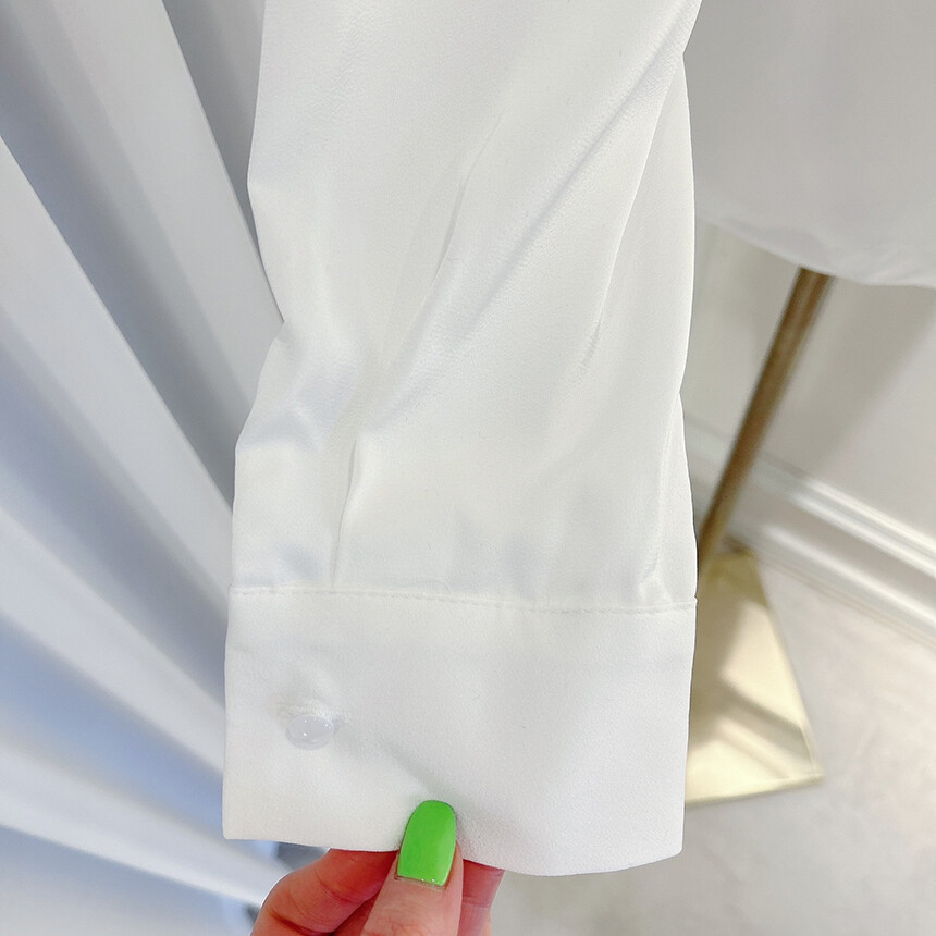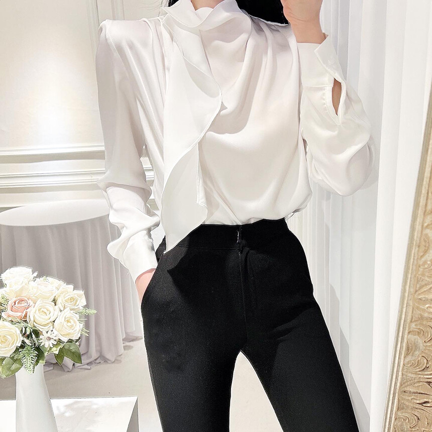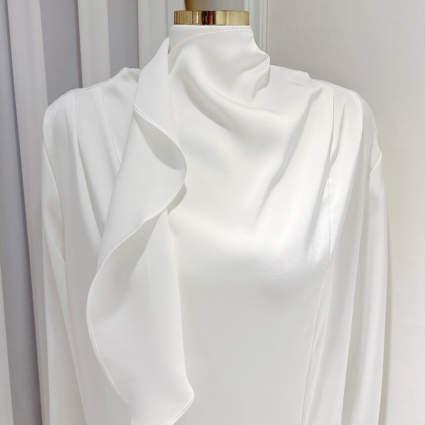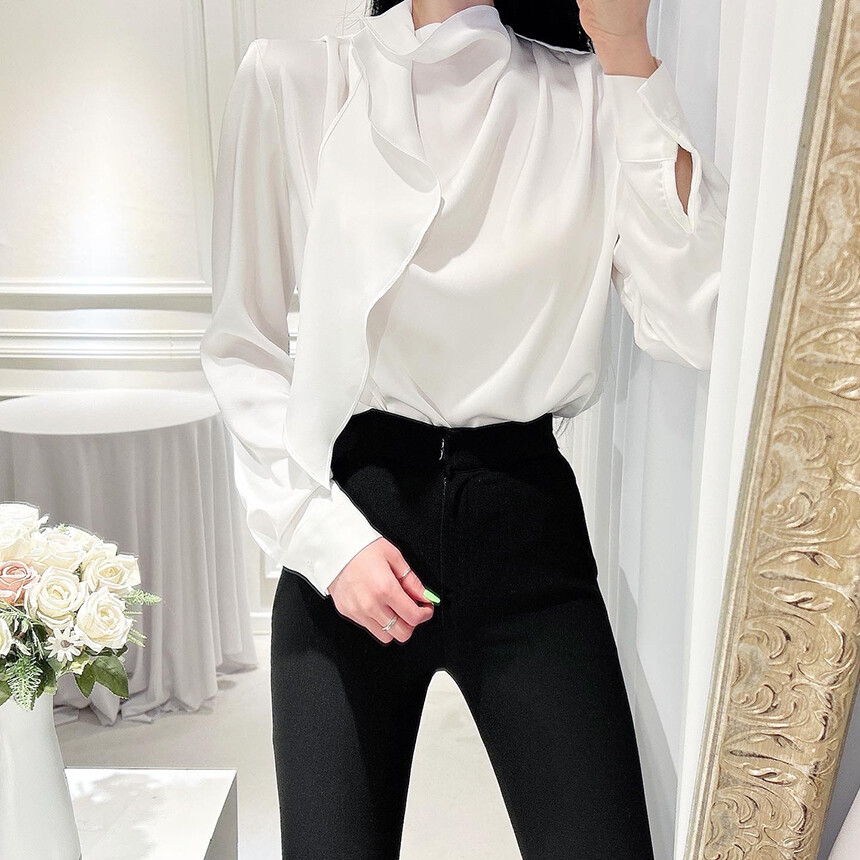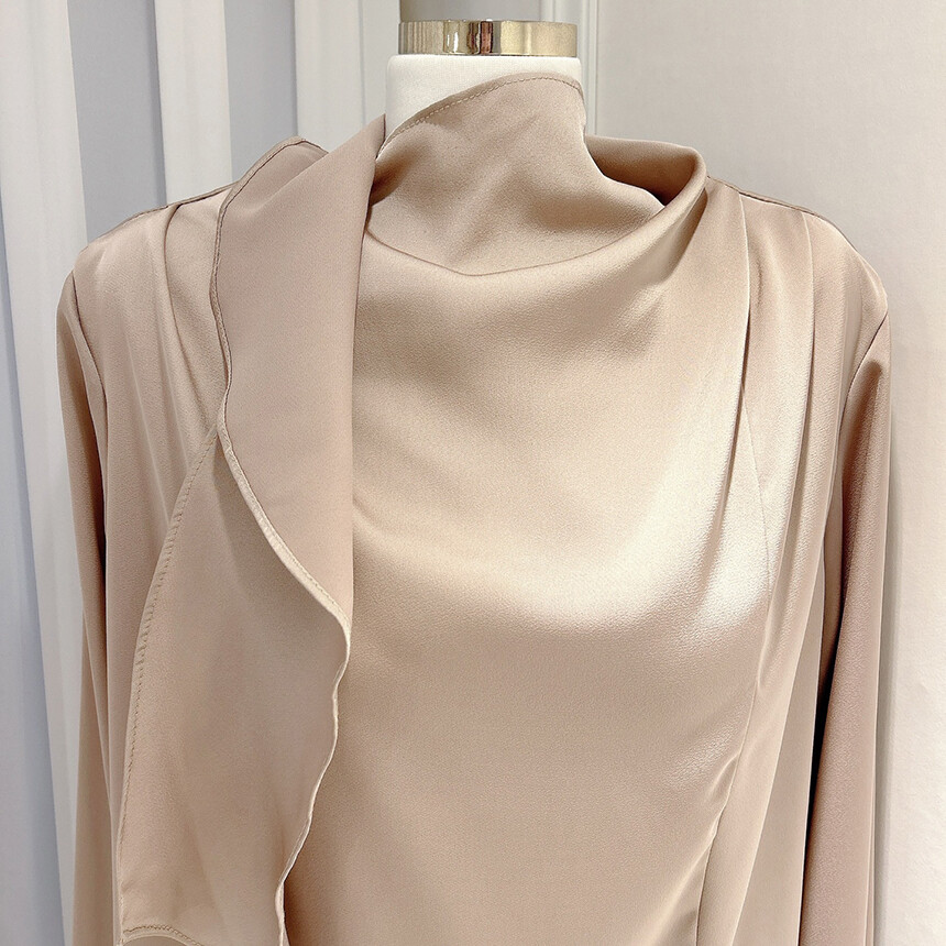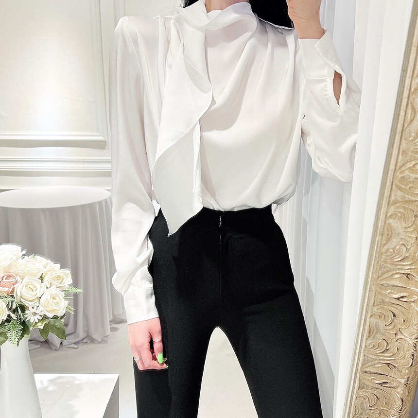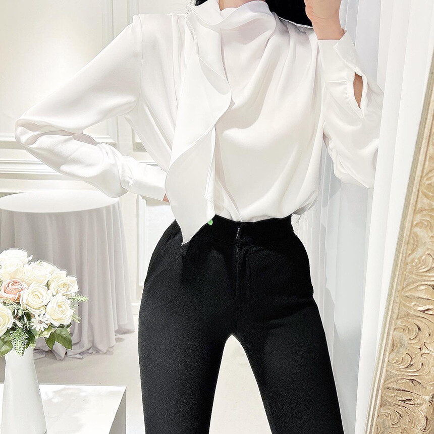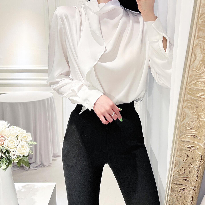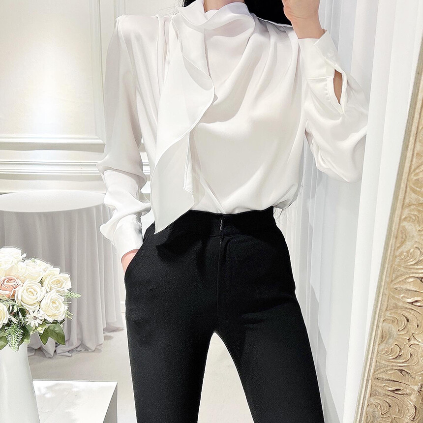 실크 새틴 하이넥 스카프 타이 루즈핏 블라우스 (하객룩 럭셔리룩 오피스룩)