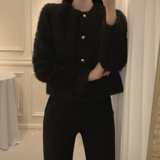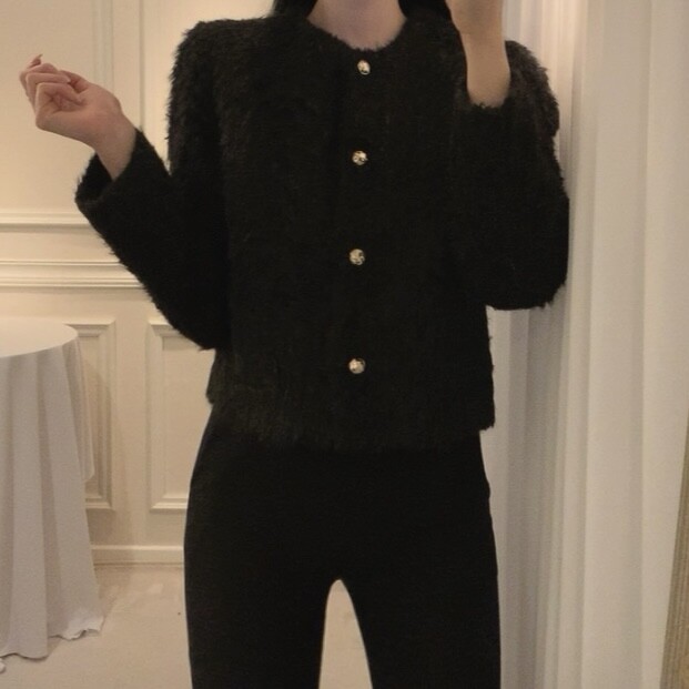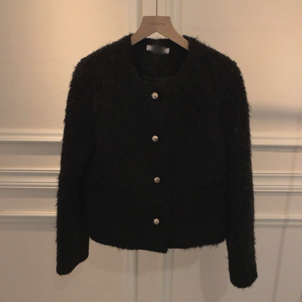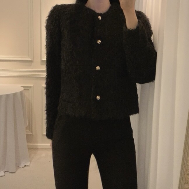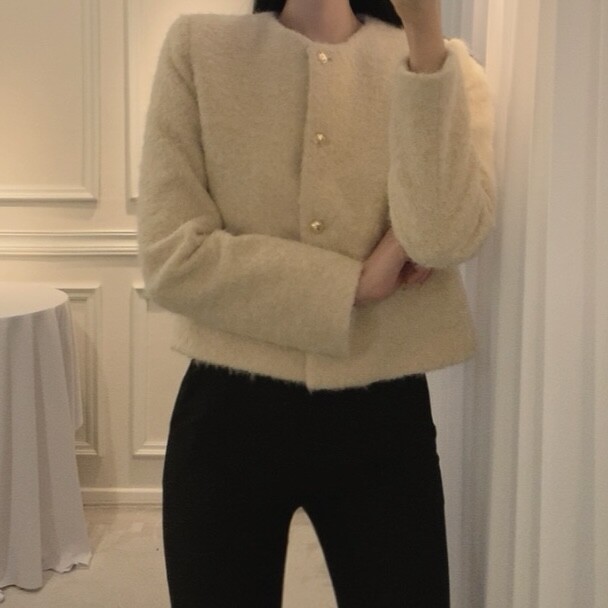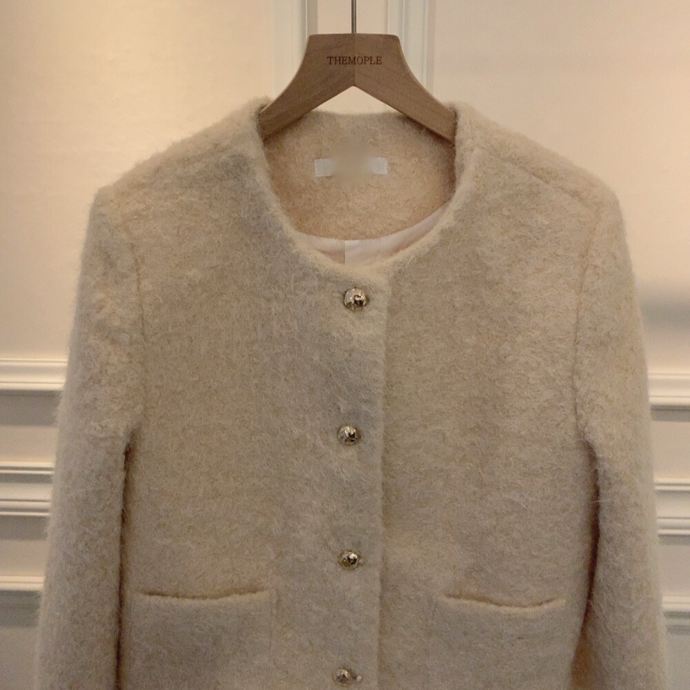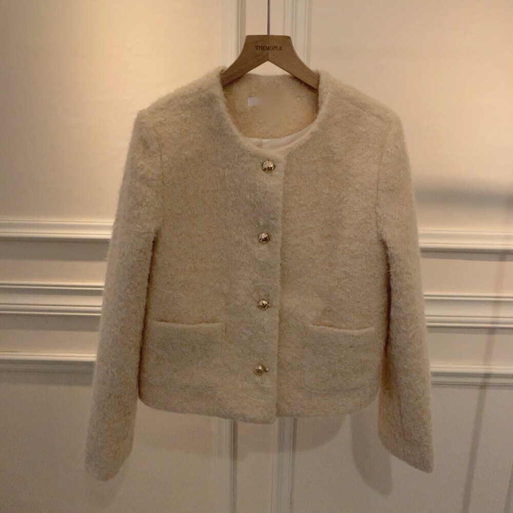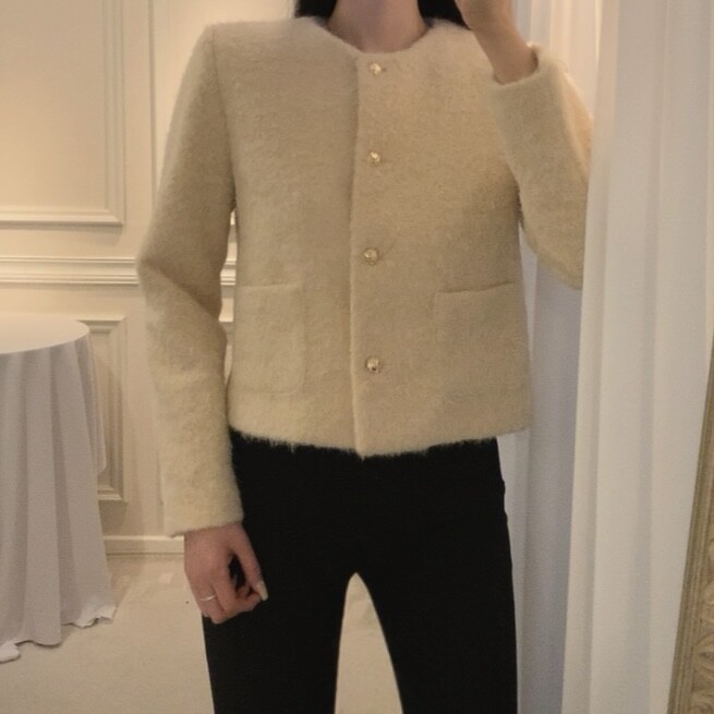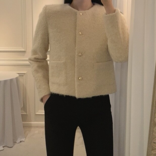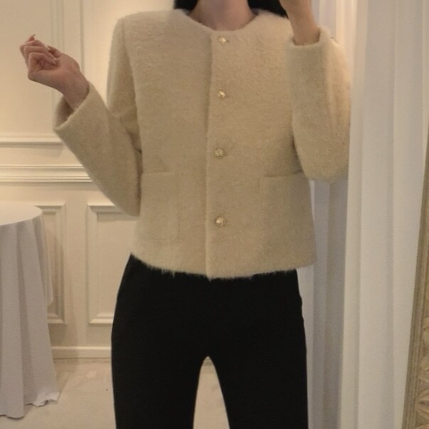 [SALE 원가이하 세일*당일출고] 앙고라 부클 트위드 노카라 골드 단추 기본 자켓
