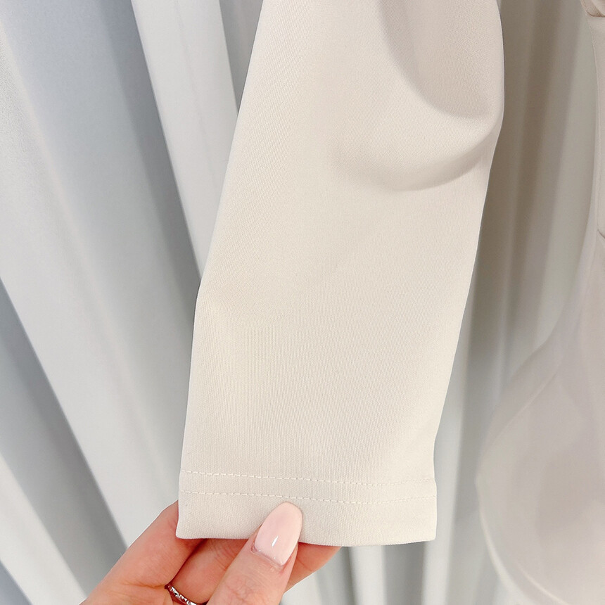 부드럽고 실키한 톡톡한 쿠션 같은 원단의 블라우스에요 :)