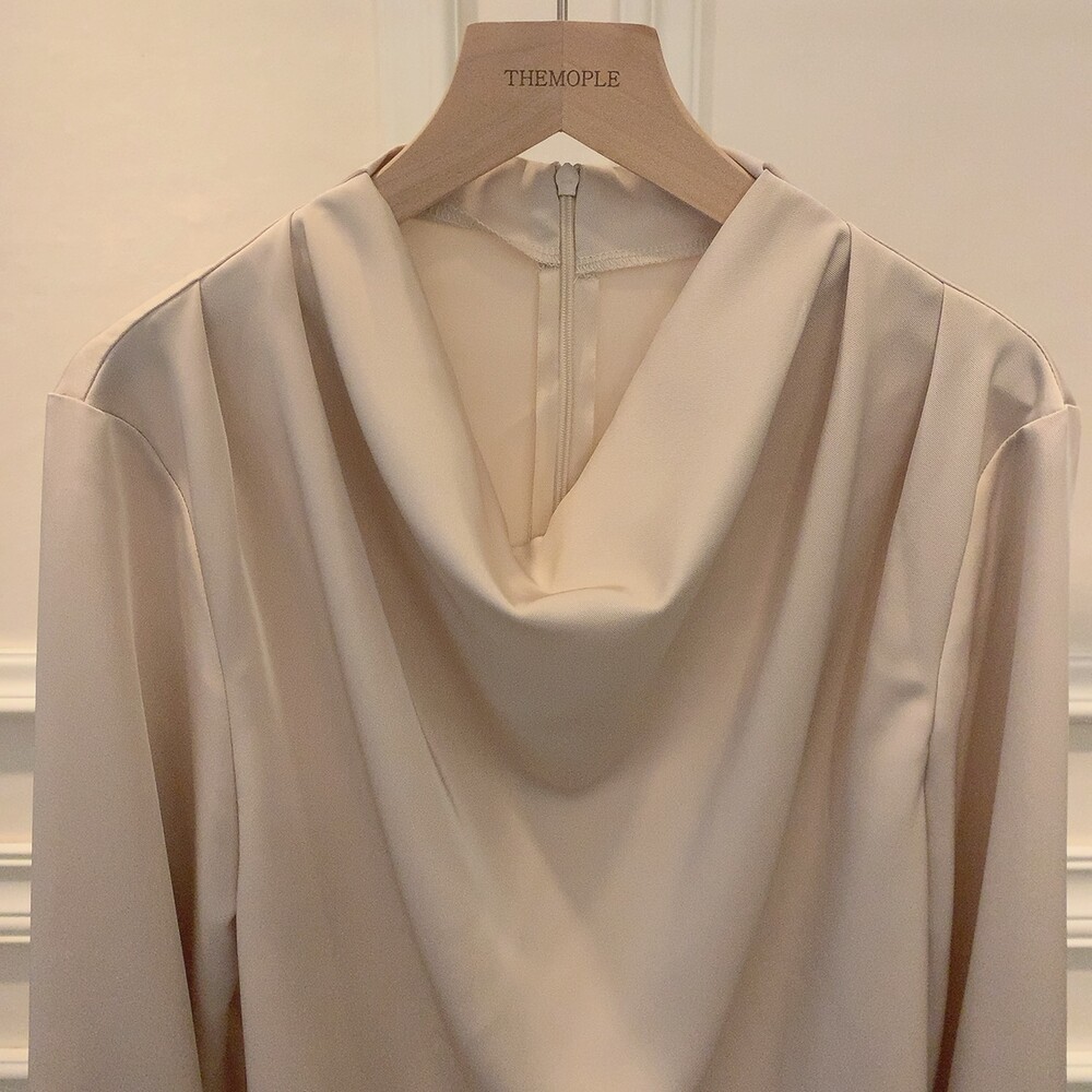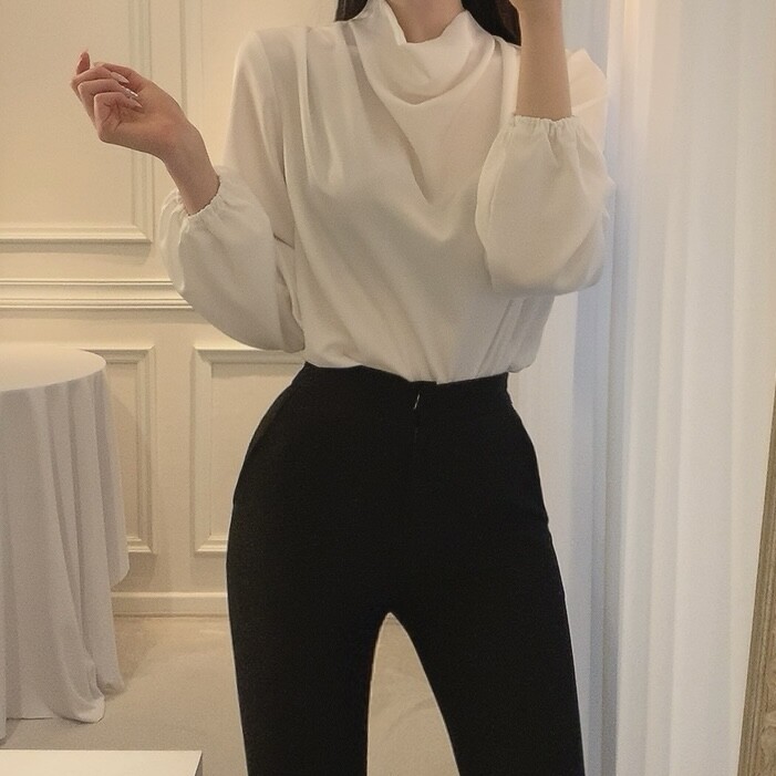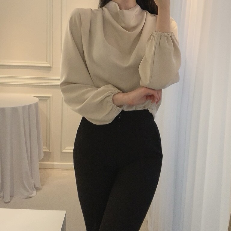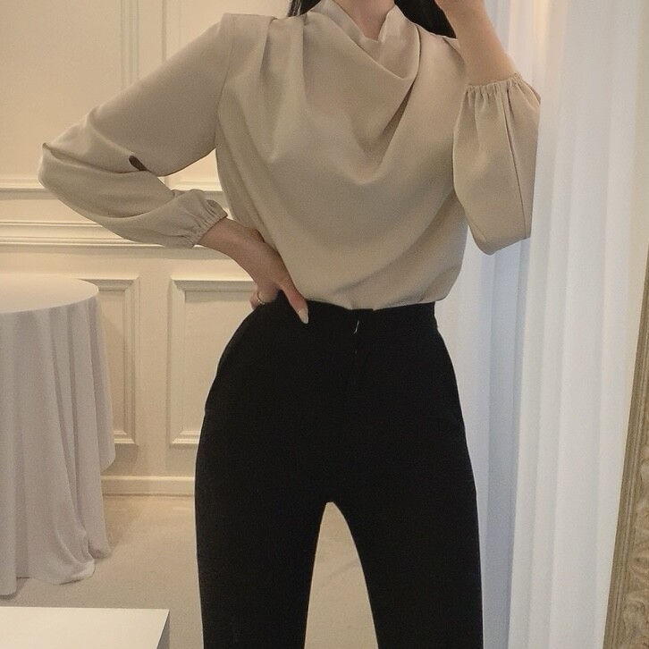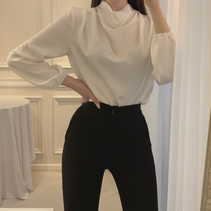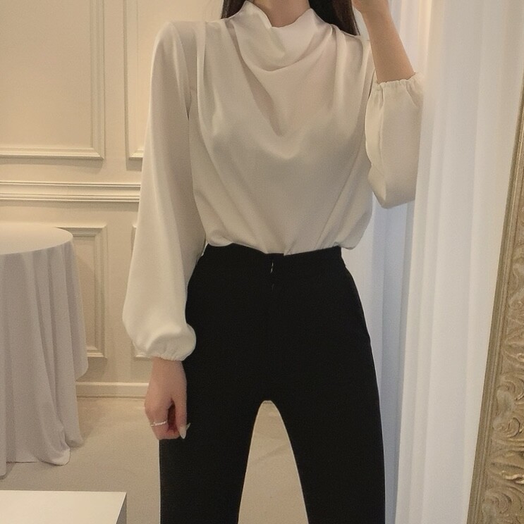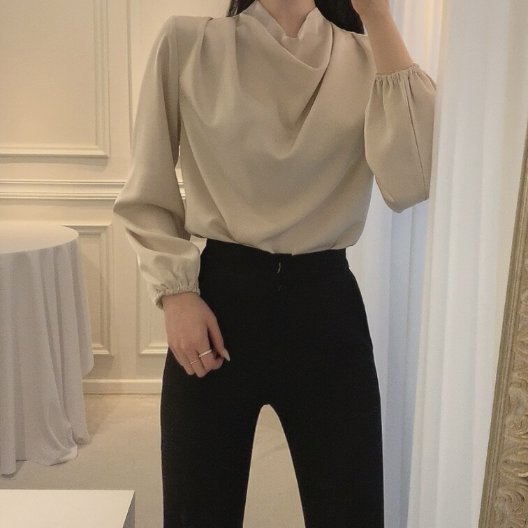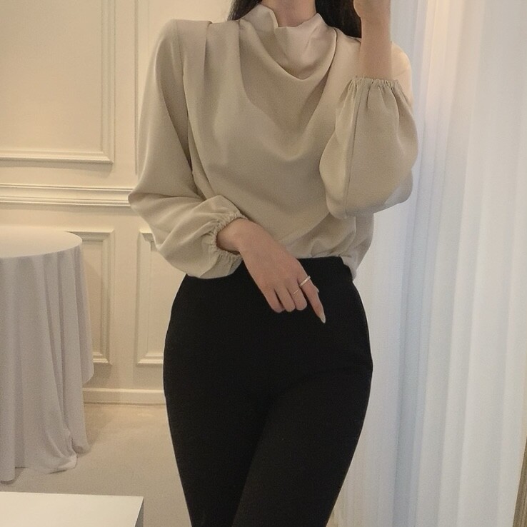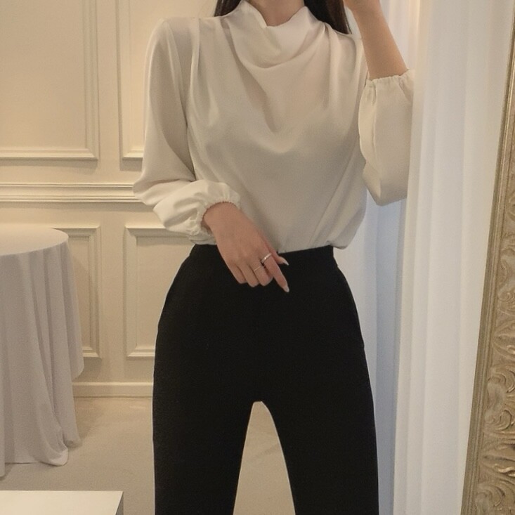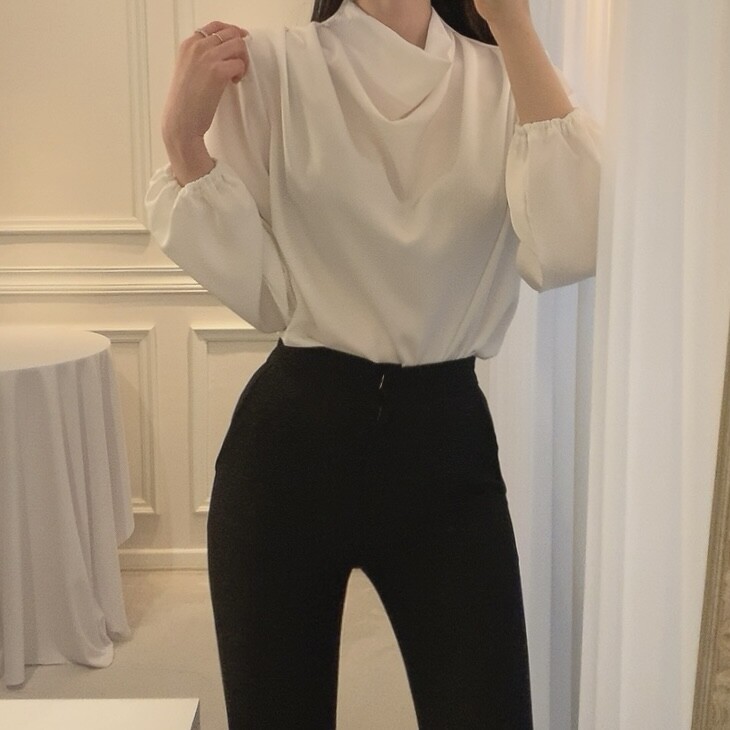 [원가이하 세일*당일출고] 터틀 반목 셔링 드레이프 주름 실크 새틴 블라우스