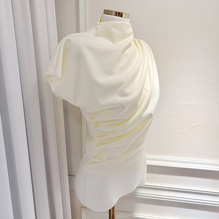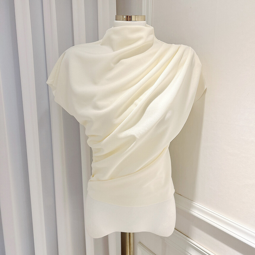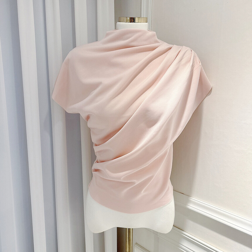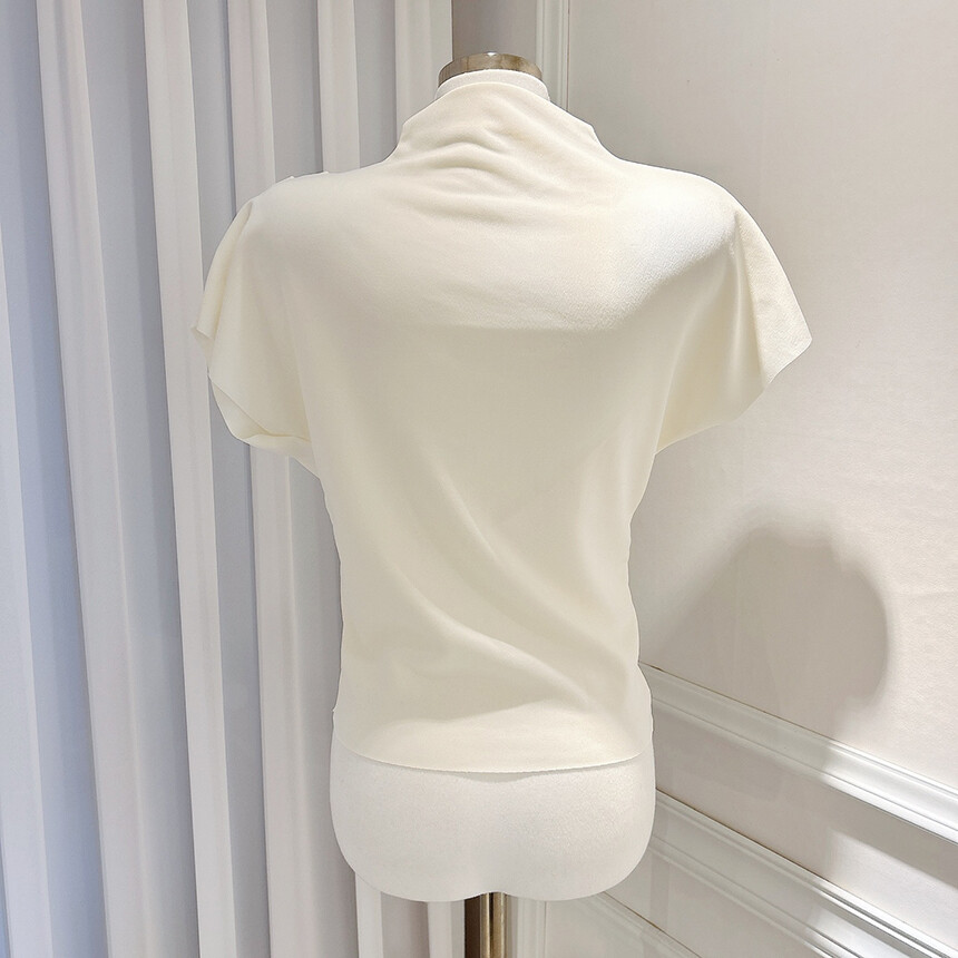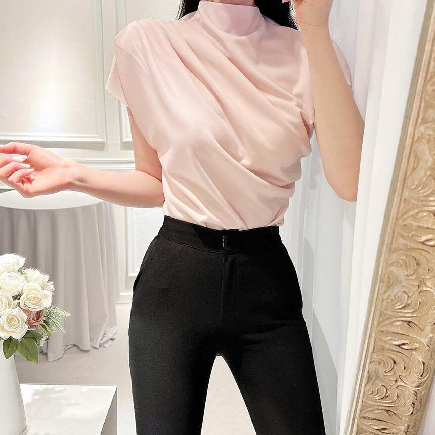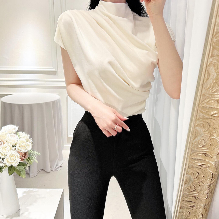 캡소매 반목 실키 새틴 져지 드레이프 주름 여리여리 슬림 블라우스 티셔츠