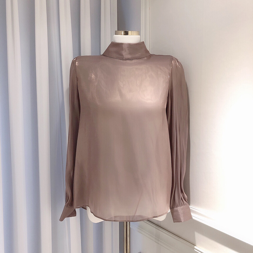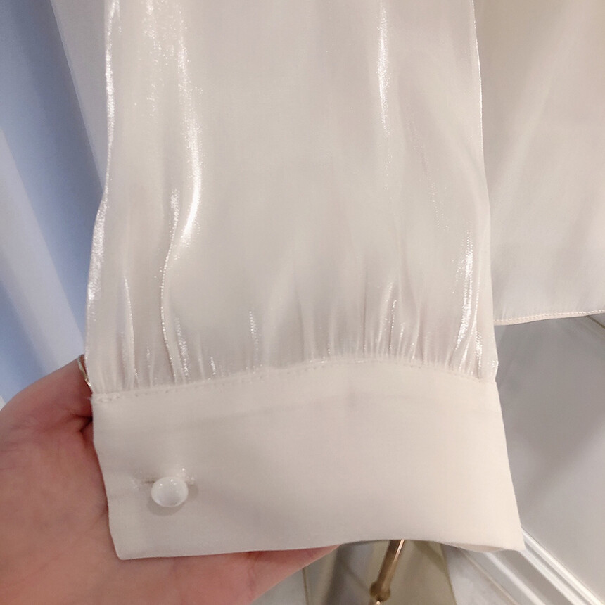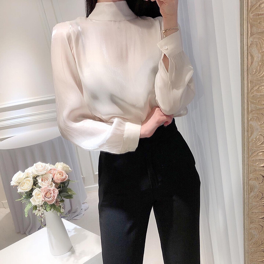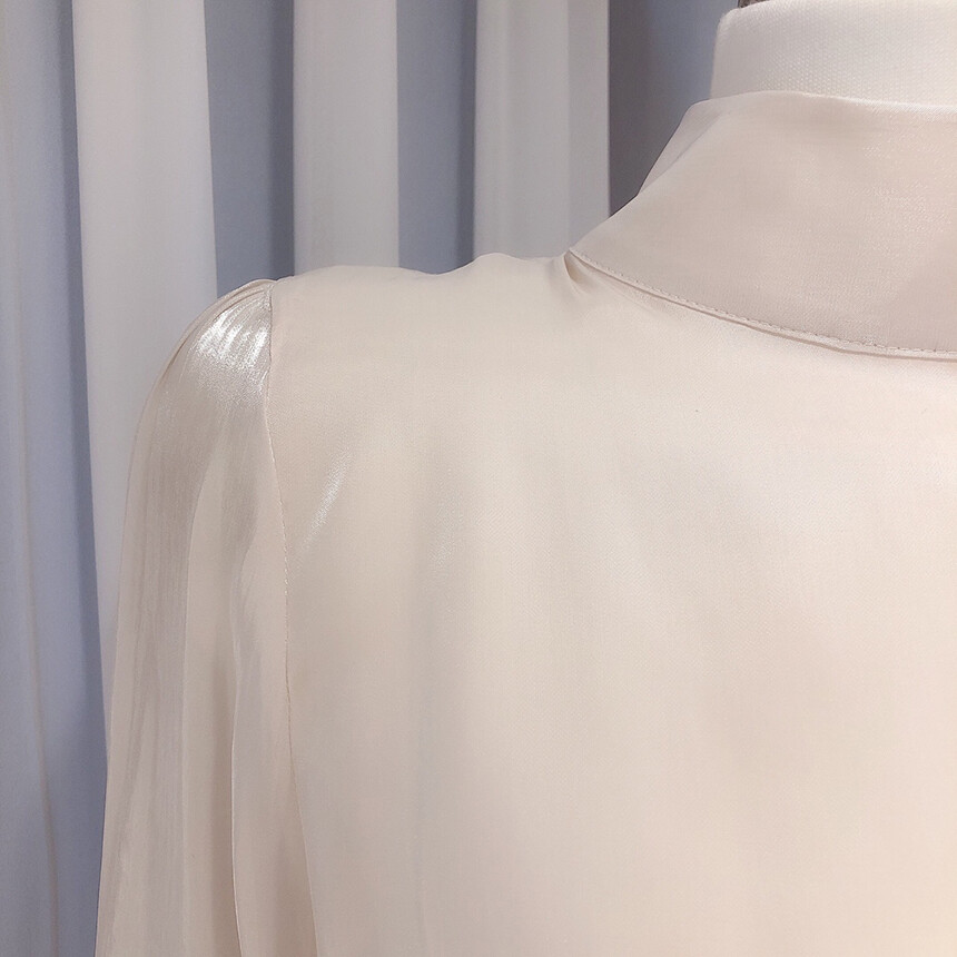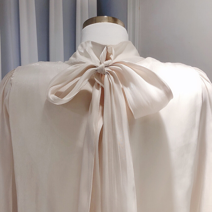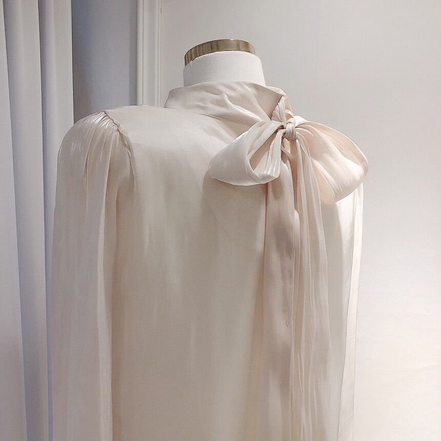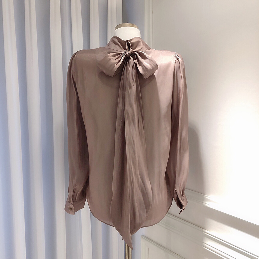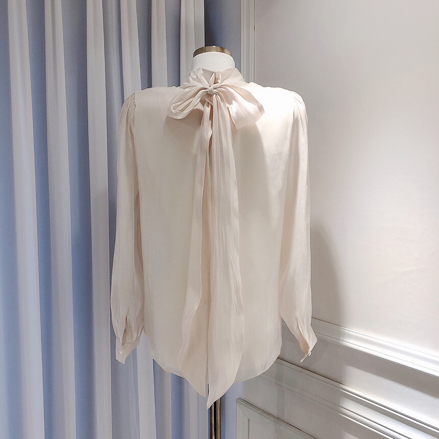 반목 뒷태 스카프 타이 리본 새틴 블라우스