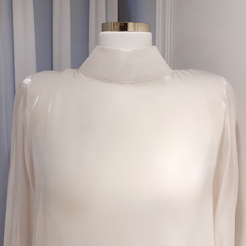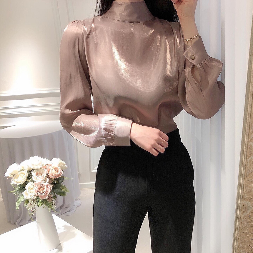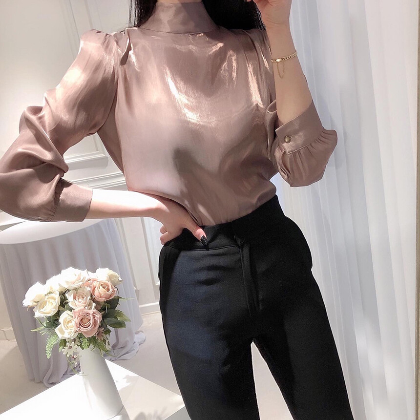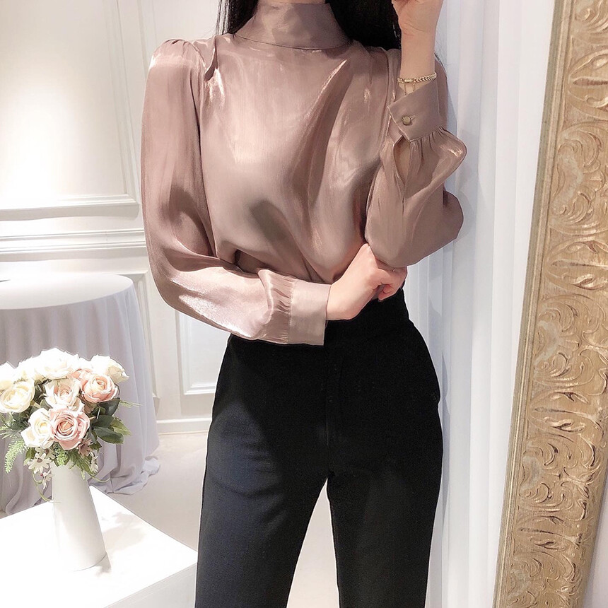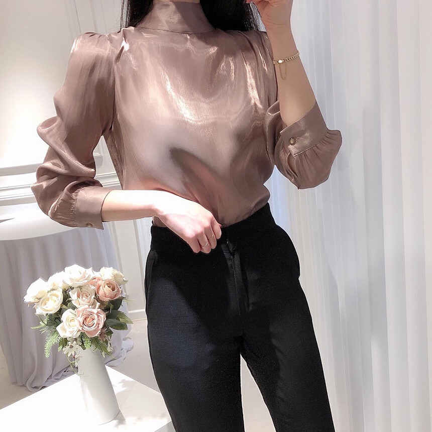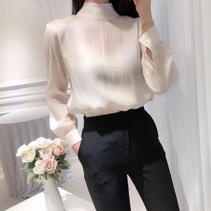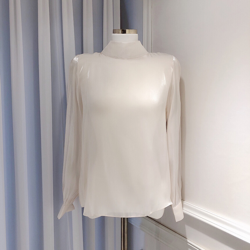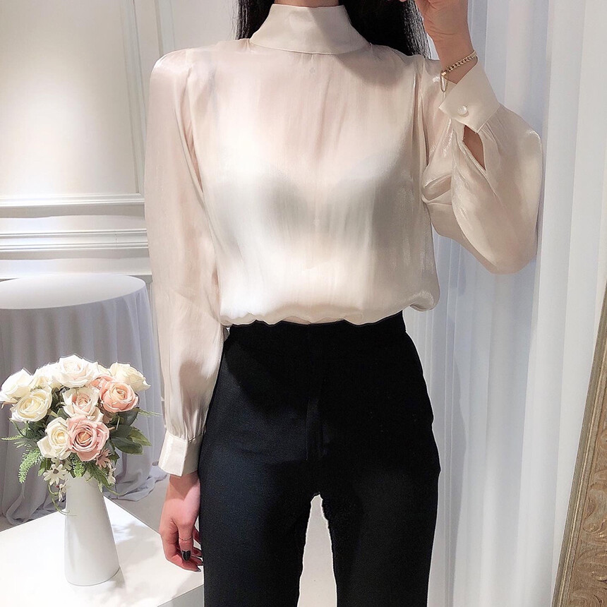 반목 뒷태 스카프 타이 리본 새틴 블라우스
