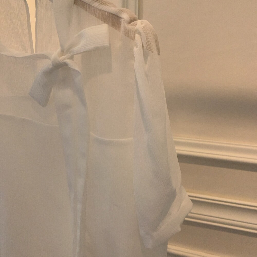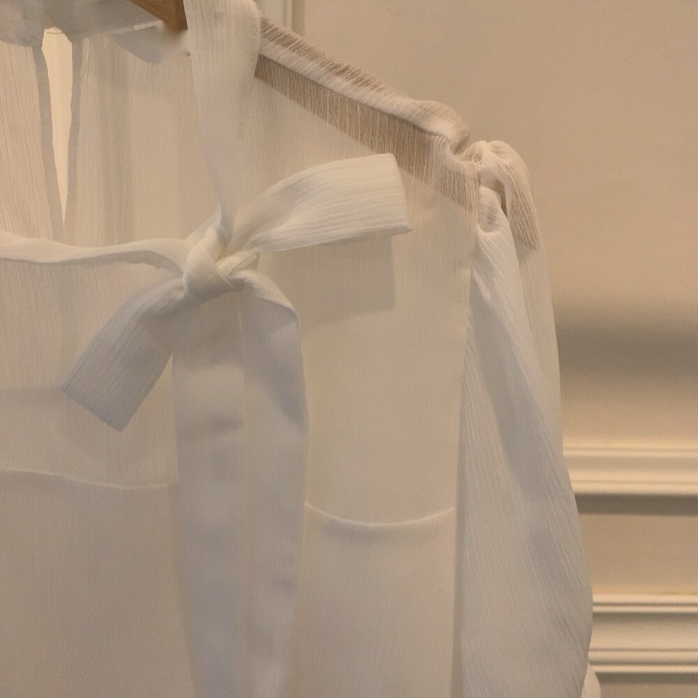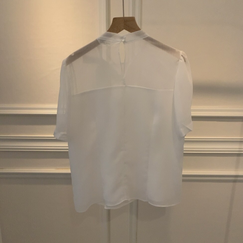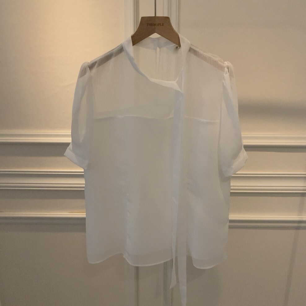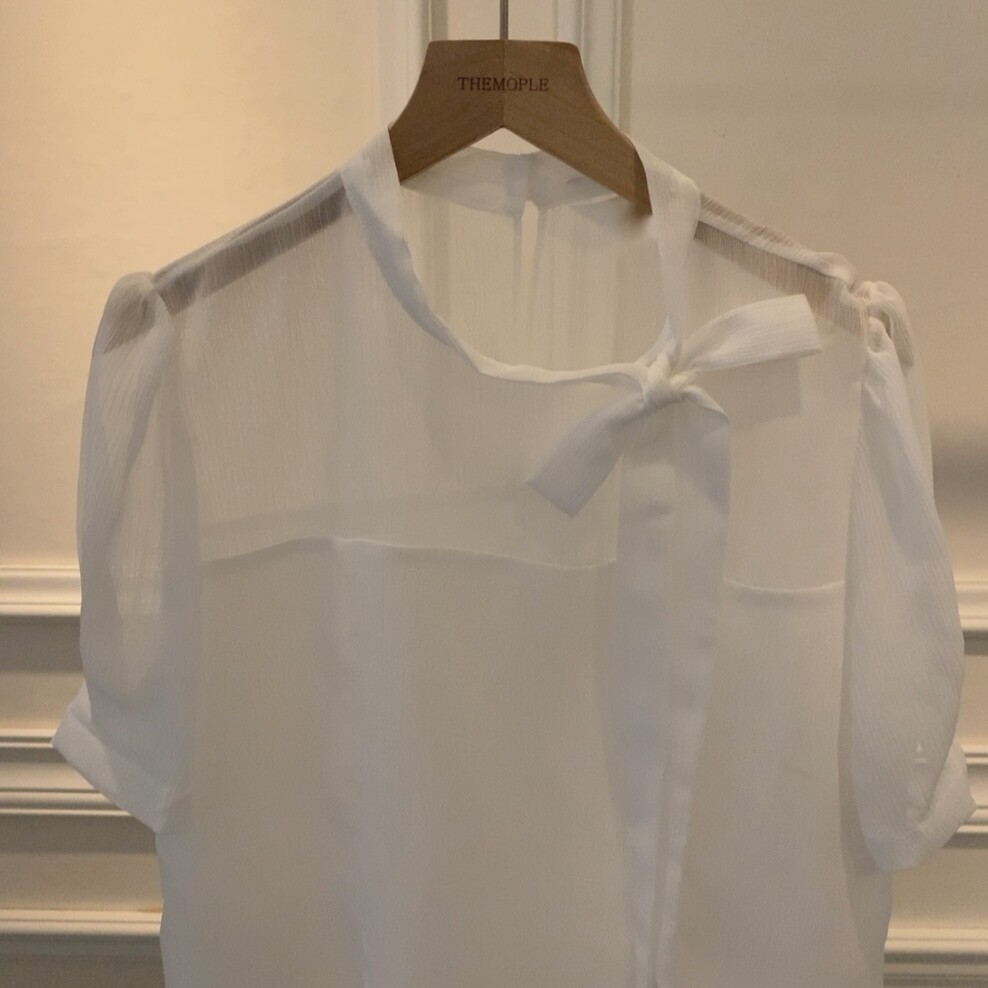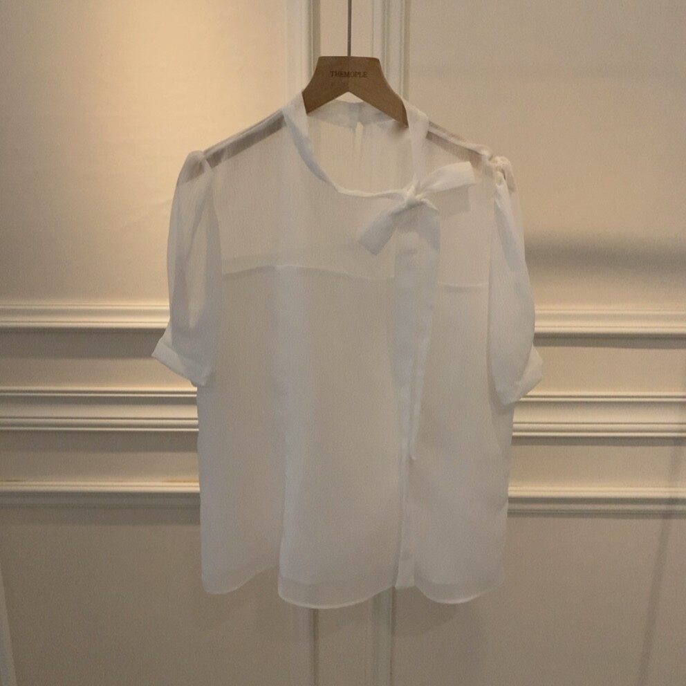요루 시스루 리본 타이 여리 반팔 블라우스 (하객룩 결혼식 오피스룩)