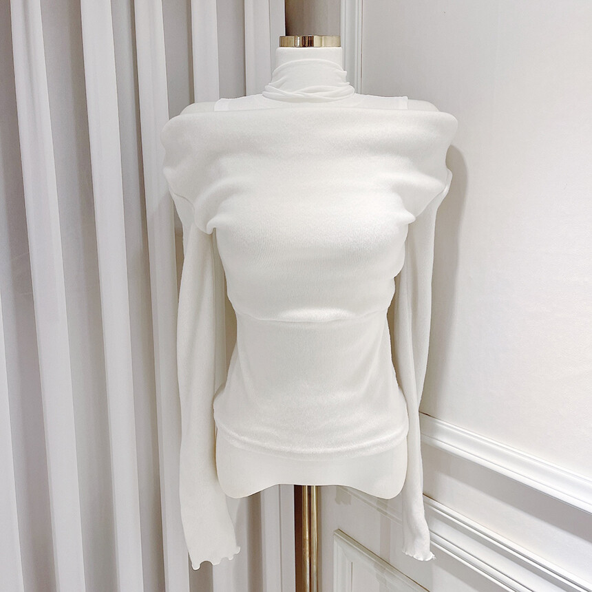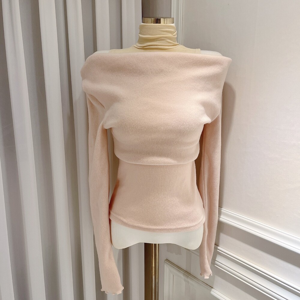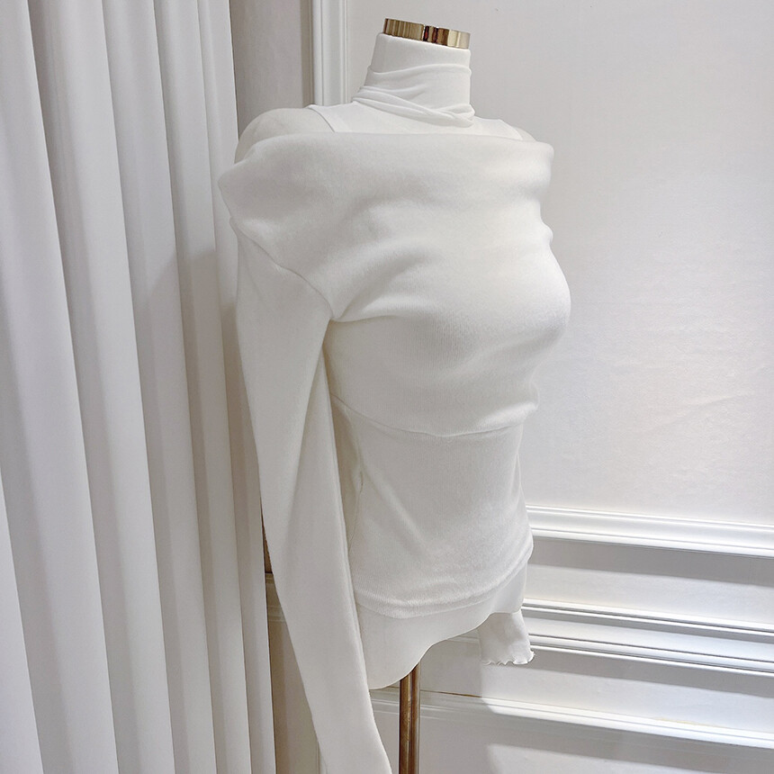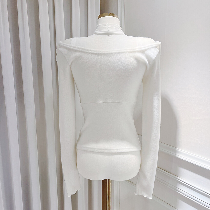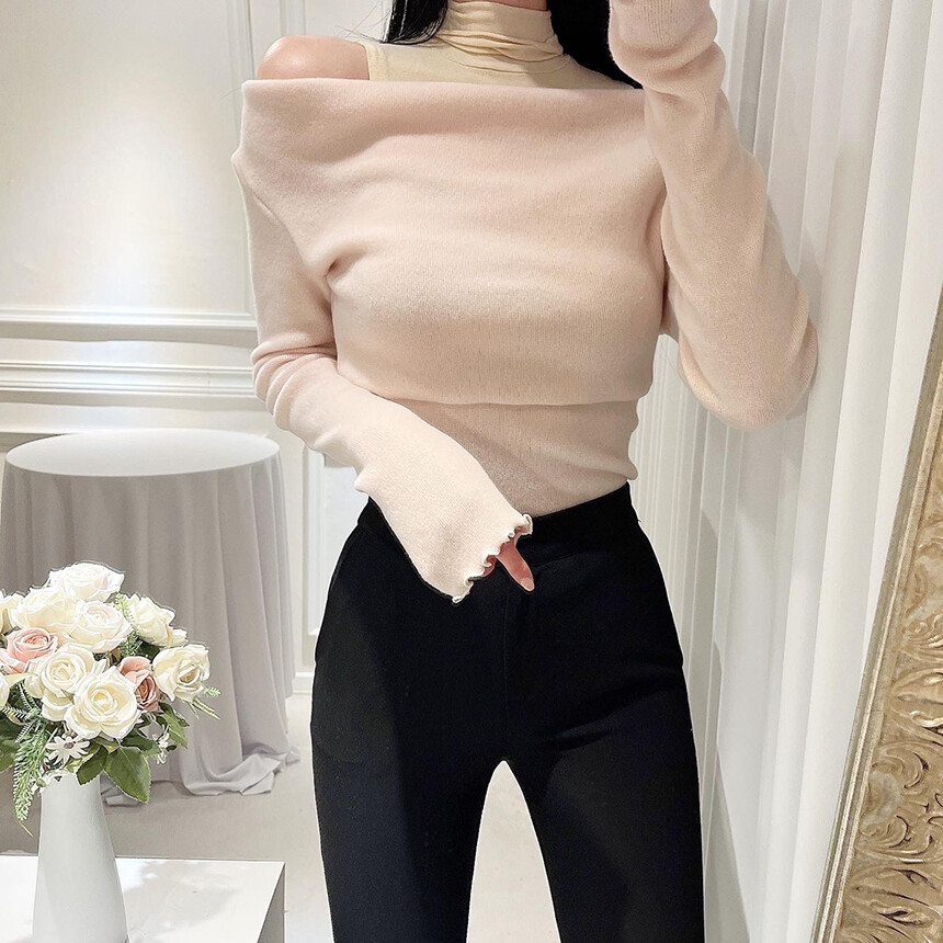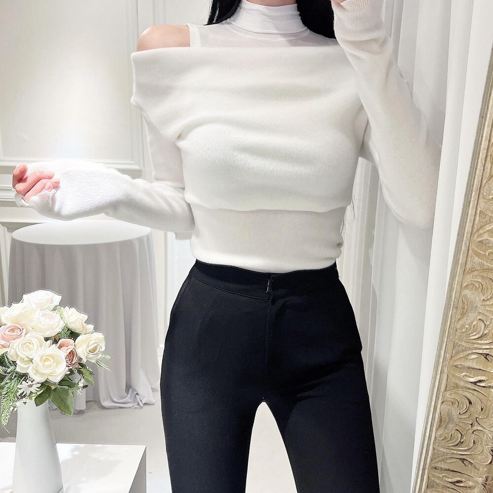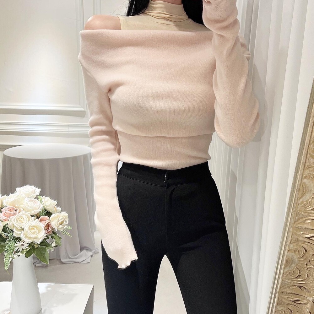 [SALE 원가이하 세일] 폴라 민소매 레이어드 어깨 트임 기모 슬림핏 니트 티셔츠