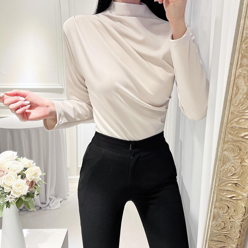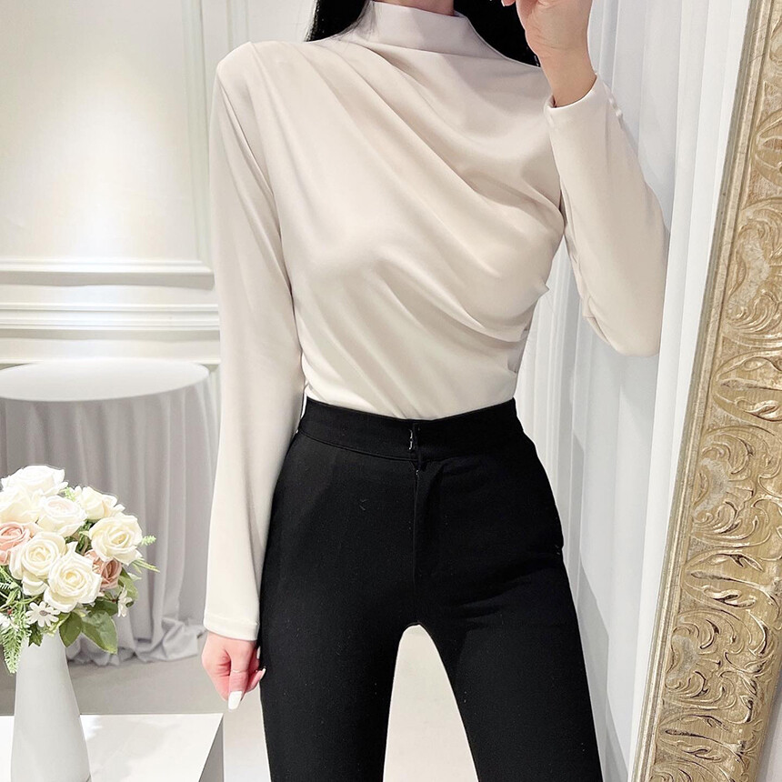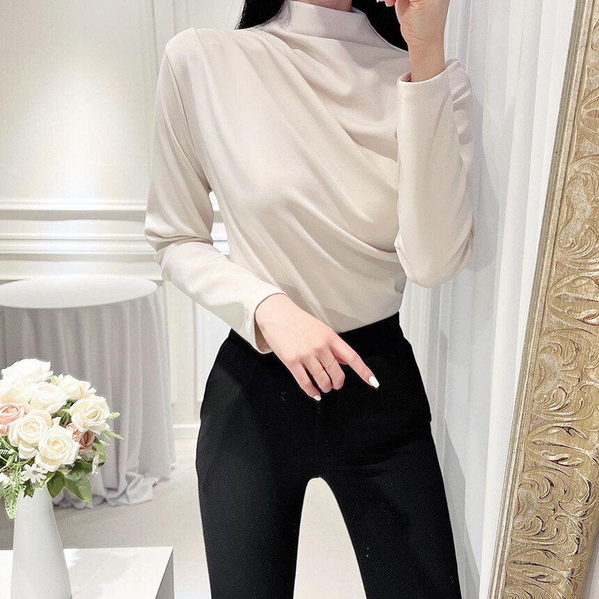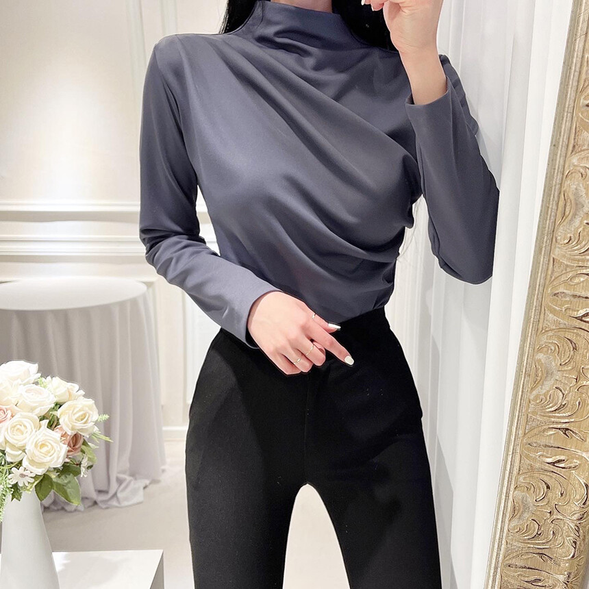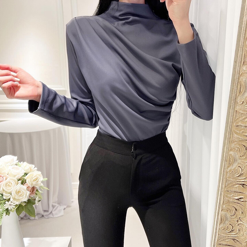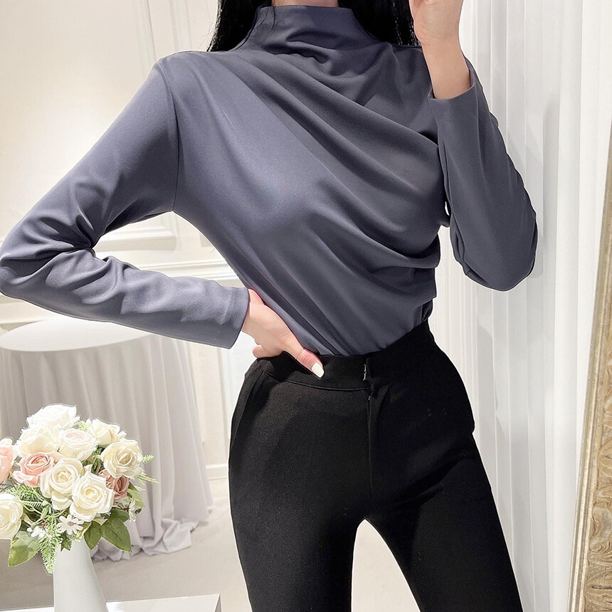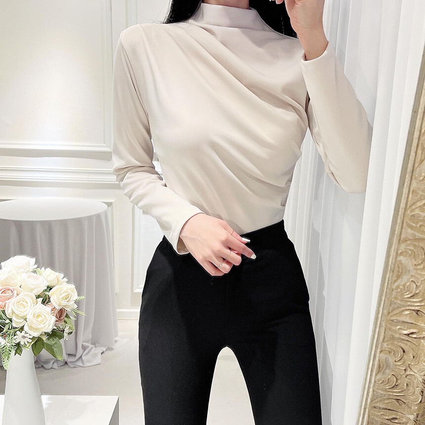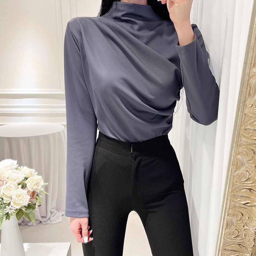 반목폴라 쫀득 스판 셔링 드레이프 블라우스 티셔츠
