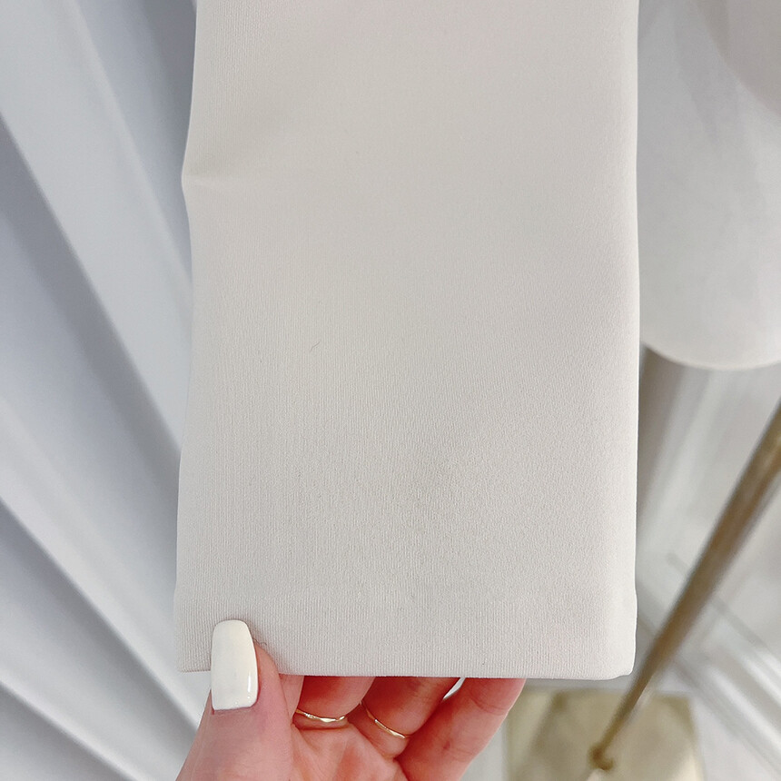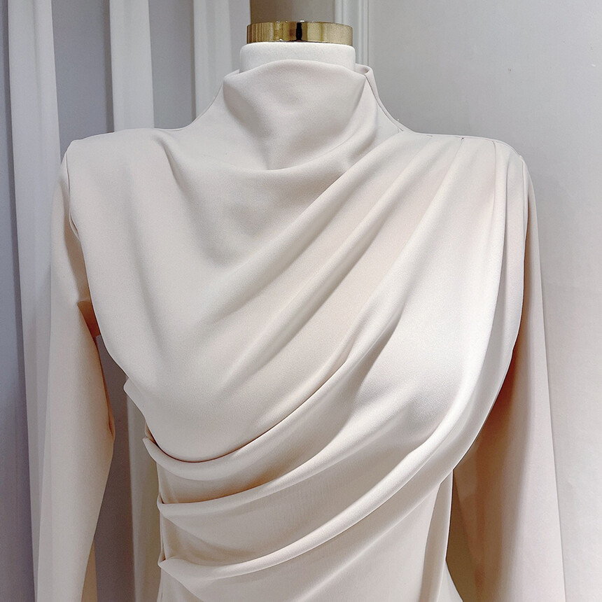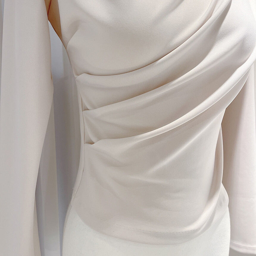 한쪽 어깨와 허리쪽에 셔링 주름이 잡혀있어
