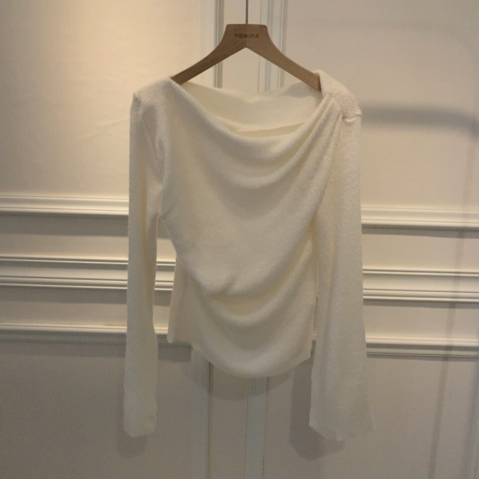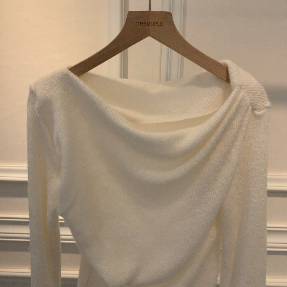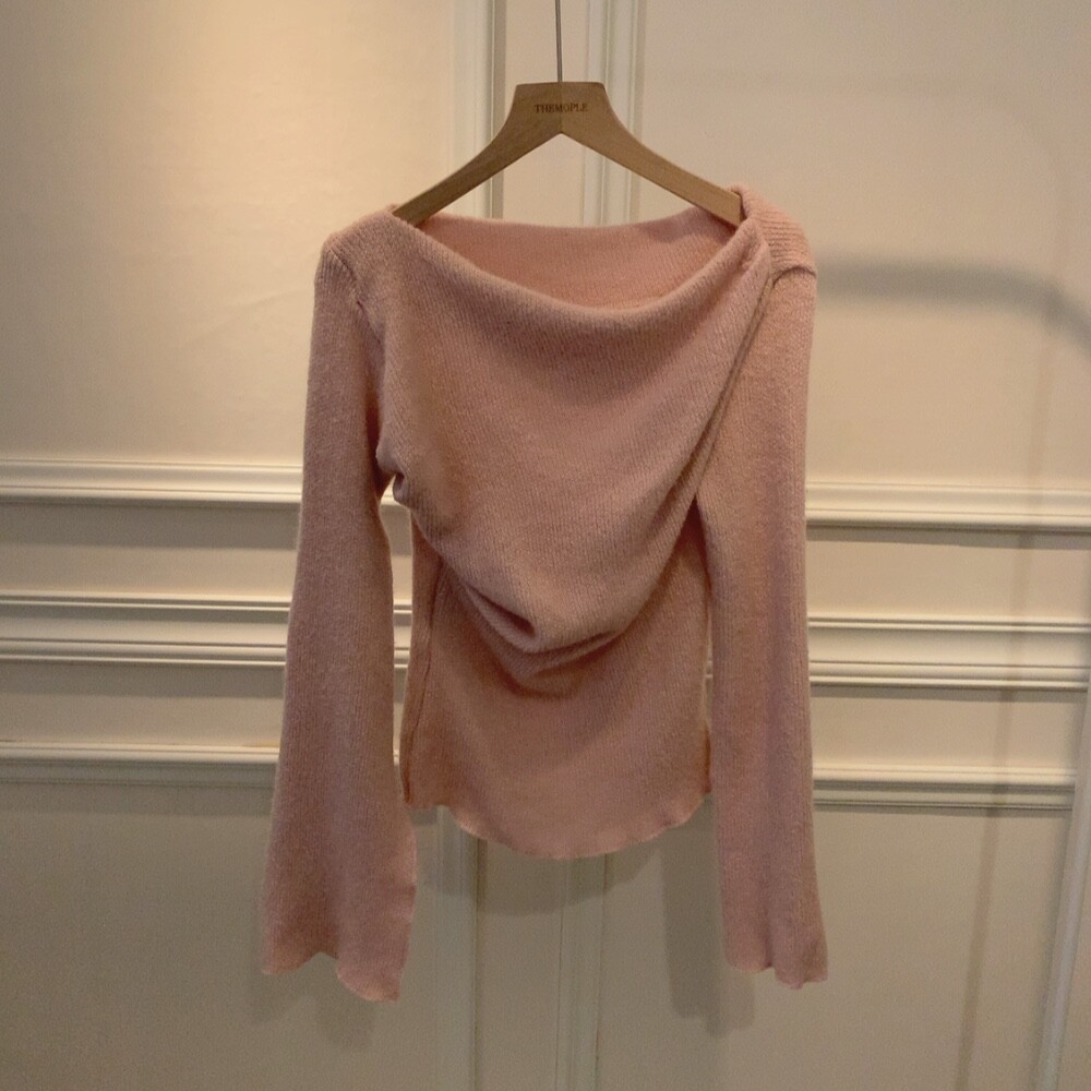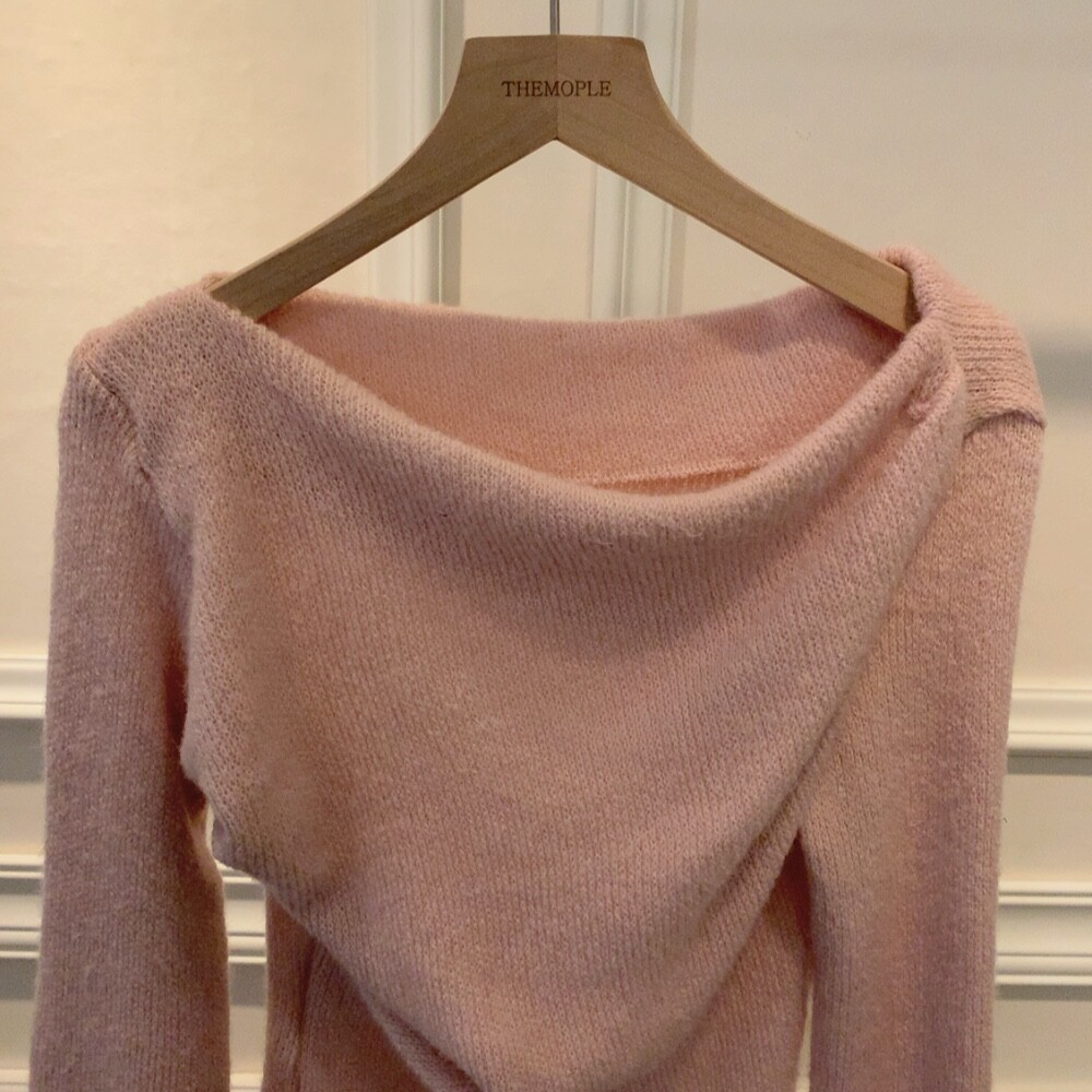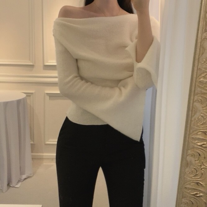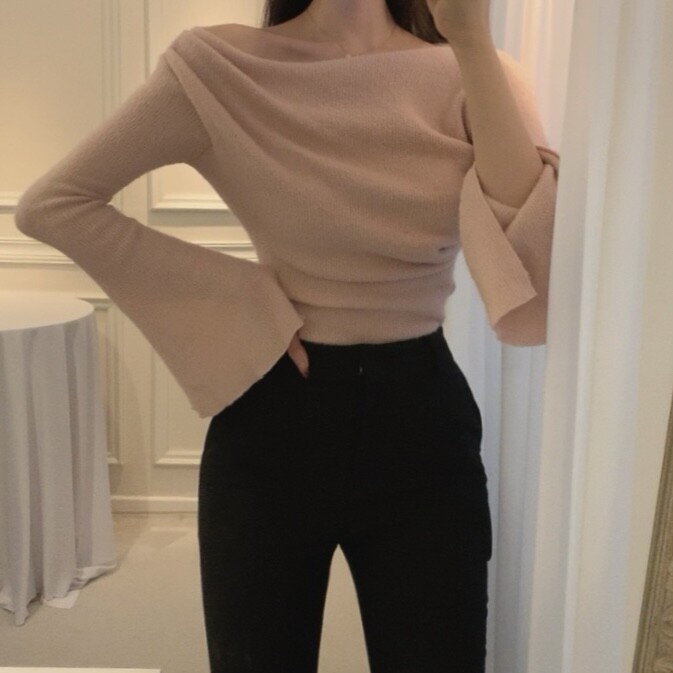 [원가이하 세일*당일출고] 울 소매 나팔 트임 여리여리 드레이프 주름 오프숄더 셔링 앙고라 니트