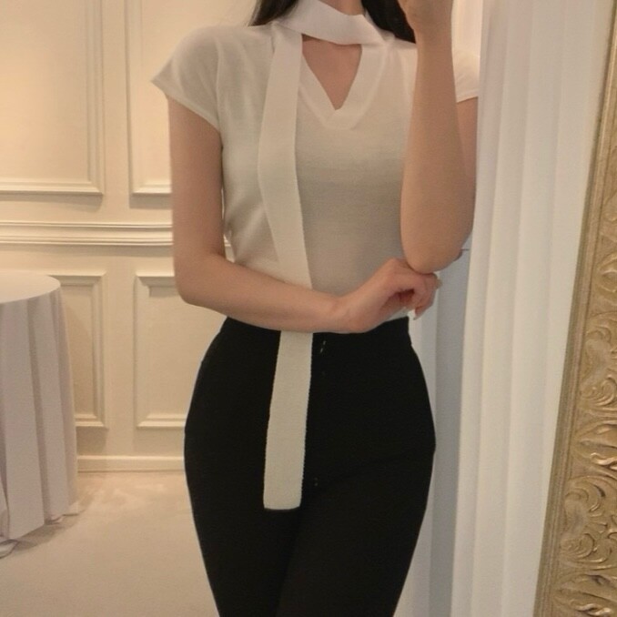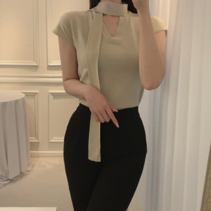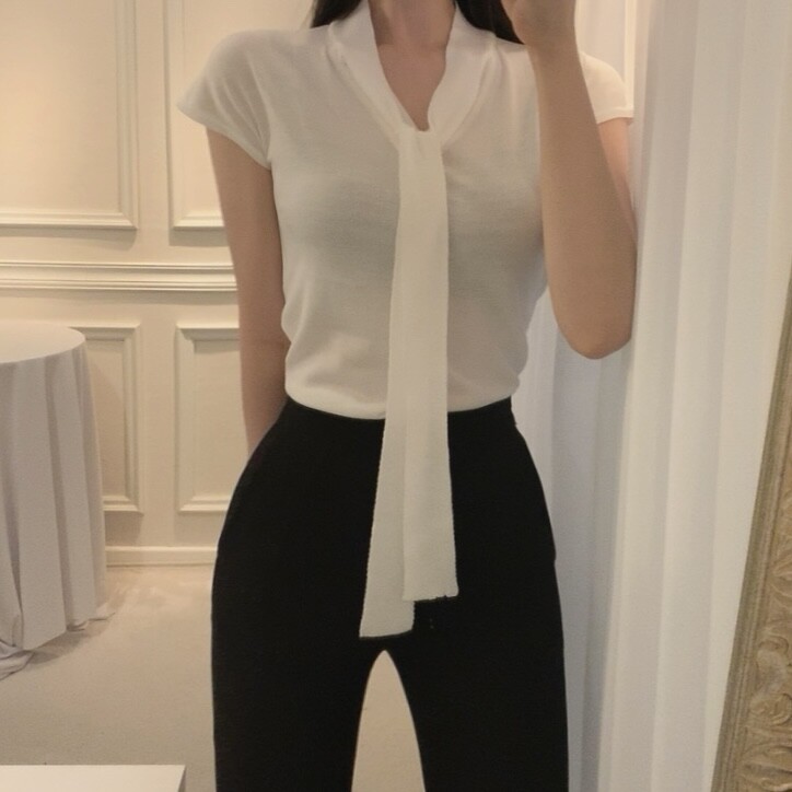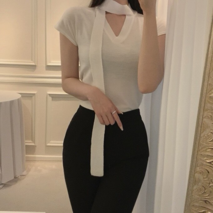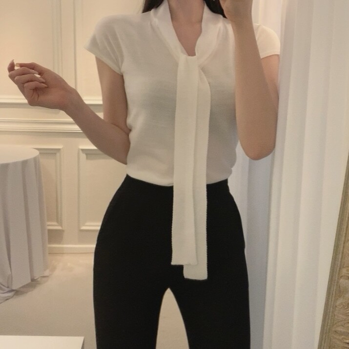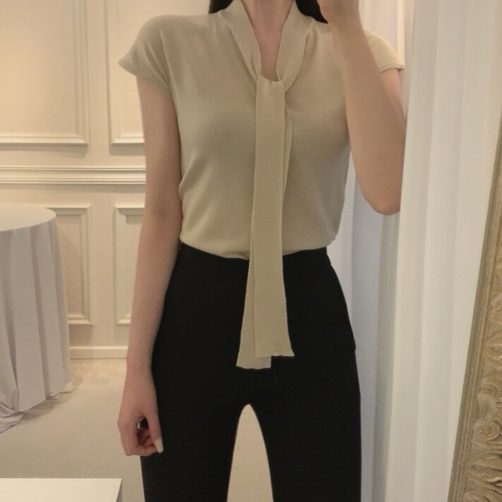 [원가이하 세일*당일출고] 브이넥 타이 스카프 캡소매 니트
