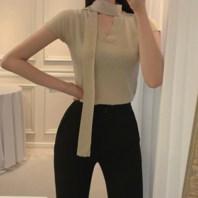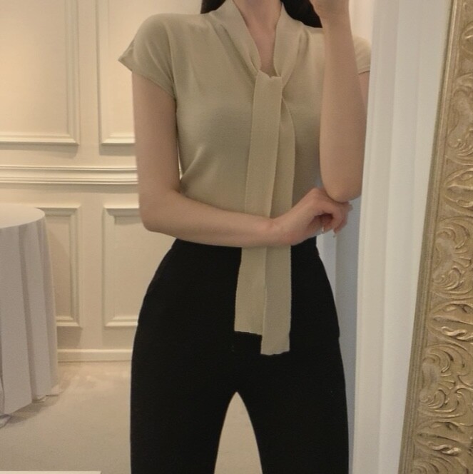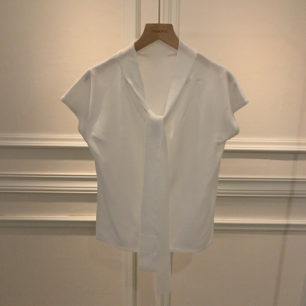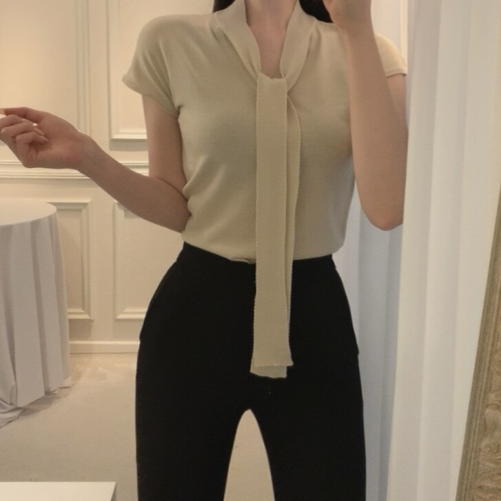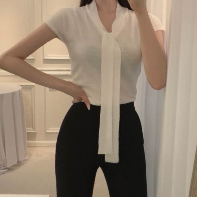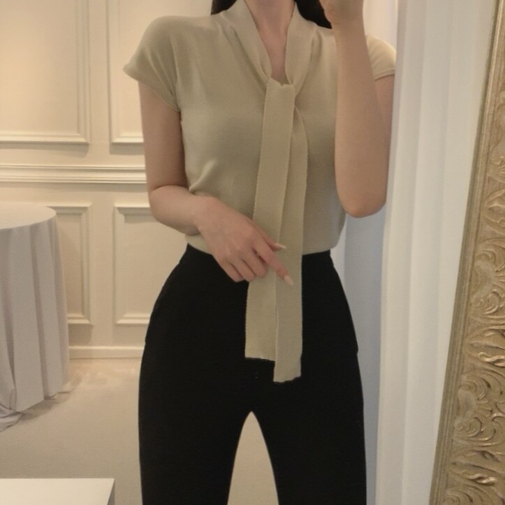 [원가이하 세일*당일출고] 브이넥 타이 스카프 캡소매 니트